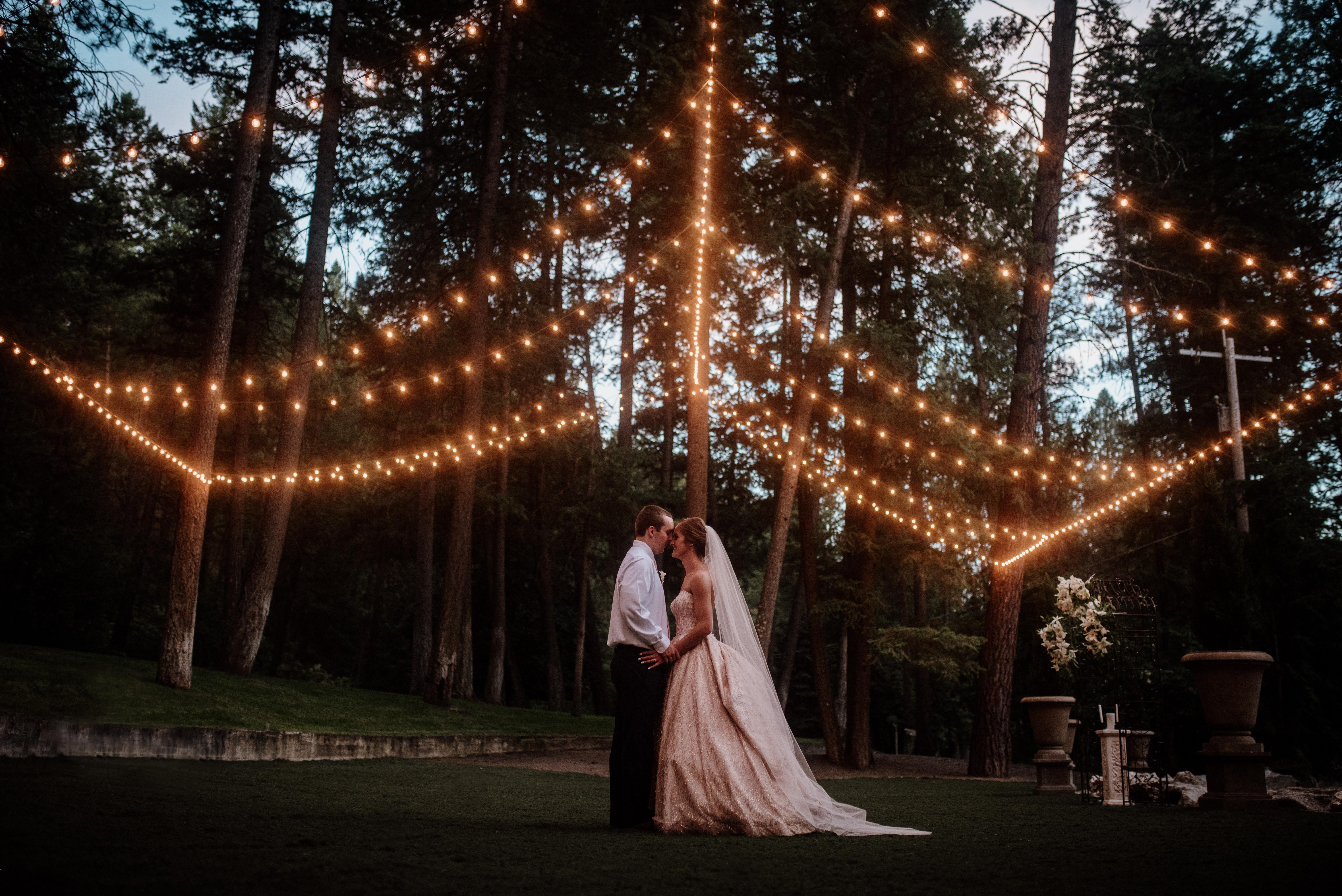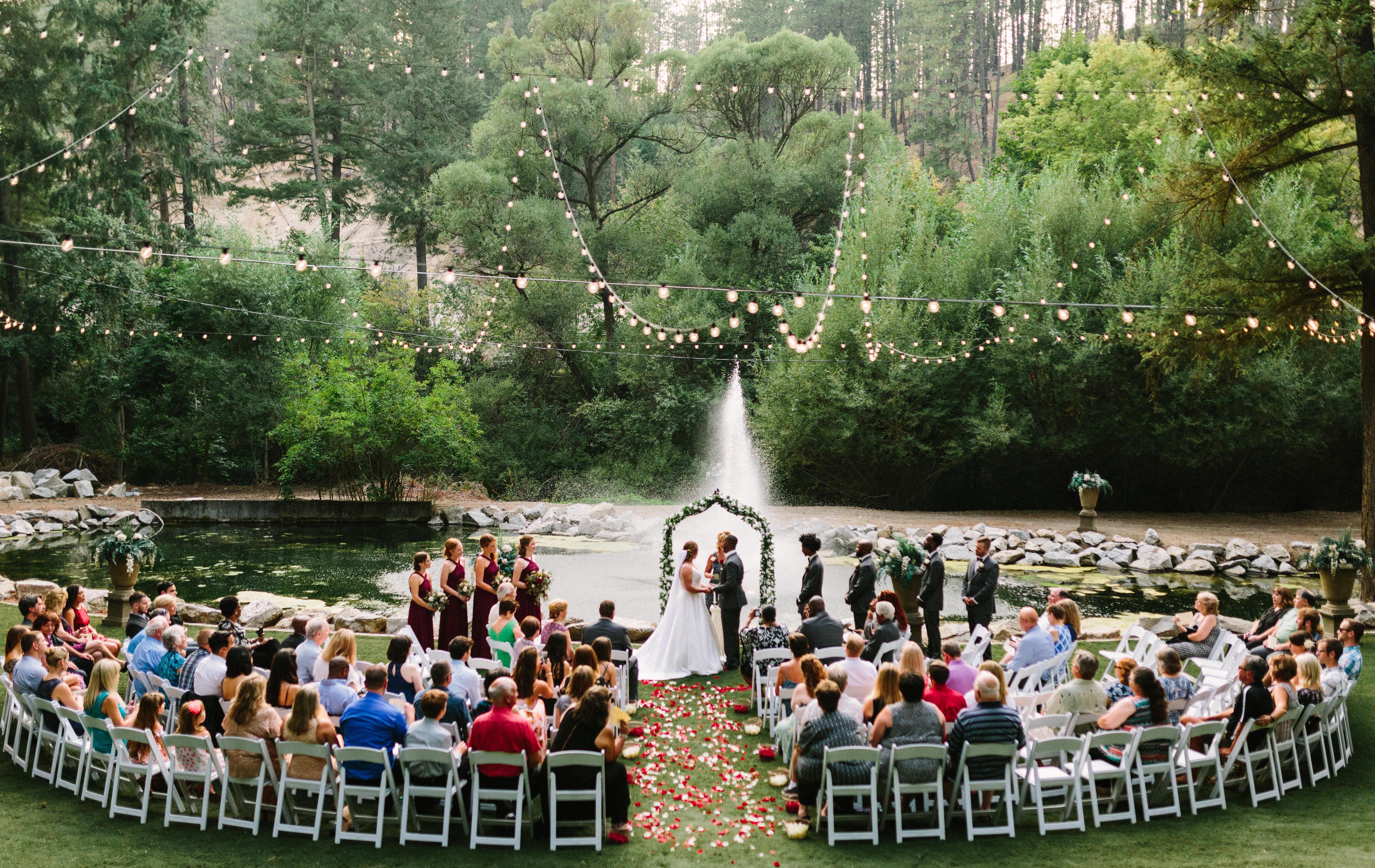 Commellini Estate is a tranquil wedding venue & caterer located in Spokane, Washington. This historic venue dates back to 1941, when it was lovingly established by Albert and Leda Commellini. Even though this venue has been around for decades, it is still family-owned and operated. Their private woodland venue contains a total of 200 acres and is perfect for hosting all stages of your wedding, including your bridal shower, engagement party, rehearsal dinner, wedding ceremony, and reception. On the Estate, couples and guests will feel as if they have been whisked away to a private paradise. The property boasts not only forests, but also a prairie, lawns, a nine-foot waterfall, a pond with a fountain, and a tranquil creek. These gorgeous natural elements provide the perfect backdrop for outdoor weddings. In total, couples have six wedding and ceremony sites they can choose from, including four outdoor (uncovered & covered) options and two indoor option varying in capacity.