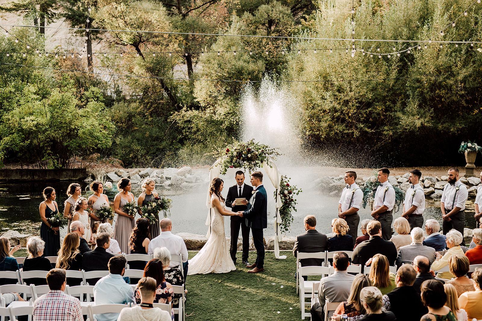 This location is right along the edge of Spring Creek where you can hear the tranquil sounds of the trickling water. The seated capacity for Creek Side is 160 guests. Included in all packages are various décor options for the white Tuscan pergola, although a florist's touch does wonders here. Along with ceremonies, this location has also been used for yard games and other fun reception activities.