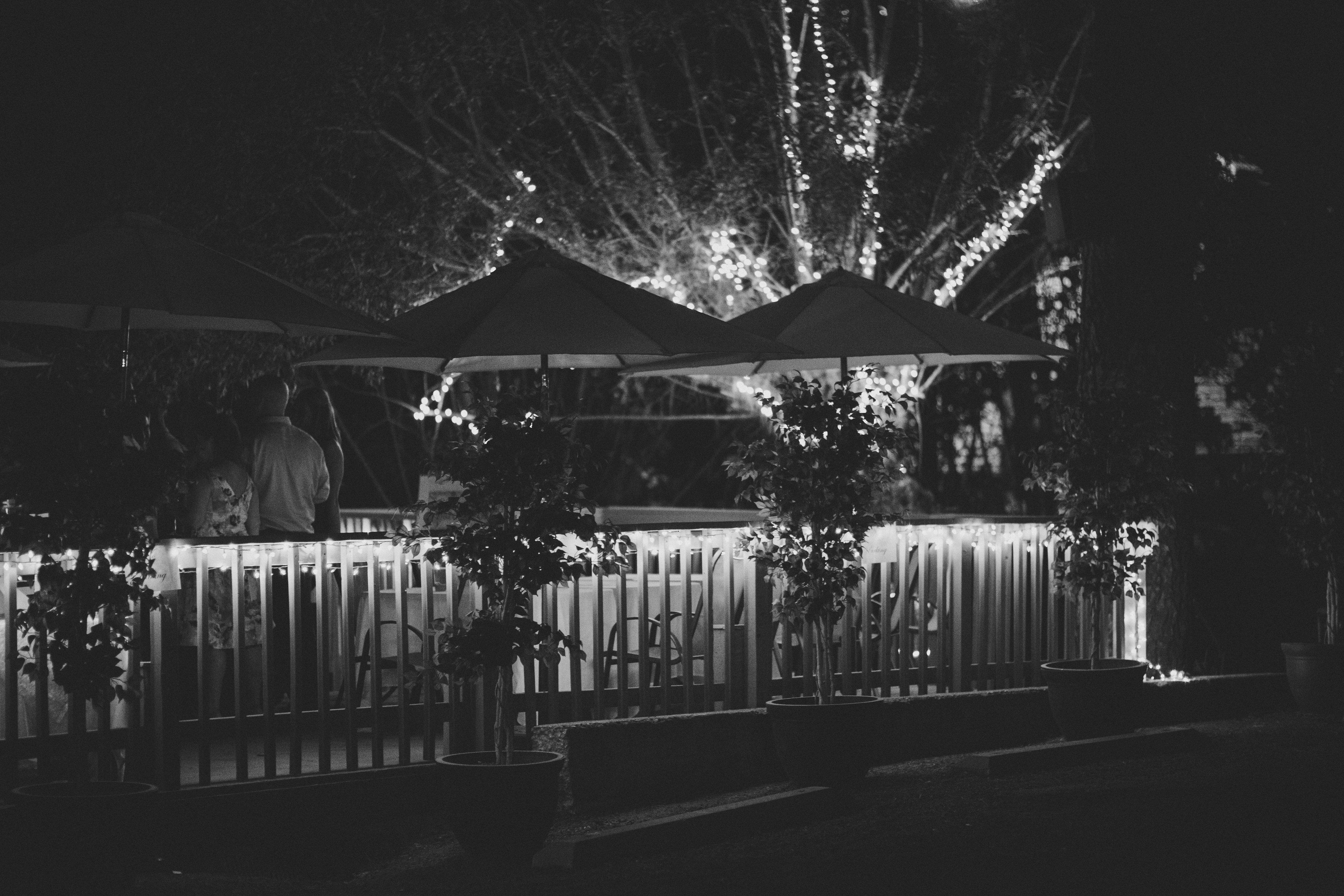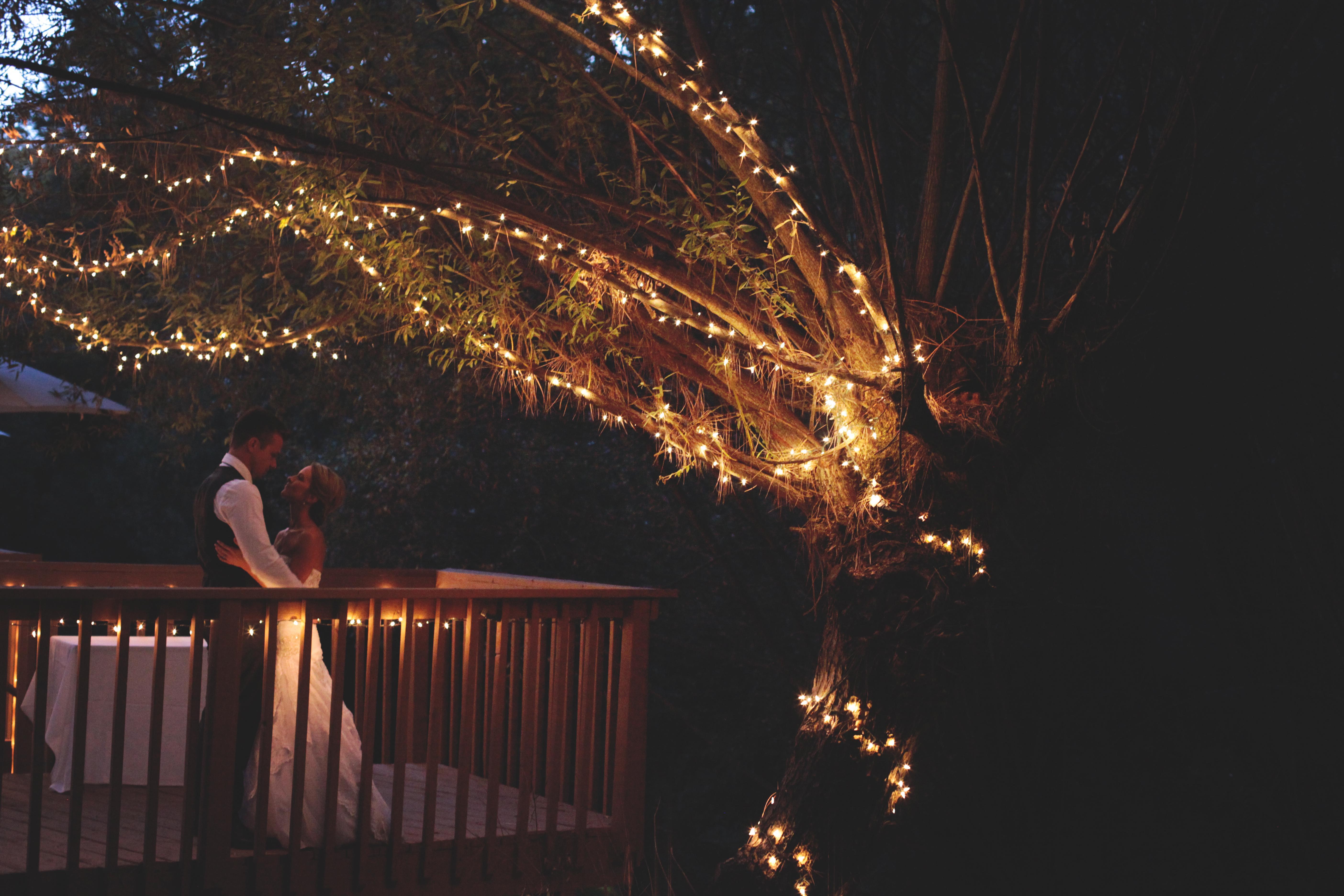 The large willow tree that hangs over the deck is lit with twinkle lights and creates a very romantic atmosphere for dancing or as a photo opportunity