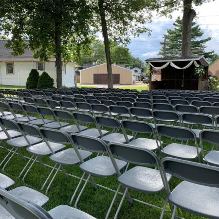 Here at Coolidge Hall, we pride ourselves on providing one of the best wedding venues on the North Shore. Whether you are having your ceremony, reception, or both events at the Fairgrounds, our number one goal is to provide you with a location for the wedding of your dreams. To provide the ultimate experience for our couples, we offer extensive customization and flexibility, as each wedding we host is unique to the ones getting married. Although most of the events are centered in Coolidge Hall, we have a variety of other spaces available for use. Coolidge Square, our beautiful landscaped courtyard located just outside of the Hall, is perfect for a cocktail hour. What is used as the “Picnic Area” during the Fair can be transformed into an oasis for the perfect outdoor ceremony – complete with a rustic stage for the bride and groom to be wed on. For those who are looking for a more casual event, the Picnic Area can also be used for outdoor games and festivities during the reception.