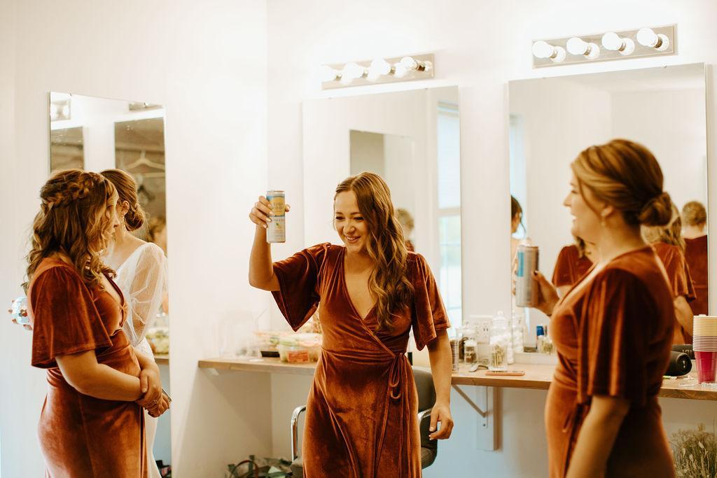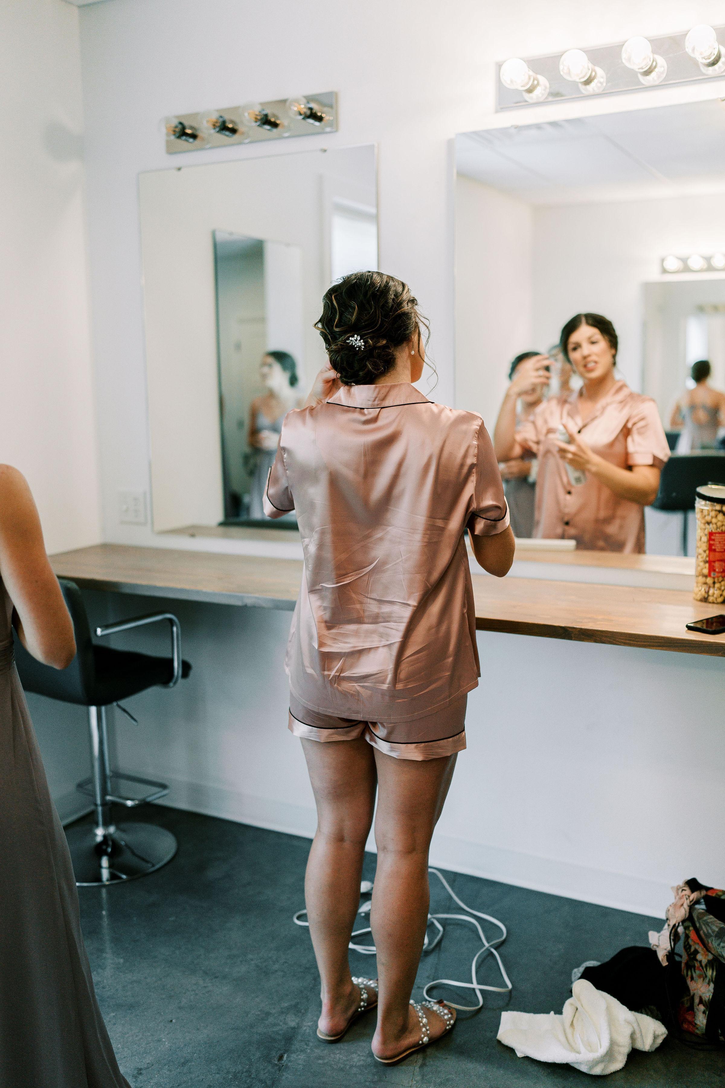 This space is to get ready for your big day! The space has plenty of mirrors, outlets, and private bathroom. The suite has direct access to the catering kitchen area. Pictures by Torey Rohde Photography & @thestormphotography