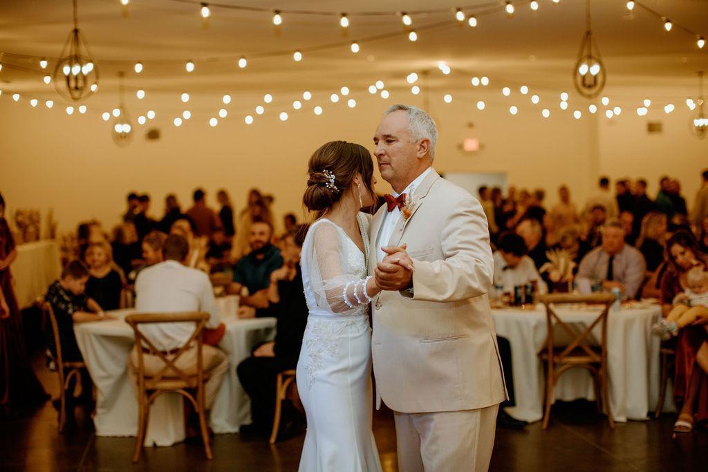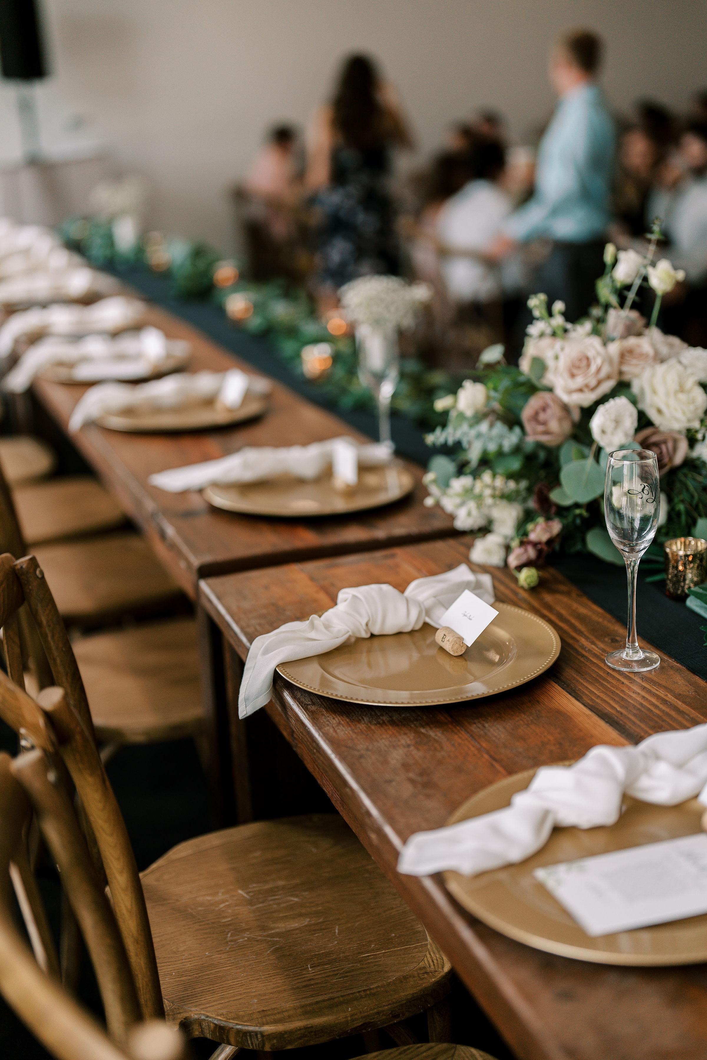 Harvest tables & wooden cross-back chairs, professional bartenders, bistro lighting, catering kitchen, bridal suites, dimmers for light customization, and post event cleaning.