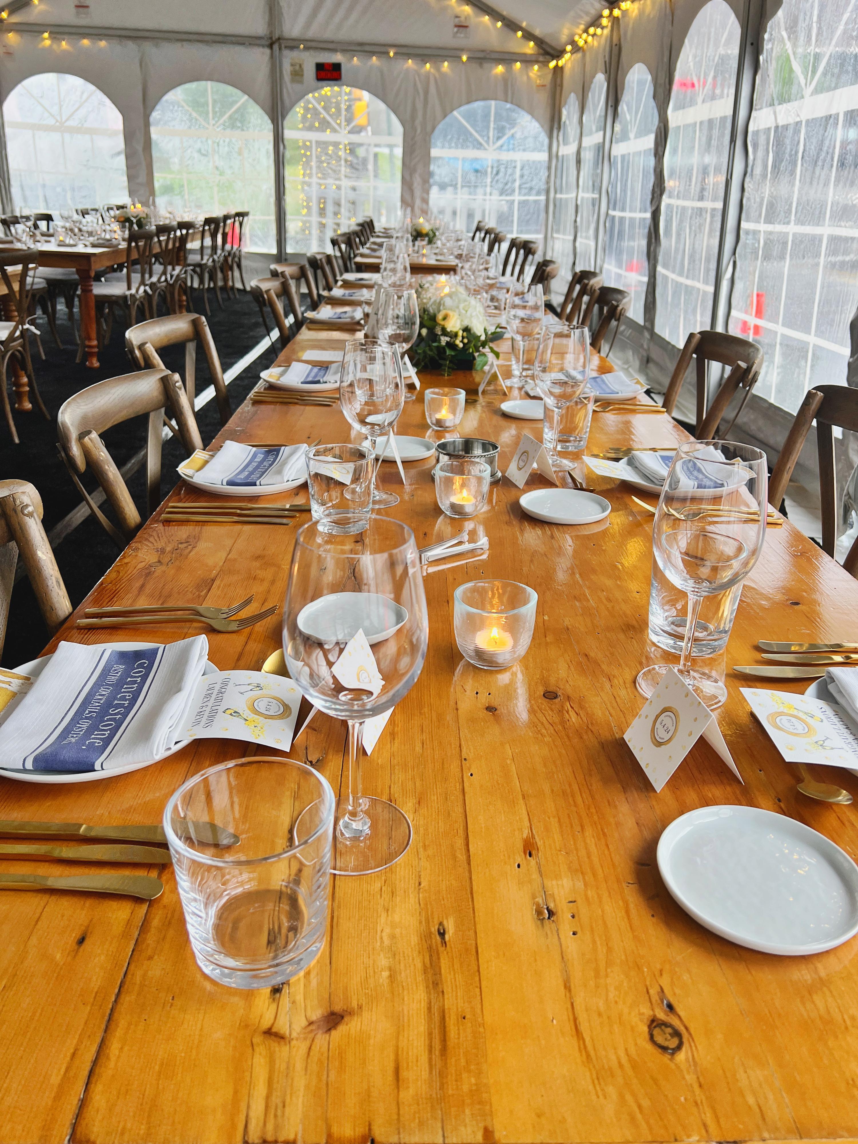 Hosting your event at Cornerstone, you embark on a journey back to the roots, of chef-owners Christine & Nick Kondra, of the coastal Island of Nantucket. With an ode to the ocean, Cornerstone's team creates intimate inviting menus, striving to elevate the the experience through simple elegance. Surround yourself with luxurious touches with a coastal chic atmosphere to share New England elements here on the Main Line. With a nod to the maritime past of the island including oysters, caviar and fresh daily seafood options, the wine and cocktail program were developed to complement the seasonal menus creating an authentic guest experience. Our bistro is comprised of our chef’s counter, bar, lounge, and dining room. We also offer outdoor seating in our garden patio, sidewalk terrace, and firepit areas, in which we offer our heated tent. Our event specialists invite you to come in, unwind, and let us create a stunning, stress-free event for you and those closest to you.