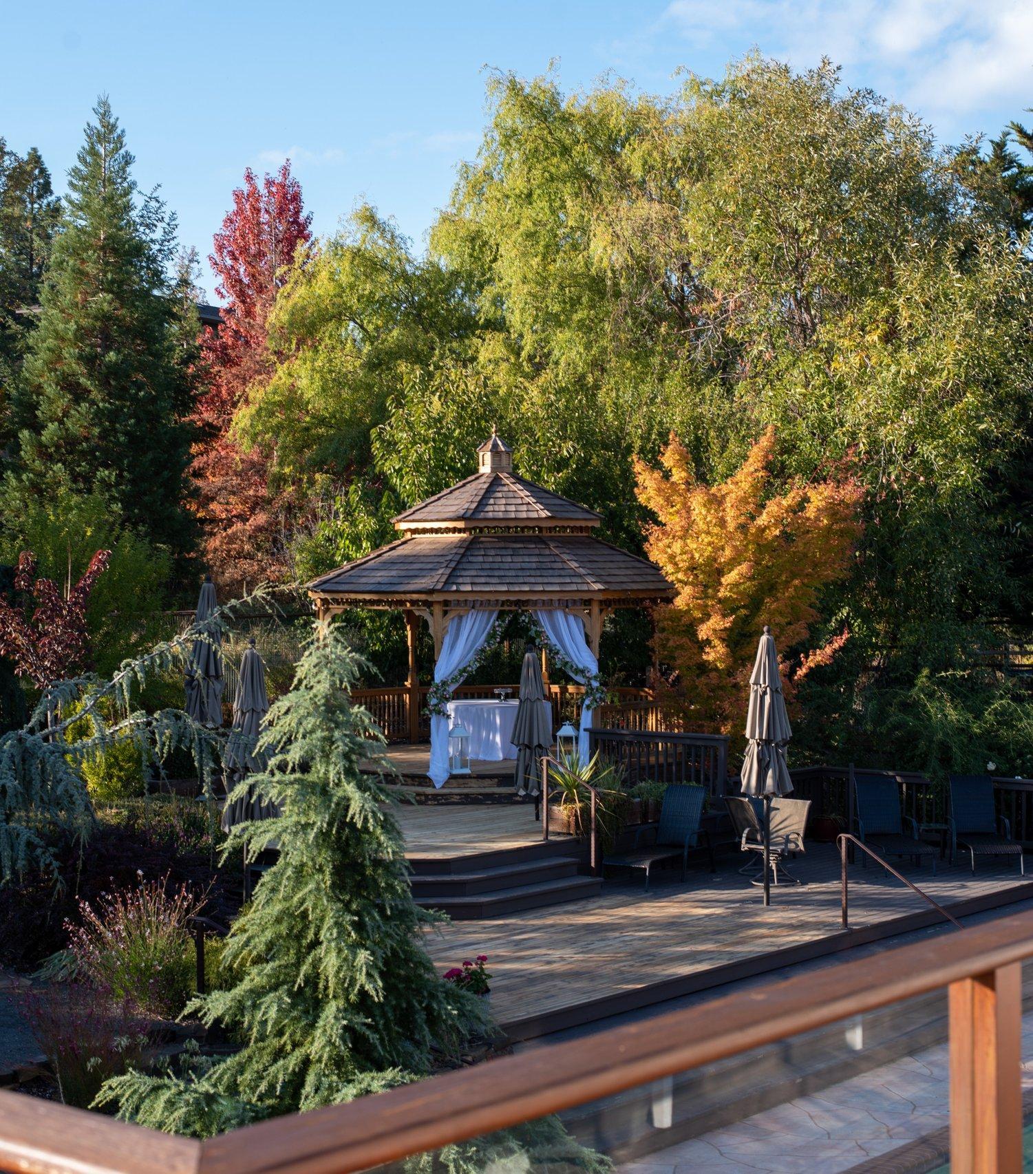 Nestled on five acres, Country Willows is a unique oasis offering intimate weddings and elopement packages for UP TO 8 guests including couple. (Can be expanded to 24 with whole house rental of 9 rooms.) Located just outside the Ashland city limits in a relaxed and private setting, our beautiful grounds feature a koi waterfall pond, duck pond and stunning mountain views. It’s the perfect serene location to sharing your wedding vows. Country Willows staff recognizes the importance of your wedding day and has created an all-inclusive package to take the worry out of planning. We take care of all the details so you can enjoy your special day.