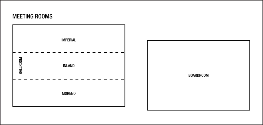 - Dimmers to create that warm ambience - LCD hooked to the ceiling - Screen - White Linen - Round 60' Tables - chairs (blue color)