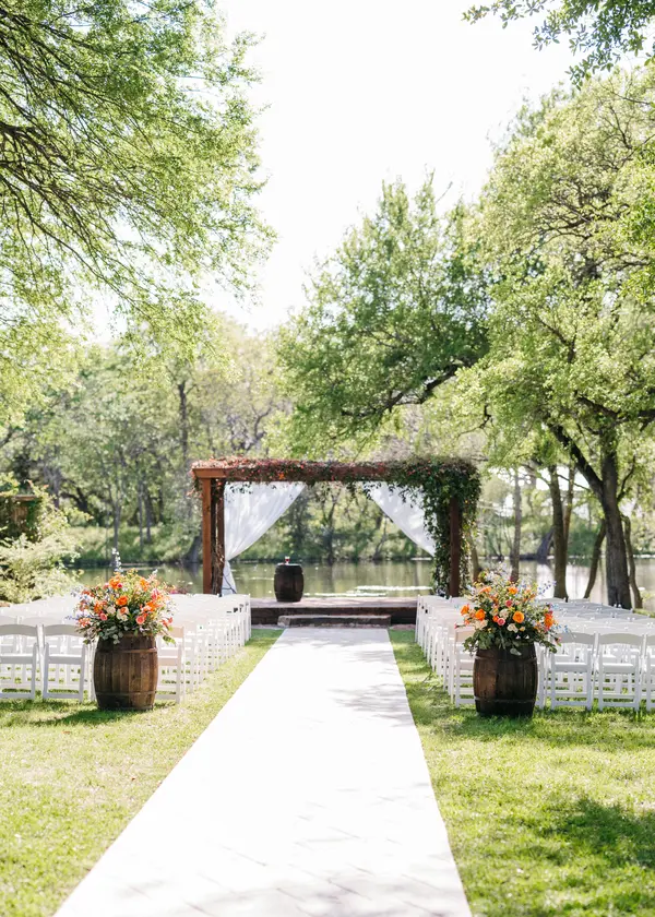 Cross Creek Ranch is a wedding venue conveniently located just 20 miles north of Dallas in Parker, TX. Our dedicated staff is passionate about providing you with a beautiful and memorable event that you've dreamed of. Our rental packages include 10 hours of prep and event time in our 6,000 square foot log cabin facility, plus access to three dressing cabins, an outdoor pavilion for use as a cocktail hour or backup weather ceremony site, and our stunning outdoor arbor area with our 2-acre pond serving as your backdrop. If you wish for help in the wedding planning process, Cross Creek Ranch can also include items such as catering, floral, coordination, and more! These services and partnerships are items we have offered, or vendors we have worked with, for over 16 years. We have three ceremony sites available with 2 of the 3 working if bad weather derails your outdoor ceremony plans.
