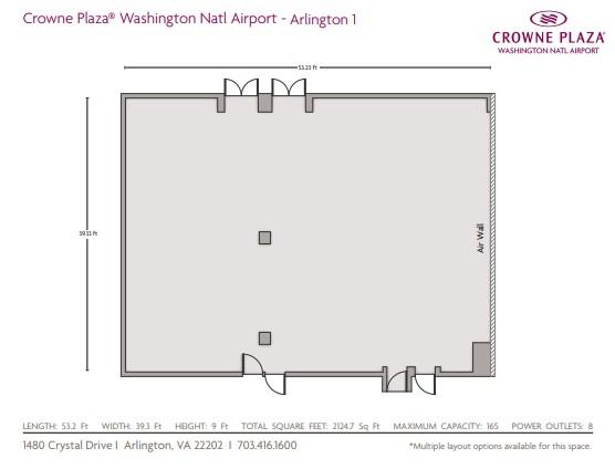 The Arlington Ballroom is our largest banquet room in the hotel located on the Mezzanine Level.