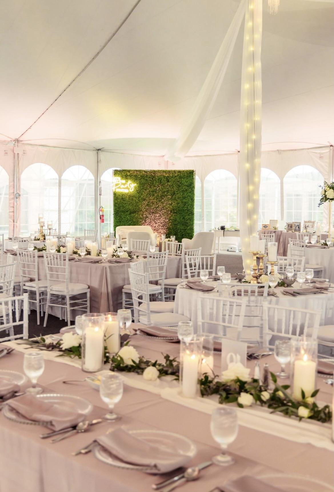 Our Garden Pavilion is a unique space only available May-October. This spaces allows couples who love the outdoors to have their dream wedding outside without being "outside!" Recently renovated floors and new chandeliers allows for endless decor options!