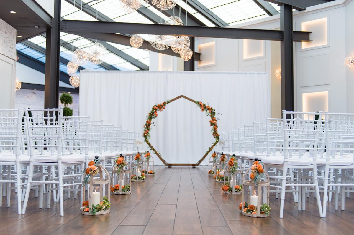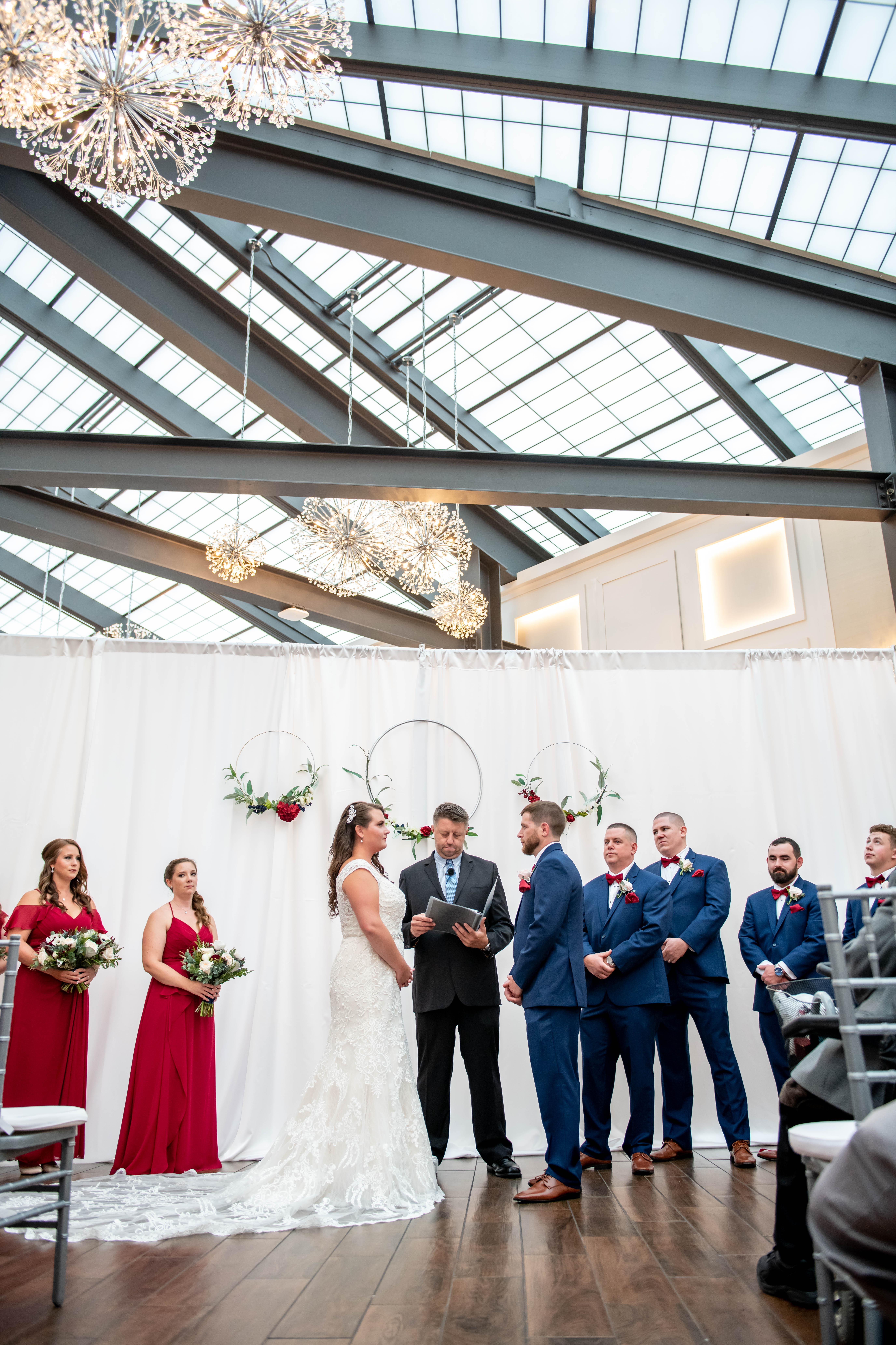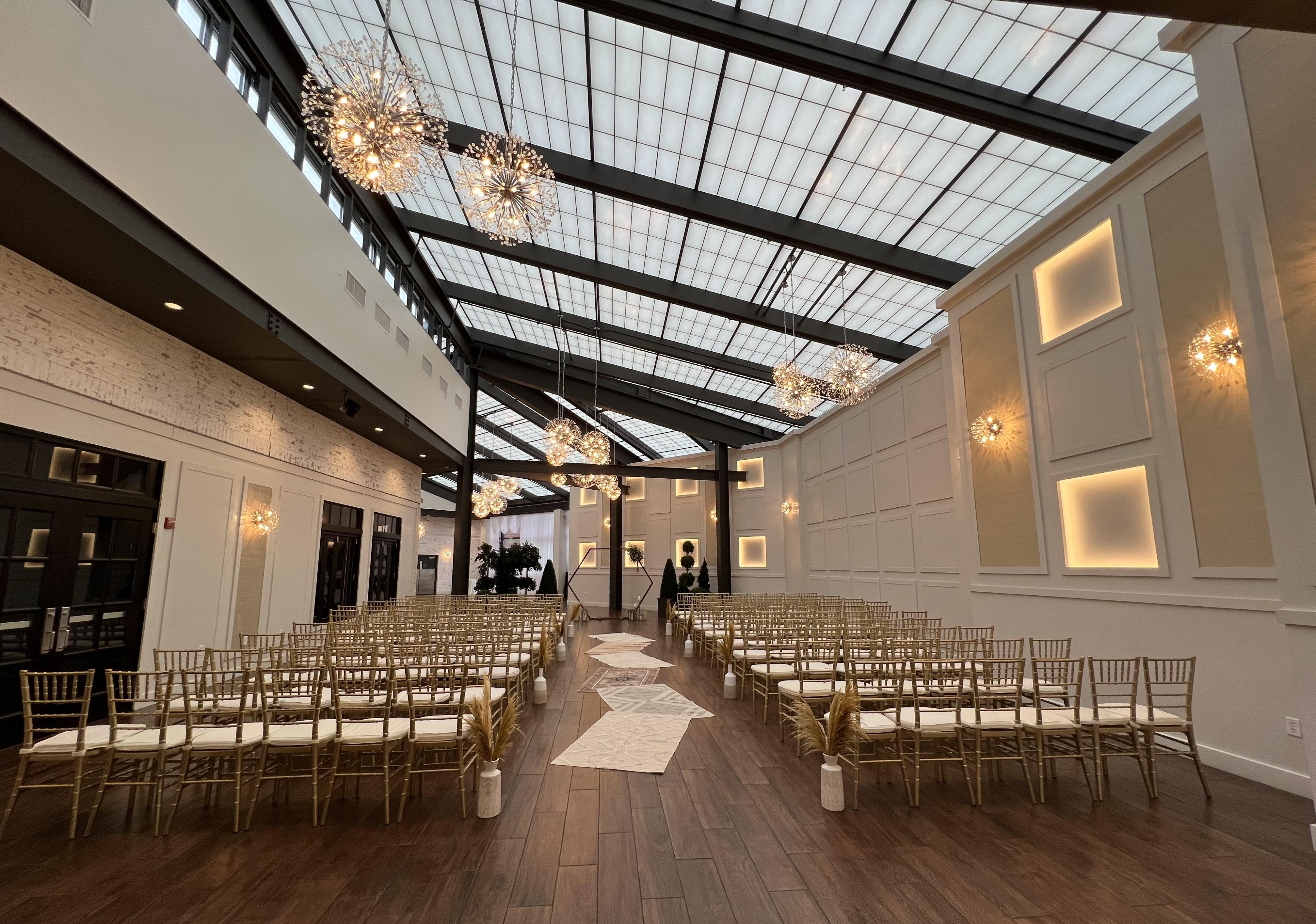 Our Atrium ballroom is the perfect location for your ceremony and reception. Our frosted glass ceiling offer beautiful lighting throughout the year. The exposed white washed brick and beaming are the perfect back drop for a modern and chic wedding.