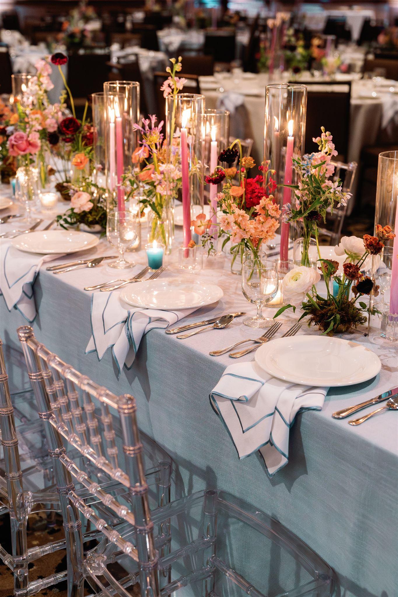 Custom Catering Menus Dedicated Event Planner Classic Candle Centerpieces Complimentary Self-Parking Professional Staff in Formal Wear