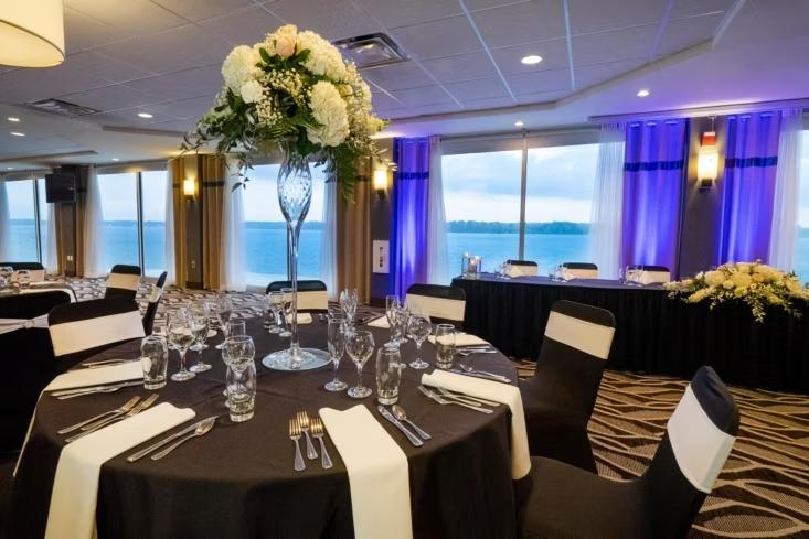 Say “I do” at the only venue located directly on the Niagara River, where breathtaking river views create the perfect backdrop for your special day. Our stunning ballroom offers an unparalleled setting for your wedding, with floor-to-ceiling windows that allow you to take in the natural beauty of the water while you celebrate with your loved ones. As the only hotel located directly on the Niagara River, we also offer convenient accommodations for you and your guests, including a luxurious bridal suite to make your day even more memorable. Our top-notch catering team will work with you to design a menu that suits your taste, with a complimentary tasting to ensure your selections are just right. With scenic photo opportunities, exceptional service, and a venue that takes full advantage of its stunning location, your wedding will be as unforgettable as the views.