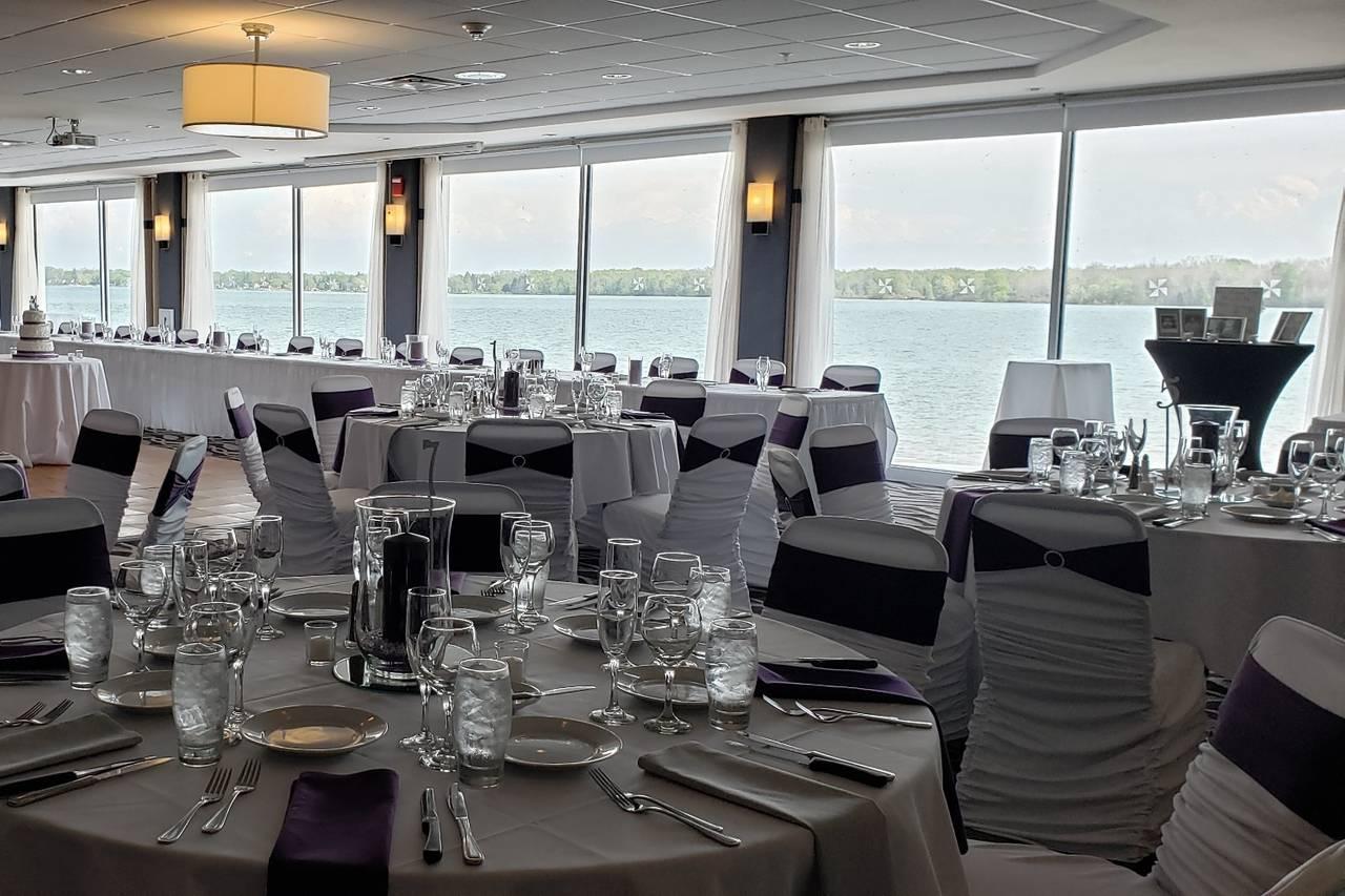 The Upper Rapids Room offers a stunning backdrop for any event, featuring panoramic views of the majestic Niagara River. With its flexible, open layout and customizable design, this spacious venue transforms to suit your unique needs—whether you're planning an elegant wedding reception, a lively cocktail hour, or a grand celebration of any kind.