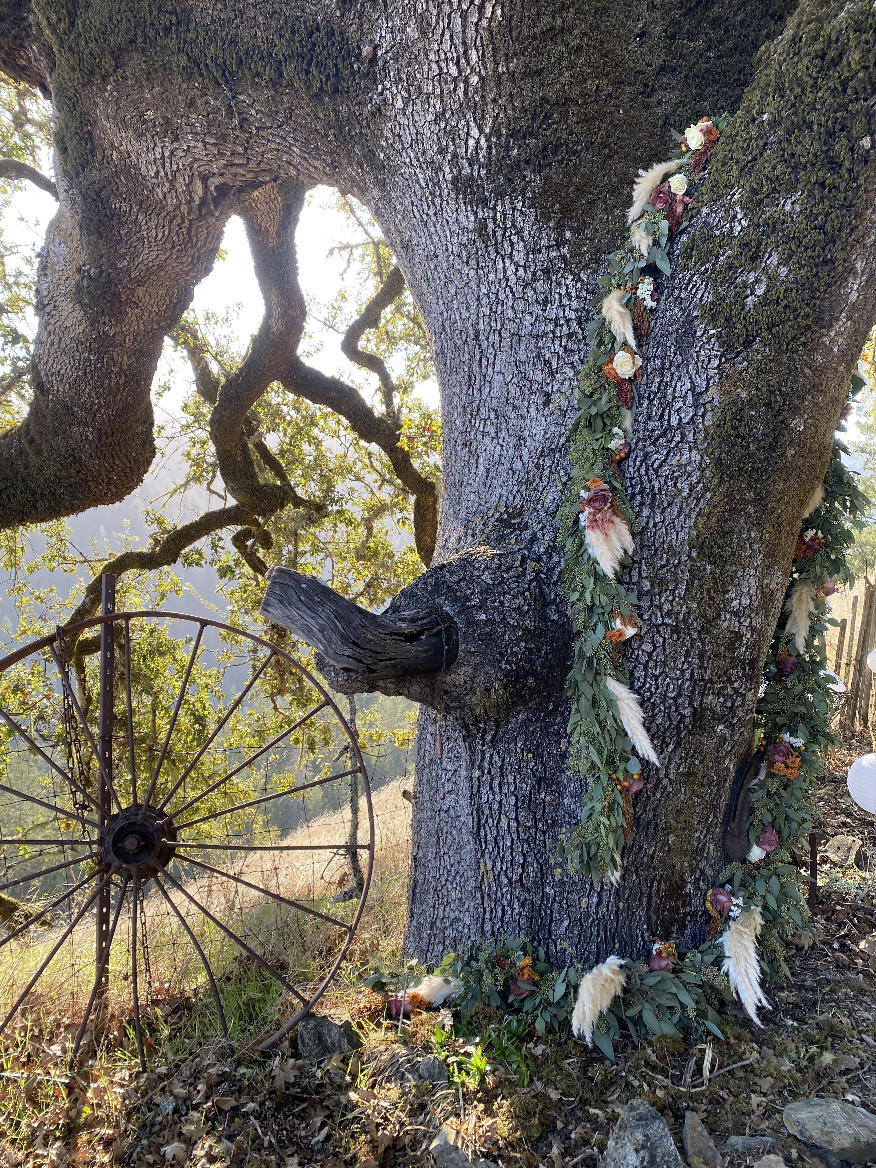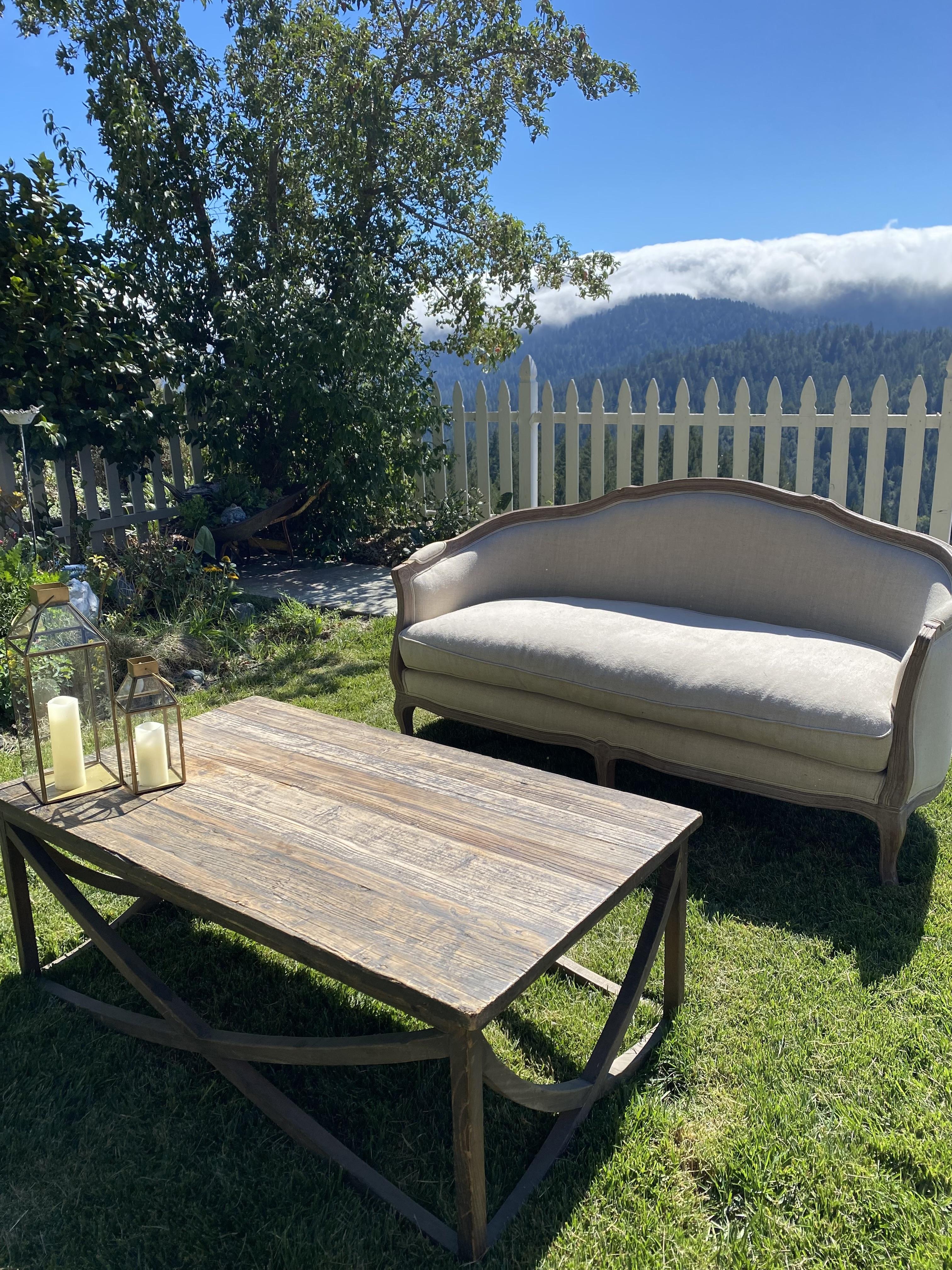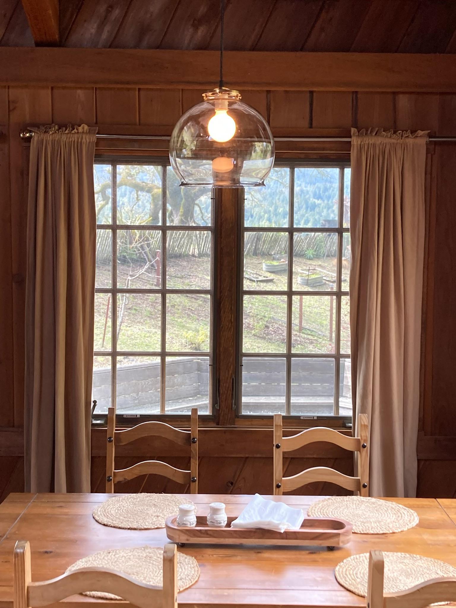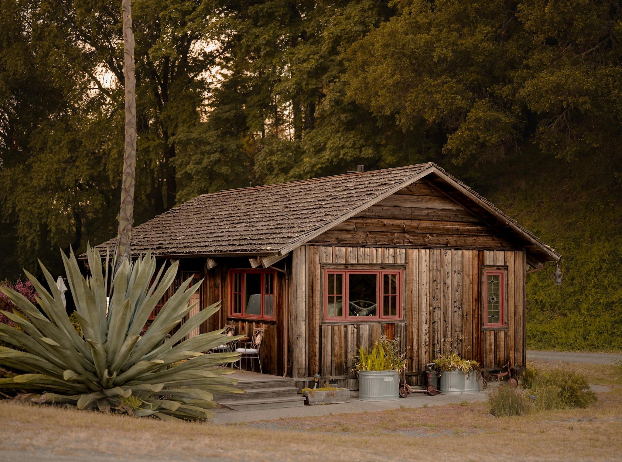 Our family built redwood cabin is included with each wedding package for the wedding couple to use for 3 days and 2 nights. Perfect for bridal party preparations, family member hosting or wedding couple getaway- The cottage has a well stocked kitchen, full bathroom with linens and queen size bed WIFI & TV Sofa and Dining room table for 4