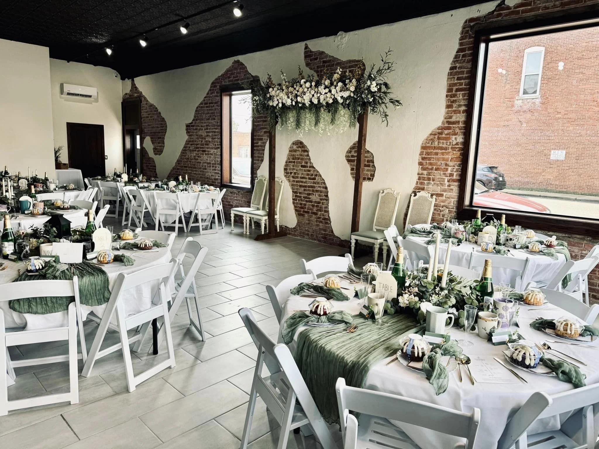 East Vine is a charming and intimate event space that's a perfect companion to our sister venue, The Wentworth. Ideal for smaller celebrations like a micro-wedding, rehearsal dinner, or bridal shower, this venue offers a beautiful first-floor gathering space. The room is full of character, featuring a 100-year-old tin ceiling and exposed brick, and is anchored by an ornate wooden bar. The space is equipped with a full kitchen for any catering needs. Additionally, East Vine offers dedicated, private spaces for the wedding party to get ready, with a bridal suite and a separate groomsmen’s lounge, making it a perfect spot for pre-ceremony preparations.