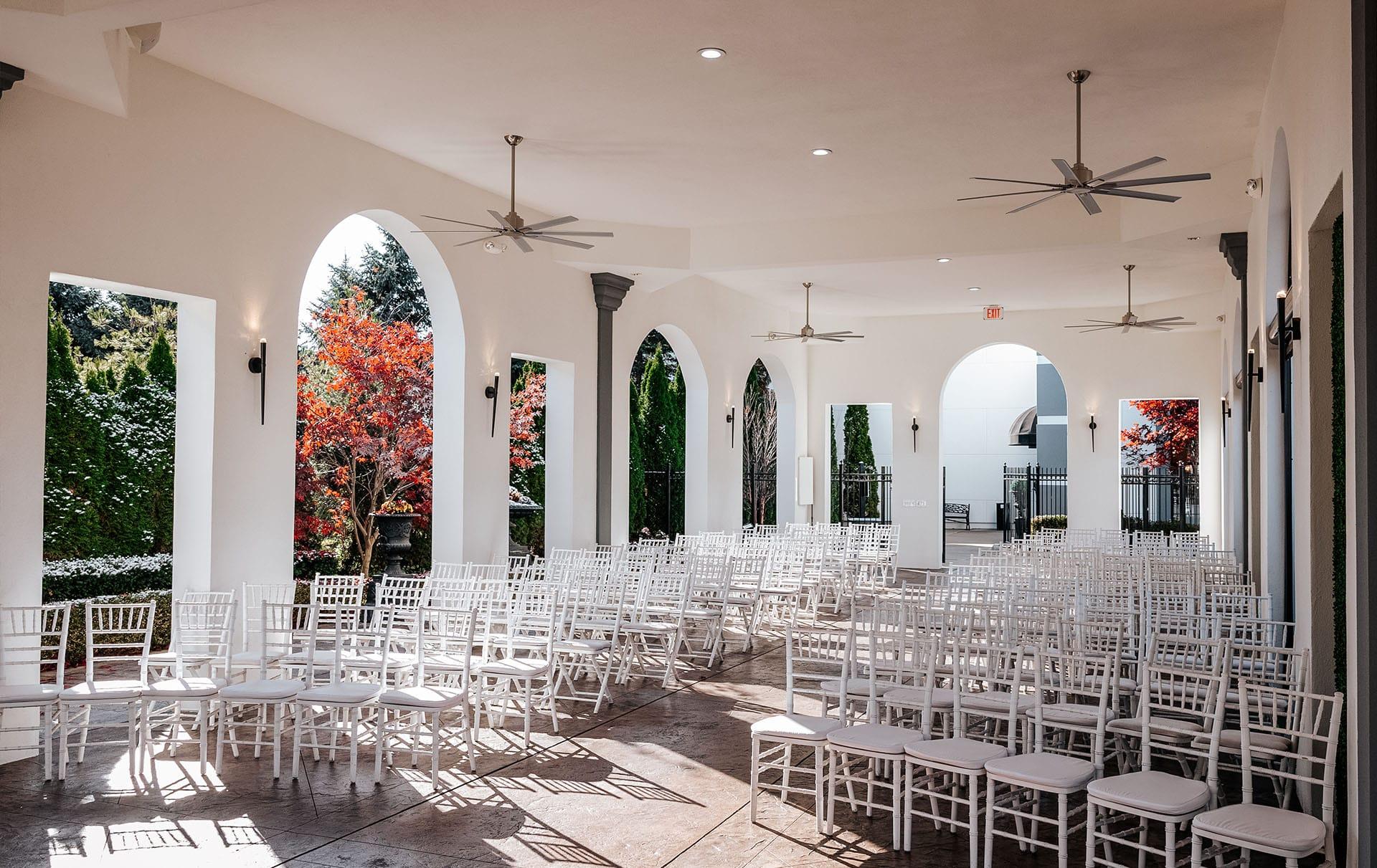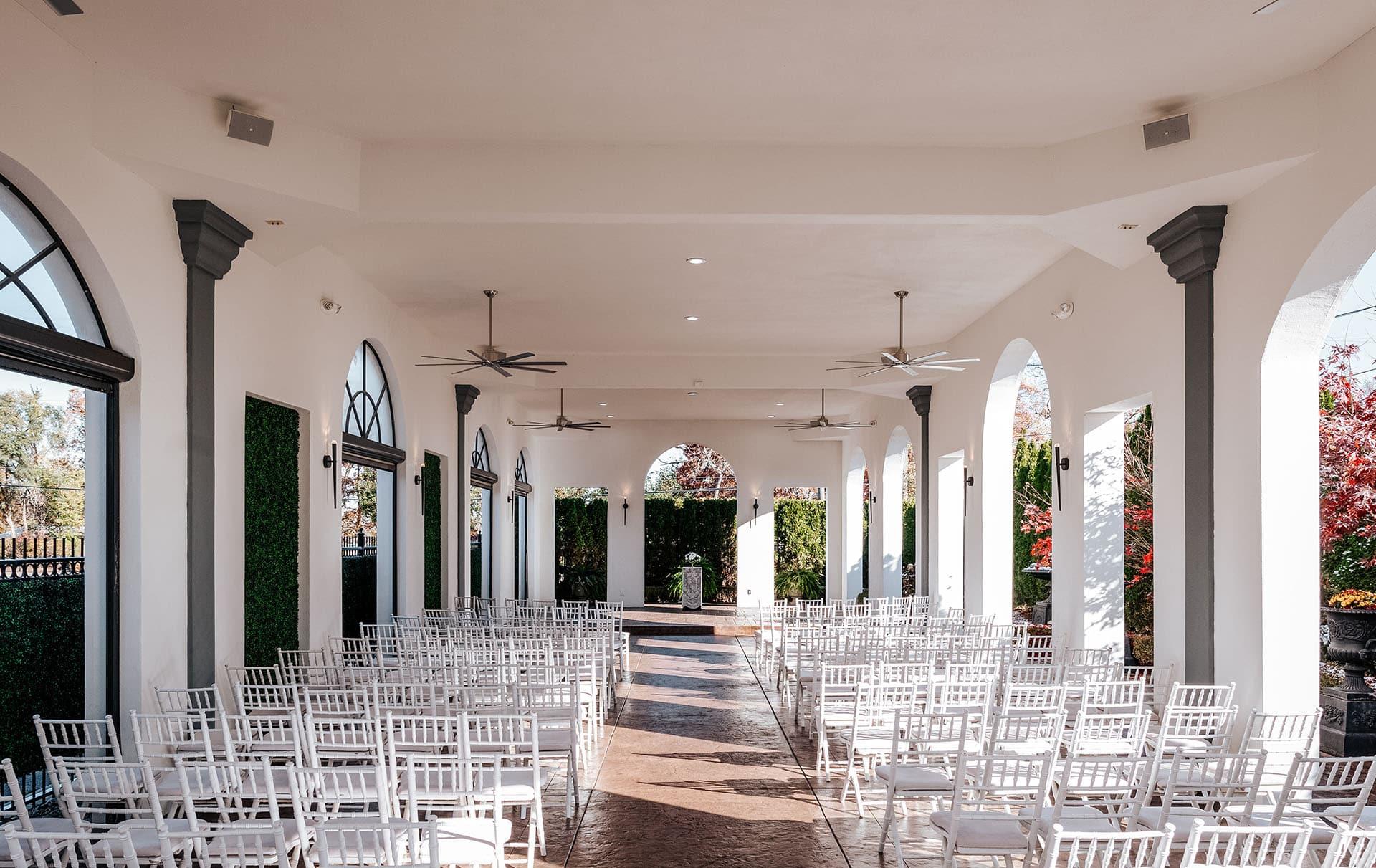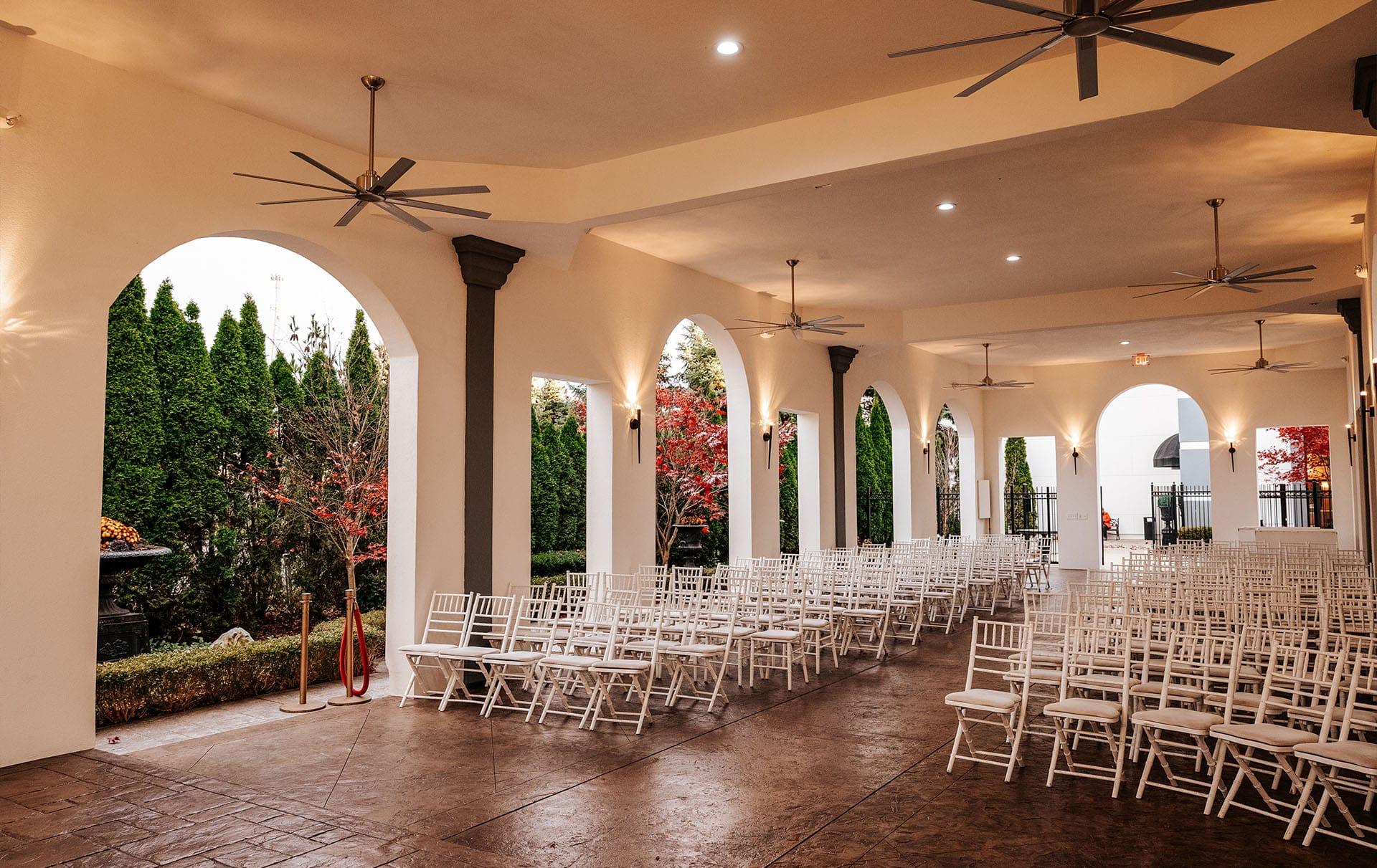 Our exclusive Open Air Chapel holds up to 170 seated guests, and offers space for those who wish to stand. It is equipped with state-of-the-art amenities including a sound system, lavaliers, lighting, and cooling ceiling fans, ensuring that every event held here will never be forgotten. Whether it’s a rehearsal dinner, baby shower, corporate event, or bridal shower, the tranquil ambiance and timeless elegance of our chapel provide the perfect backdrop for any occasion.