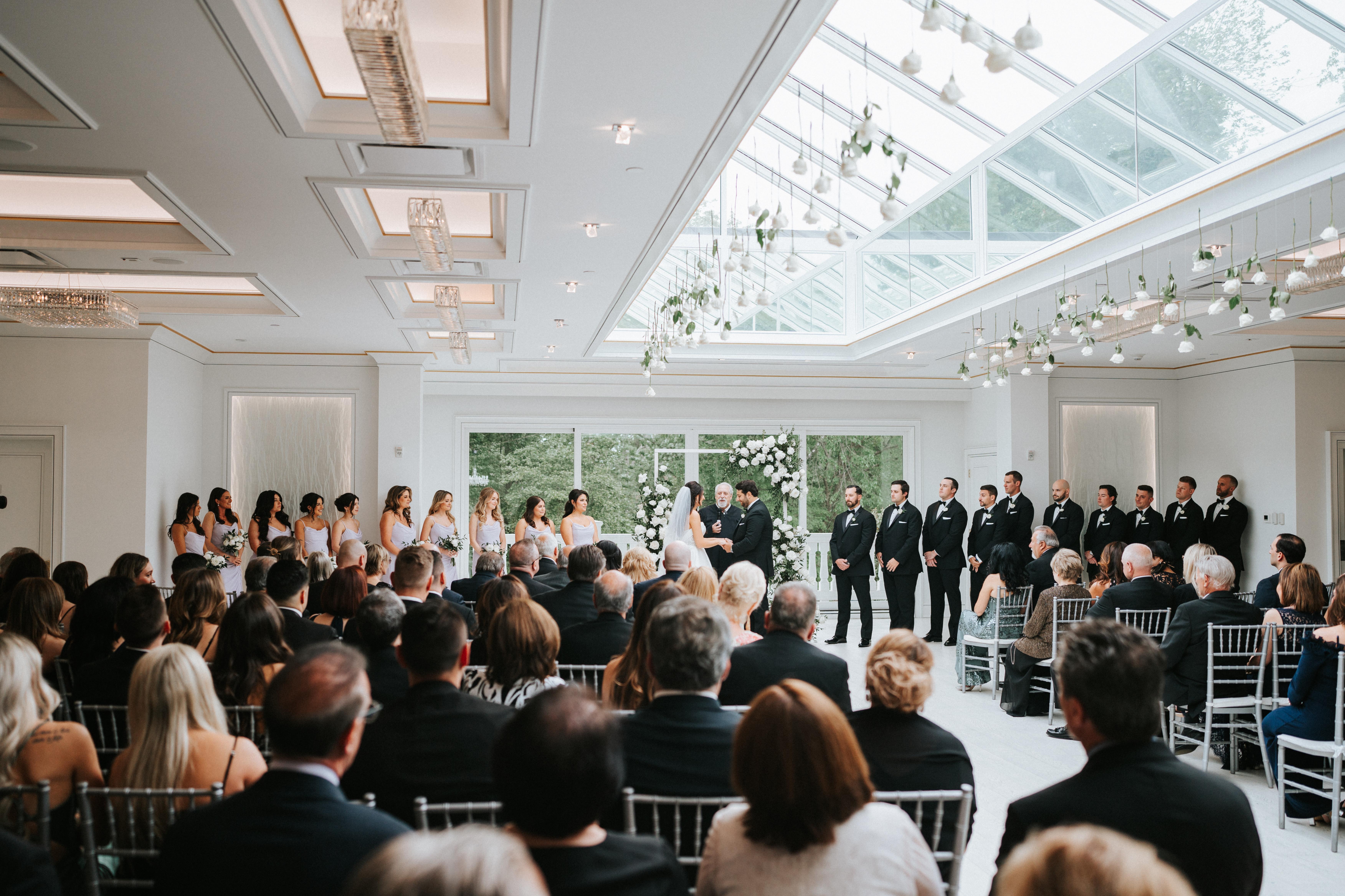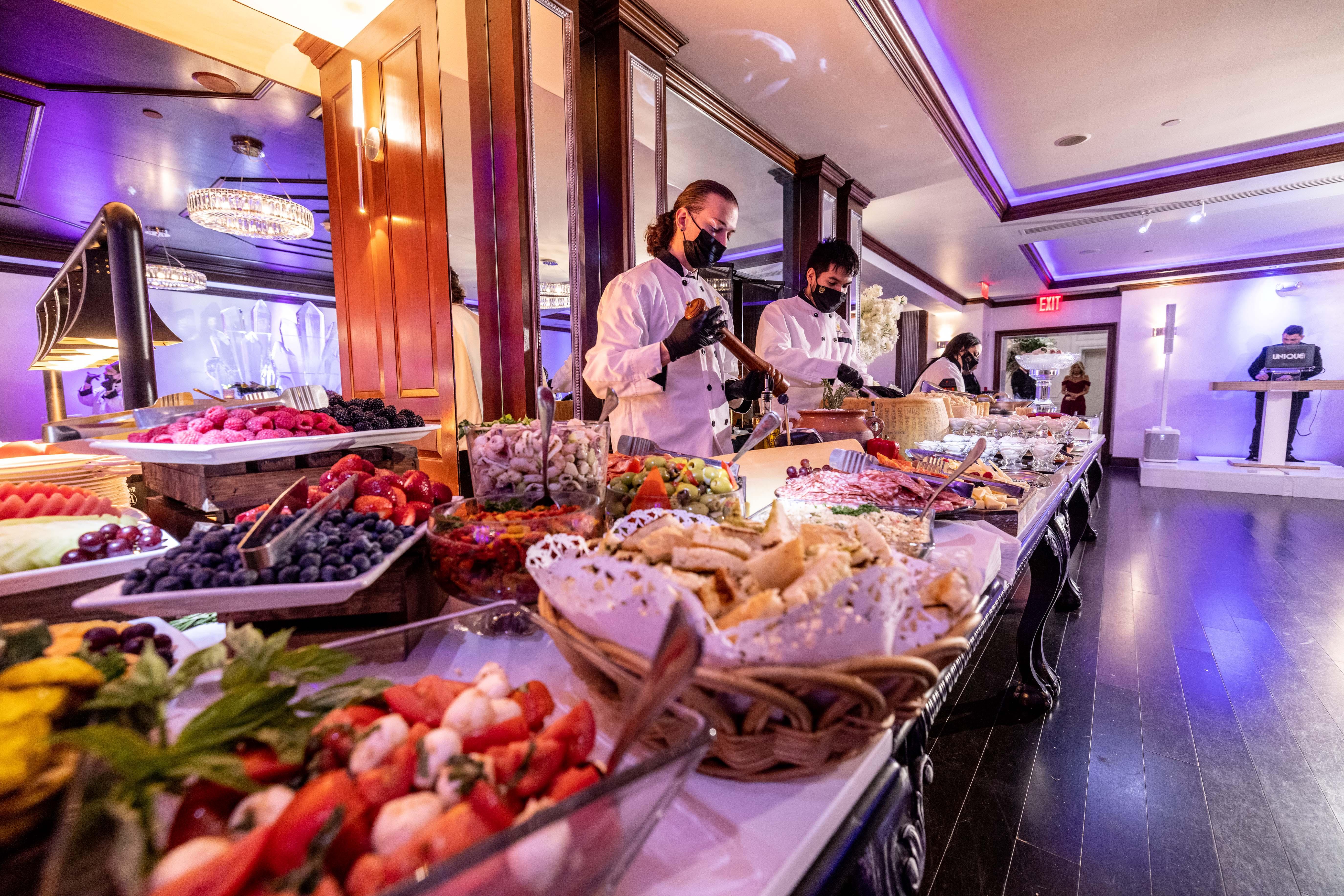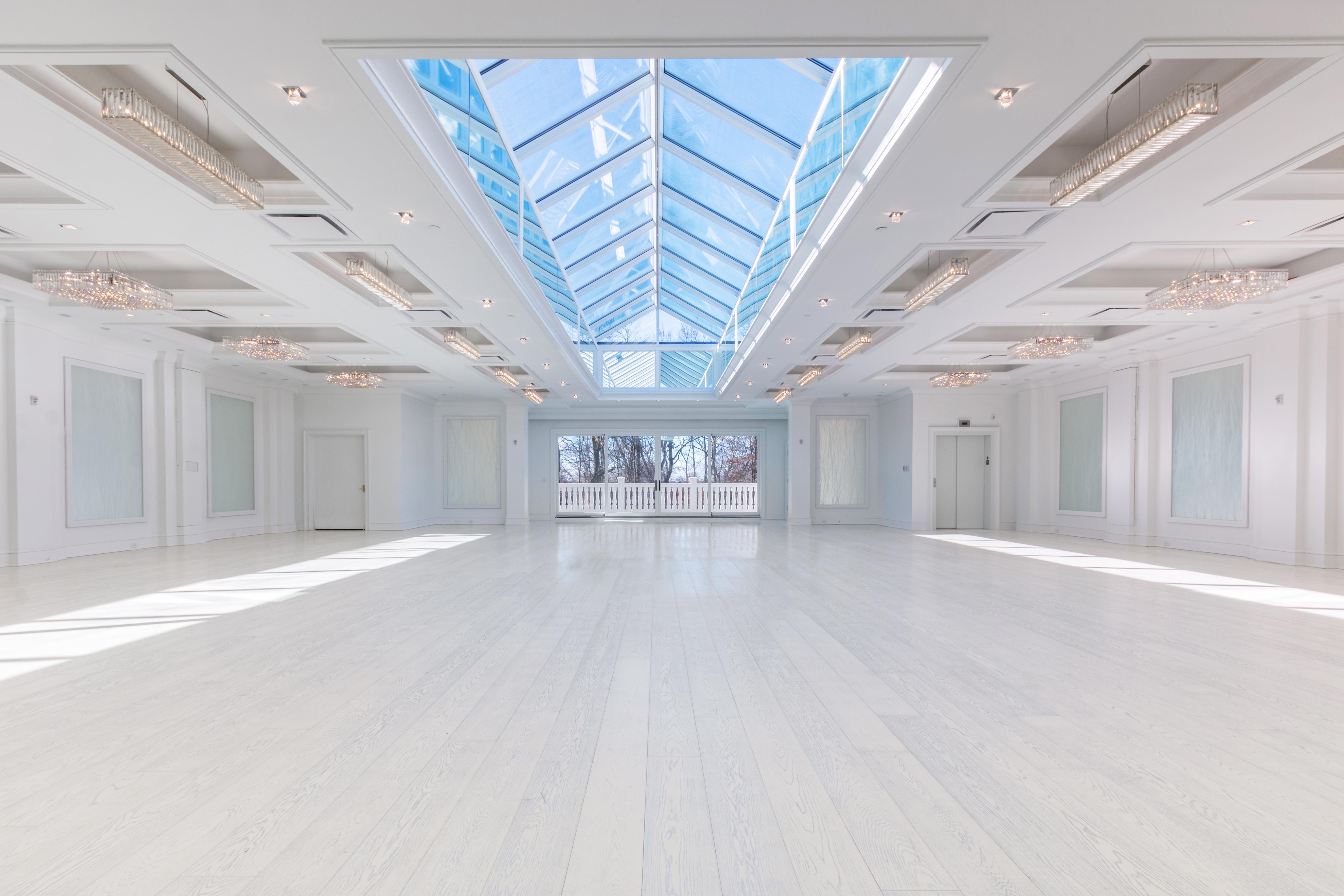 Upstairs at the Crystal Plaza is The Atrium, our multi-purpose and contemporary event space. Here you’ll find white and silver Italian hardwood flooring, an unobstructed fifty foot skylight, and stunning crystal chandeliers. It’s perfect for ceremonies, corporate events, cocktail hours, after-parties, and more.