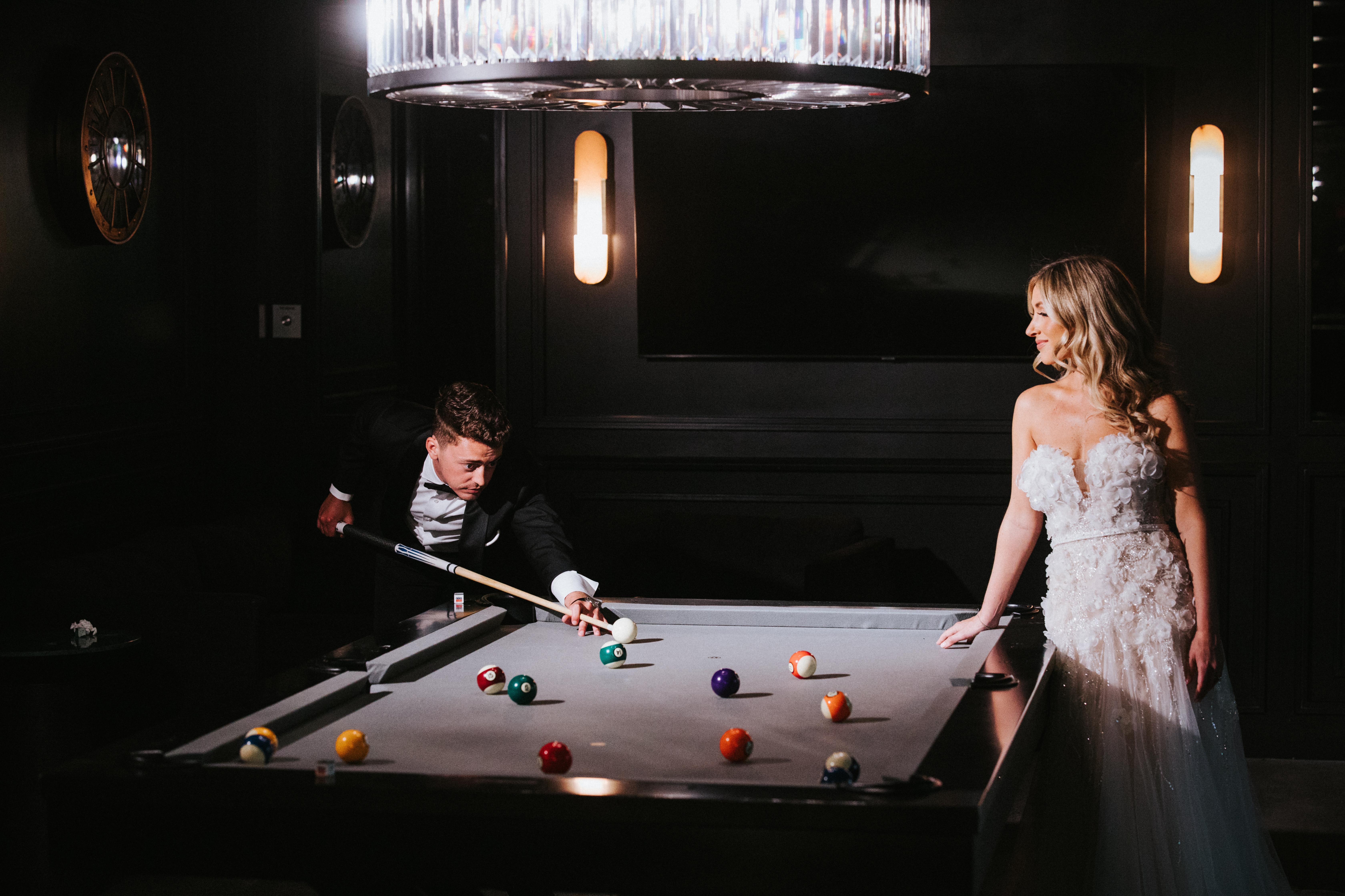 The Penthouse is a 3,000 sq. ft. private suite dream. It offers everything you need to get ready for your big day, including a salon area stocked with manicure stations and makeup chairs to a lounge area with a full bar and wardrobes. The Vault is the ideal space for pre-event activities. Here you’ll receive the VIP treatment and have access to amenities like a golf simulator, barbershop, punching bag, pool table, wine cellar, ventilation for cigars, TVs, restrooms, and so much more.