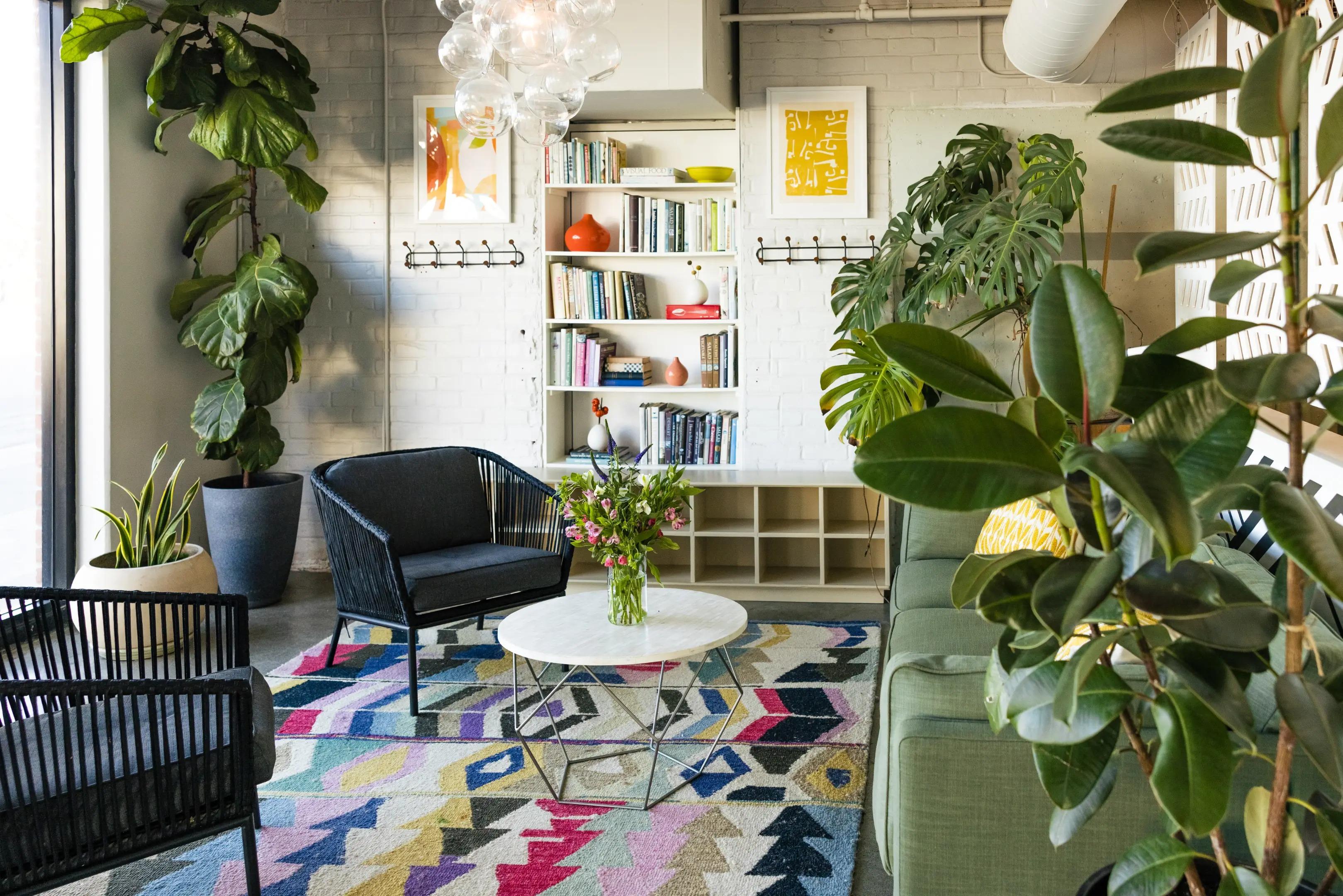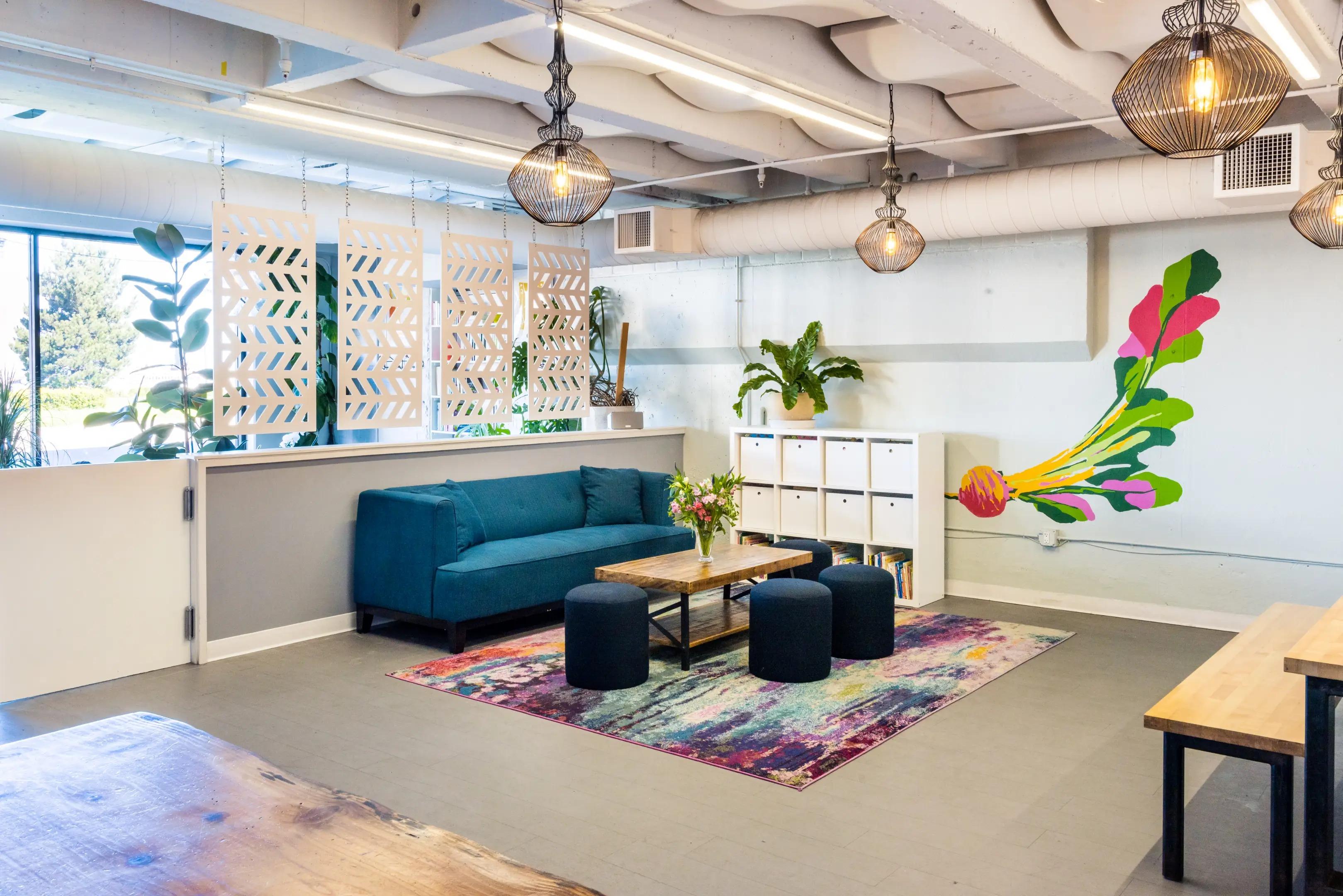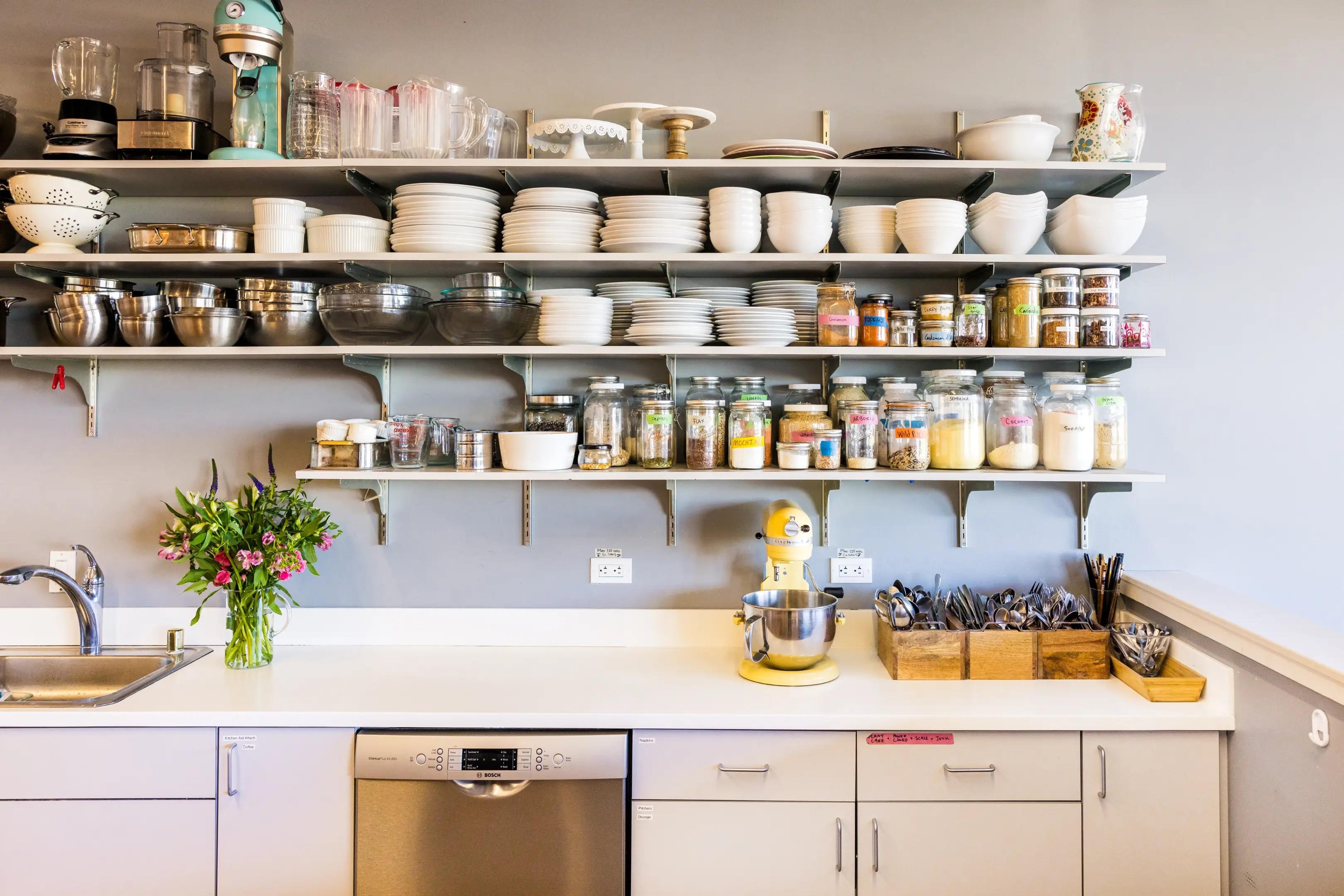 •Our 3 dining tables seat up to 35 people total for formal seated dining. •For soft seated dining, our space can accommodate about 50 people seated. •We have a three comfortable lounge areas for sitting/socializing and a movable partition wall that can divide the studio into two separate independent areas. •Our three stainless steel work-benches have adjustable heights (can be used by kids and grown-ups).