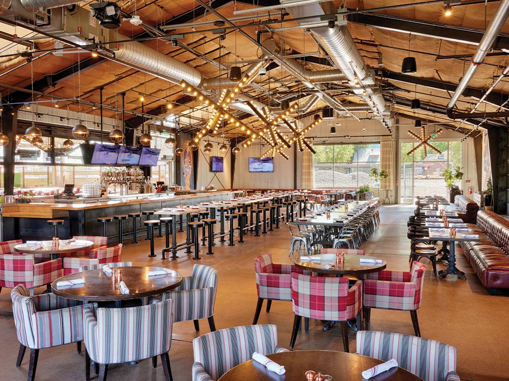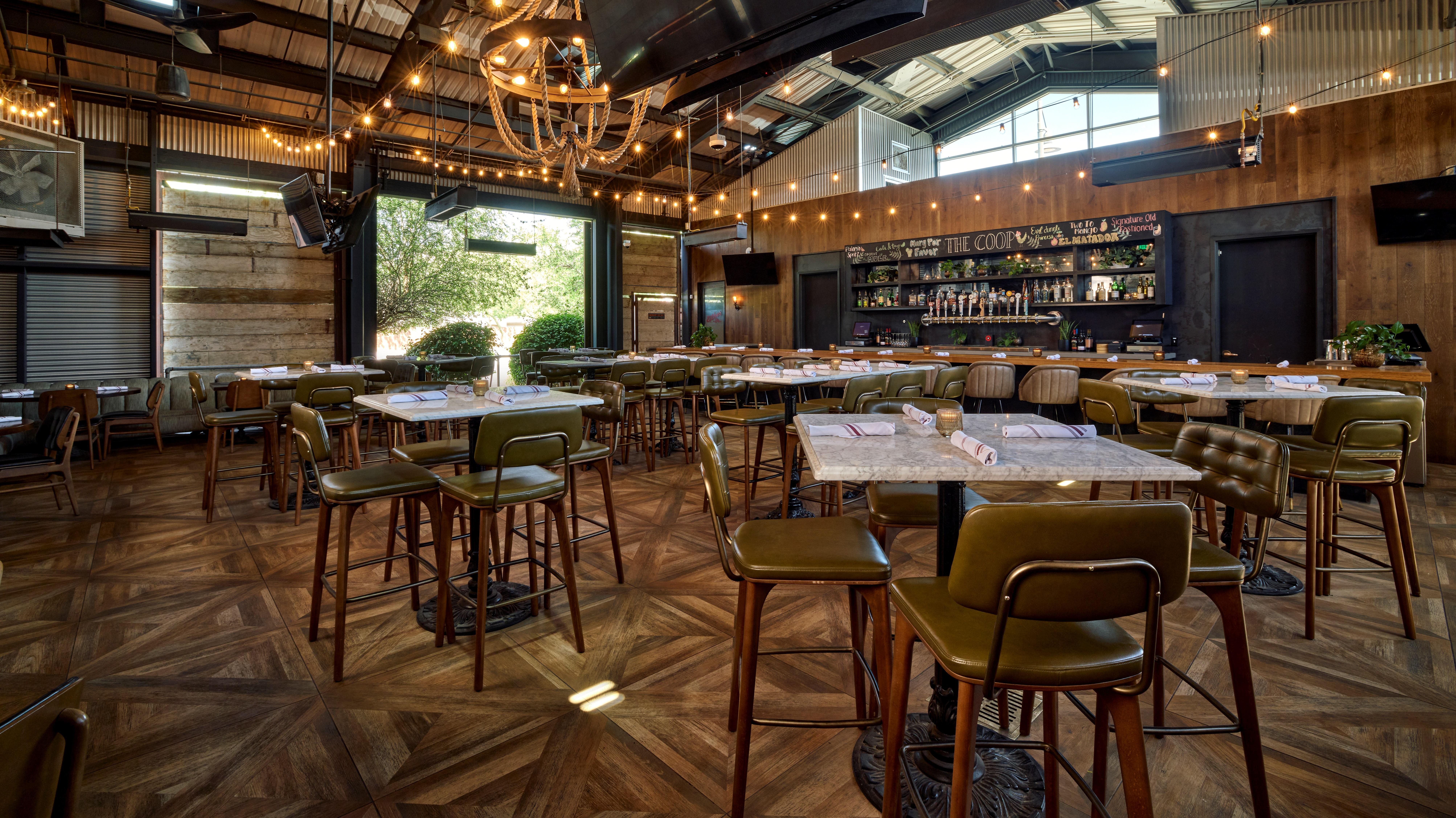 The Coop is an inviting, private space perfect for bridal showers, welcome mixers and rehearsal dinners. Located next to the gaming area, it blends playful charm with thoughtful design. Sliding barn doors offer the flexibility of a more intimate setting or an open-air feel, perfect for mingling. The Coop accommodates seated events for approximately 50 guests or reception-style gatherings for up to 75, making it the perfect spot to gather your closest friends and family before the big day.