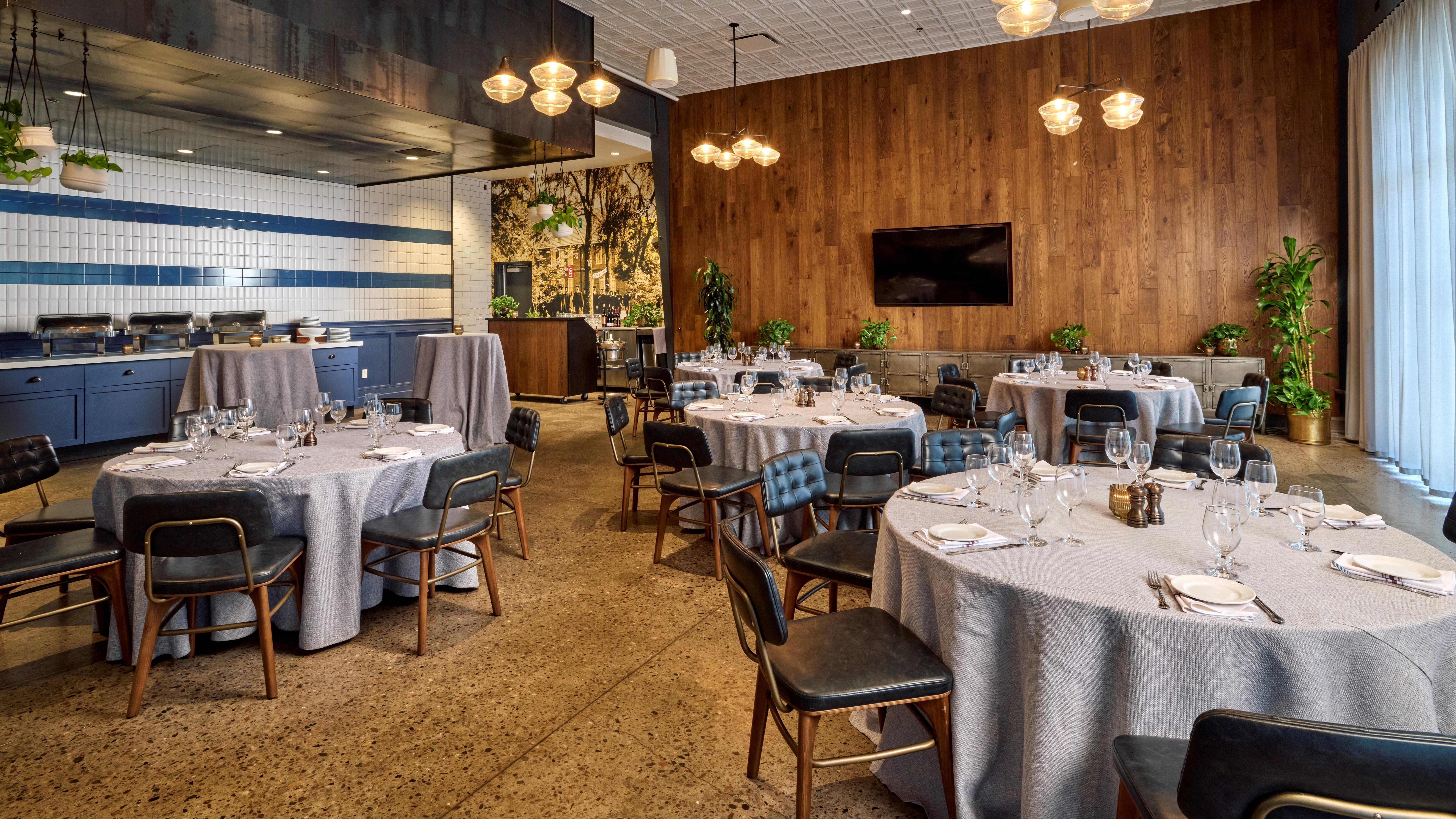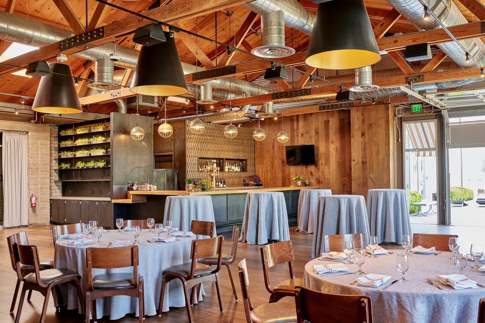 The Gallery: an intimate private room with its own bar, patio, AV systems, and space for up to 80 seated or 100 guests reception-style—perfect for curated weddings, rehearsal dinners, and signature celebrations.