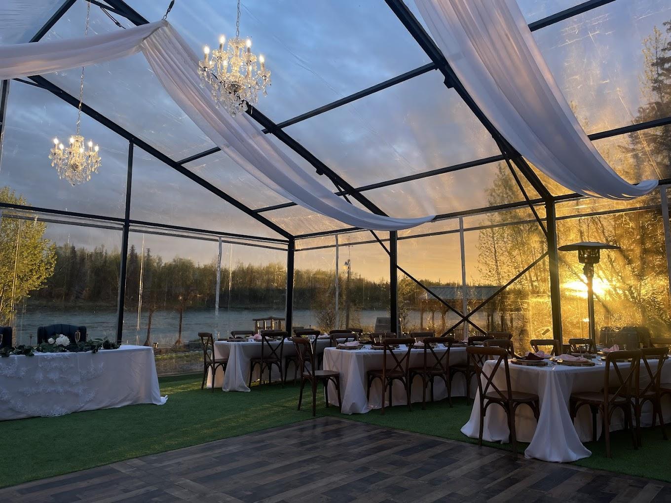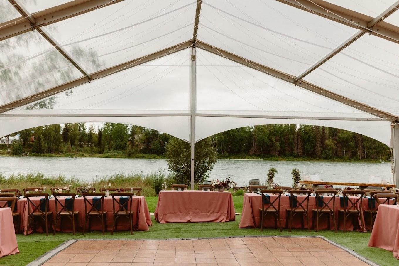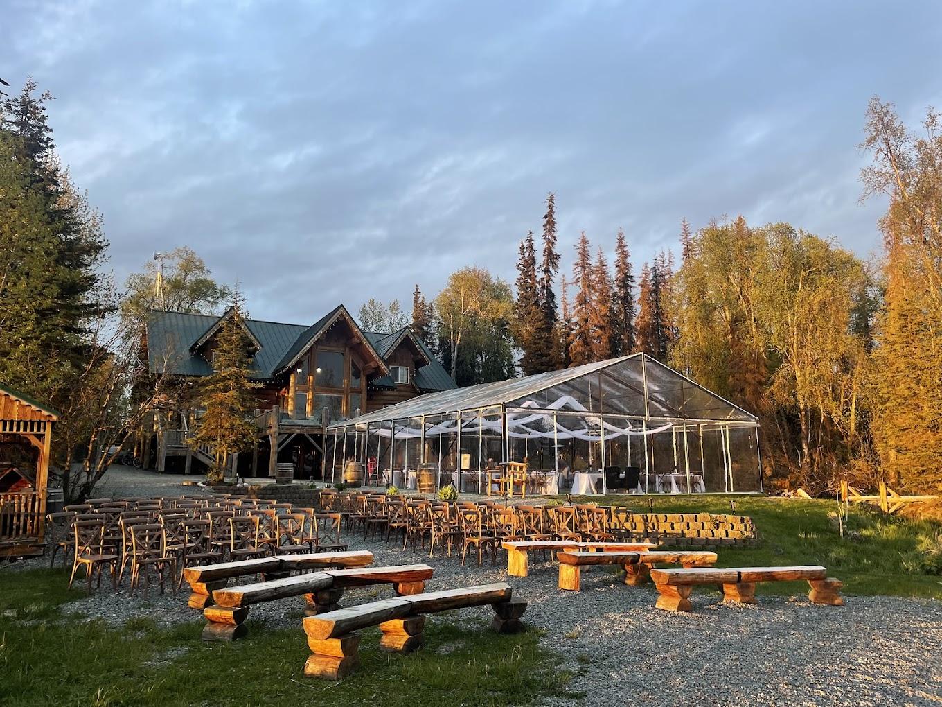 A gorgeous wedding venue at an affordable price including incredible lodging accommodations for any dream destination wedding location. We are the newest wedding locale out and are dedicated to giving you a truly memorable 5 star quality venue that you & your family & loved ones will rave about and remember for a lifetime. From our huge sprucewood logs that are breathtaking which will leave you in awe upon arrival, to our flat lawn on the water’s edge that is unique to us as we are literally the ONLY wedding venue who can offer the bride and groom a place to say their vows directly on the bank of the Kenai River.