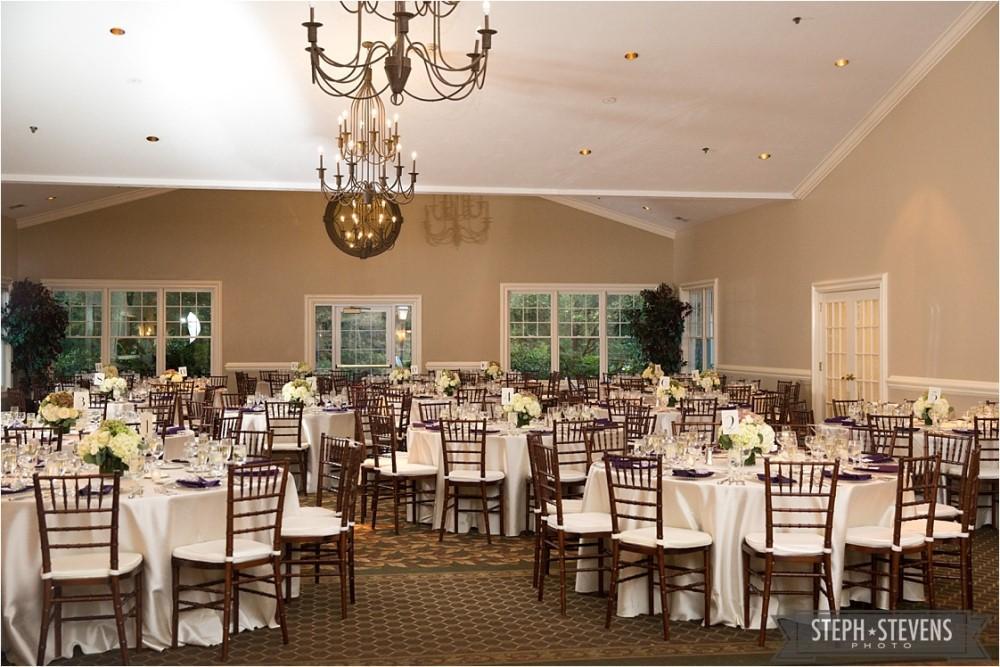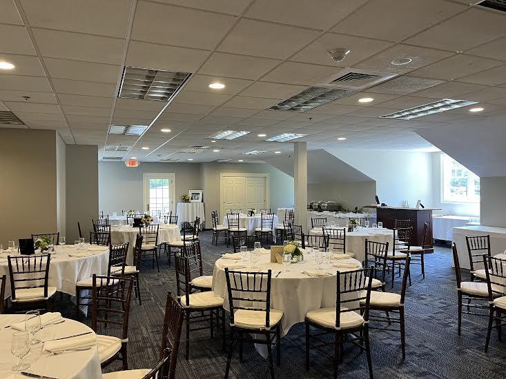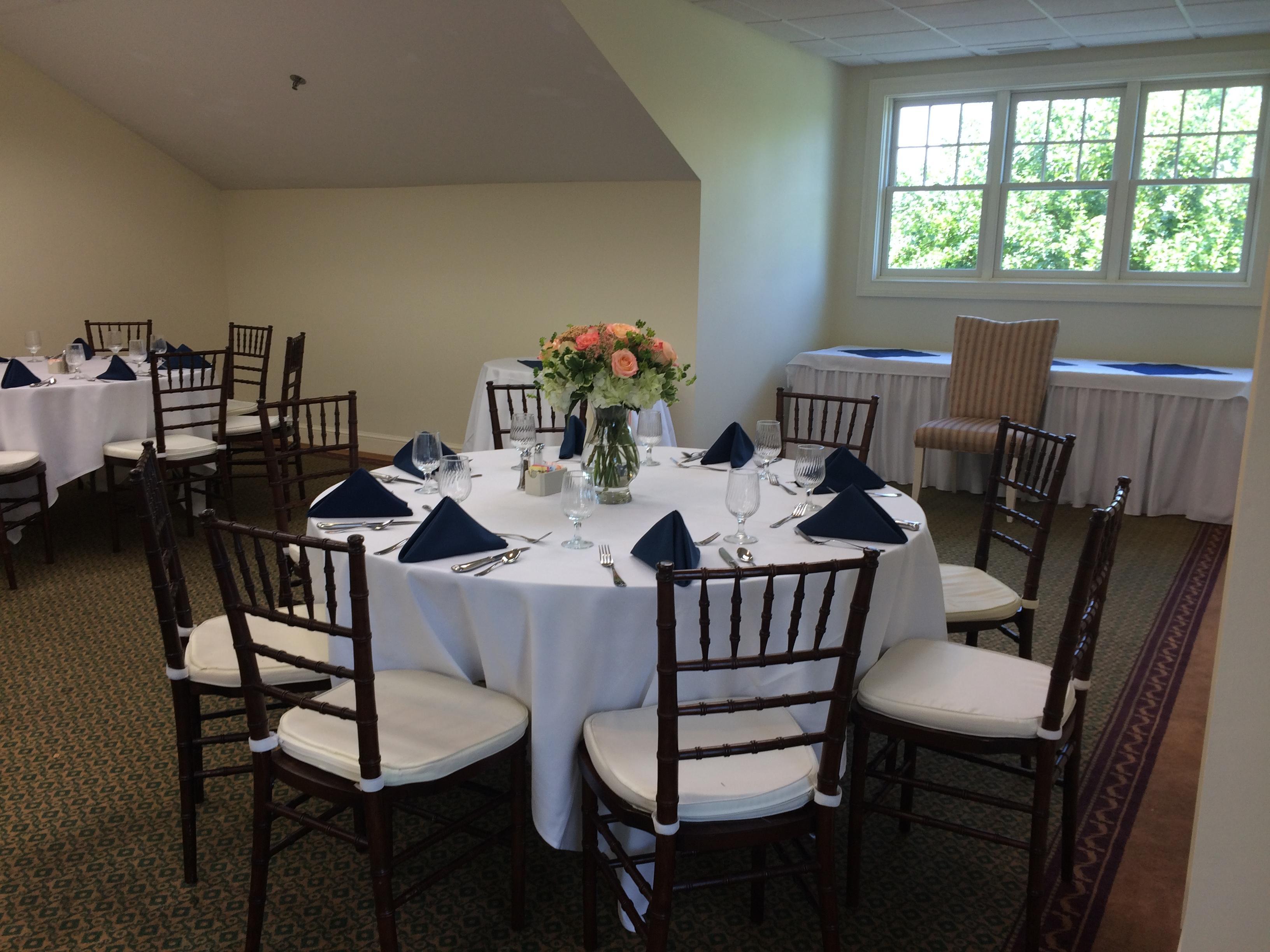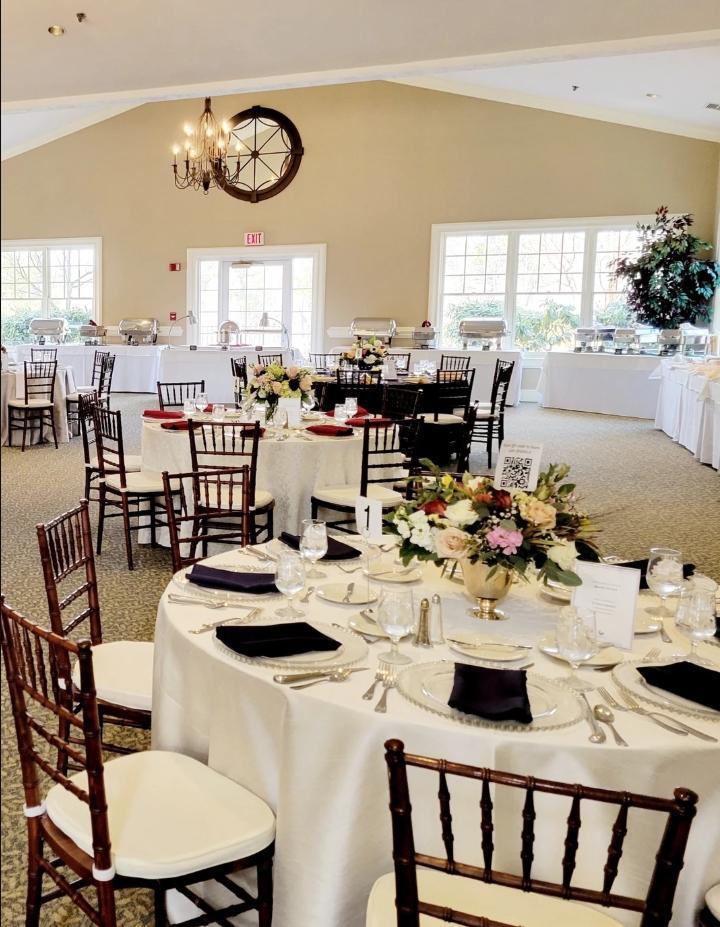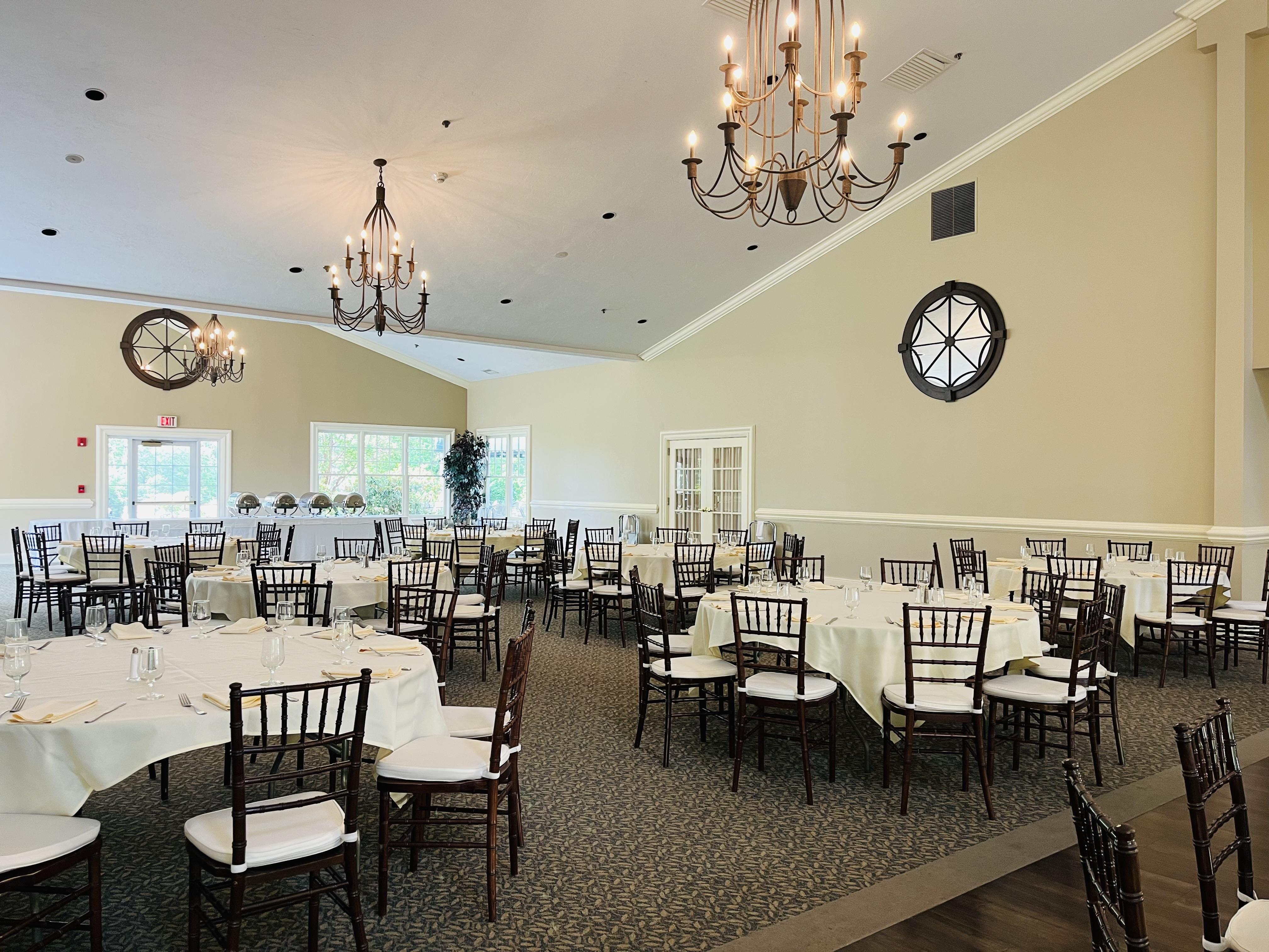 The Ballroom is the perfect place for your reception. It includes a full bar, permanent dance floor and views of the 18th hole. The grand cathedral ceilings along with beautiful chandeliers and details creates the perfect setting for all your pictures. To add an extra touch, there is a patio out the back that gives stunning views to a signature New England golf course.