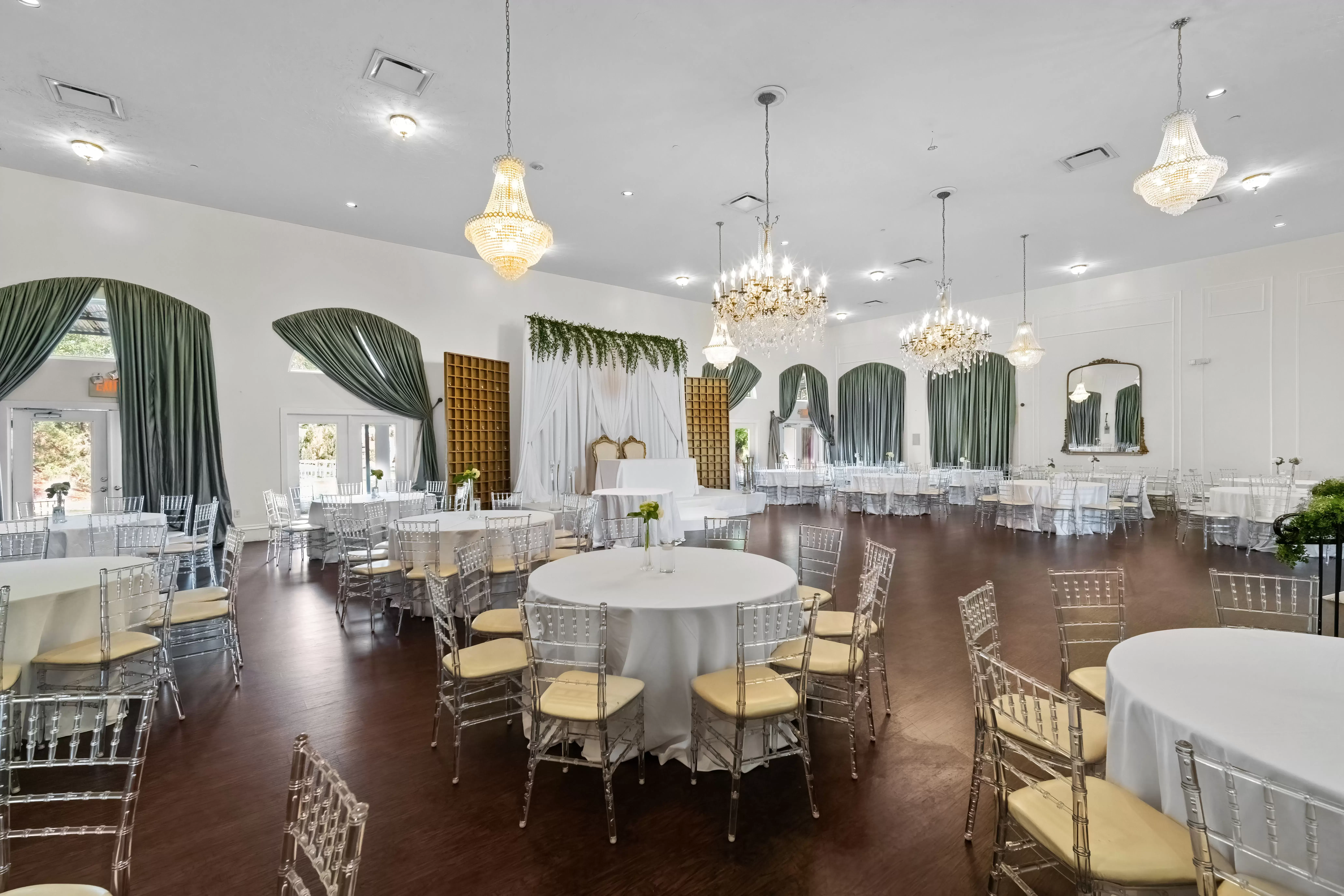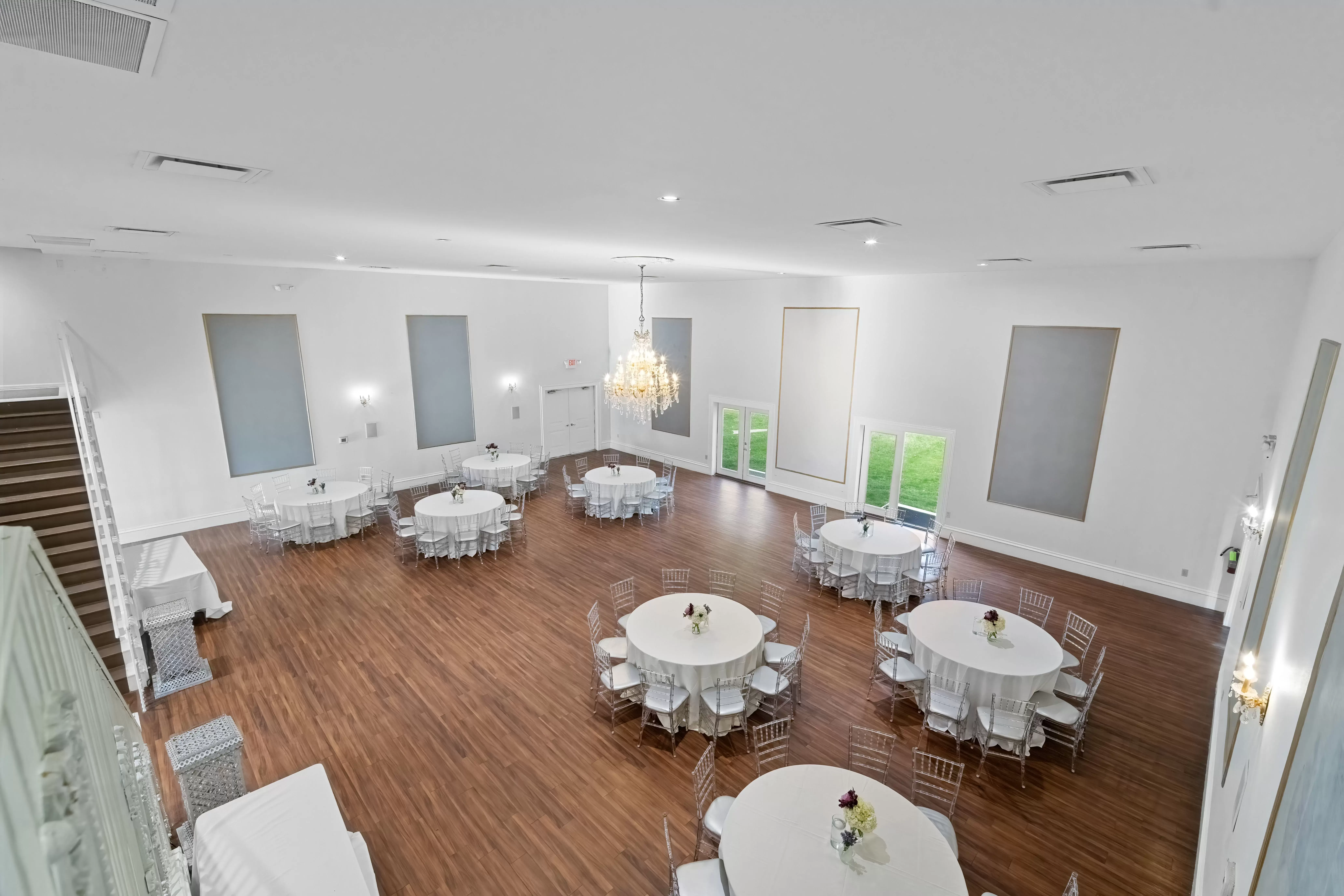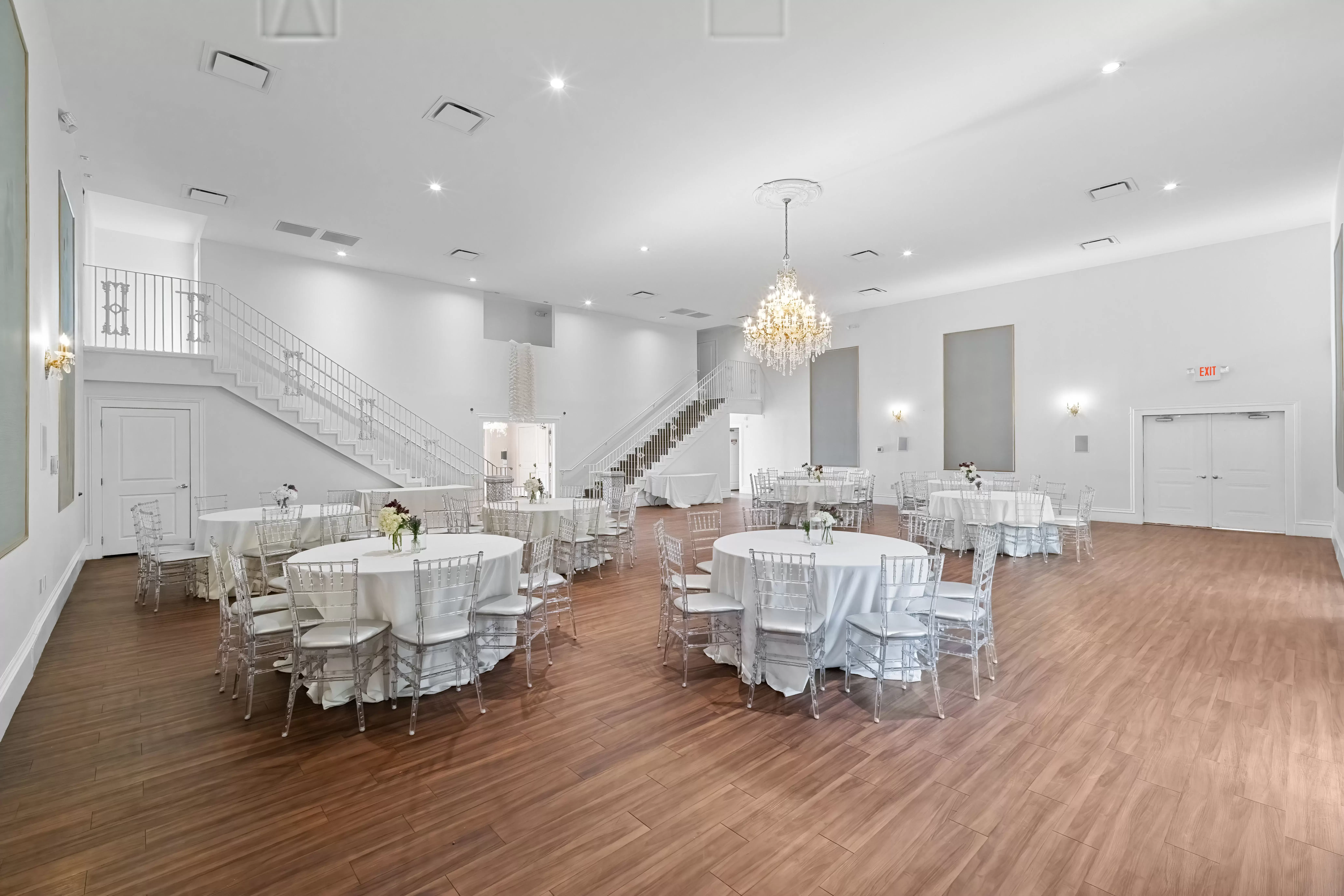 Set up and break down of ballroom. All tables (head table, cake table, sign-in table, etc.) White or ivory linen. Gold or Silver Centerpieces surrounded by votive candles. Clear chiavari chairs. Access to bridal and groom suites. Complimentary cake cutting for wedding receptions.