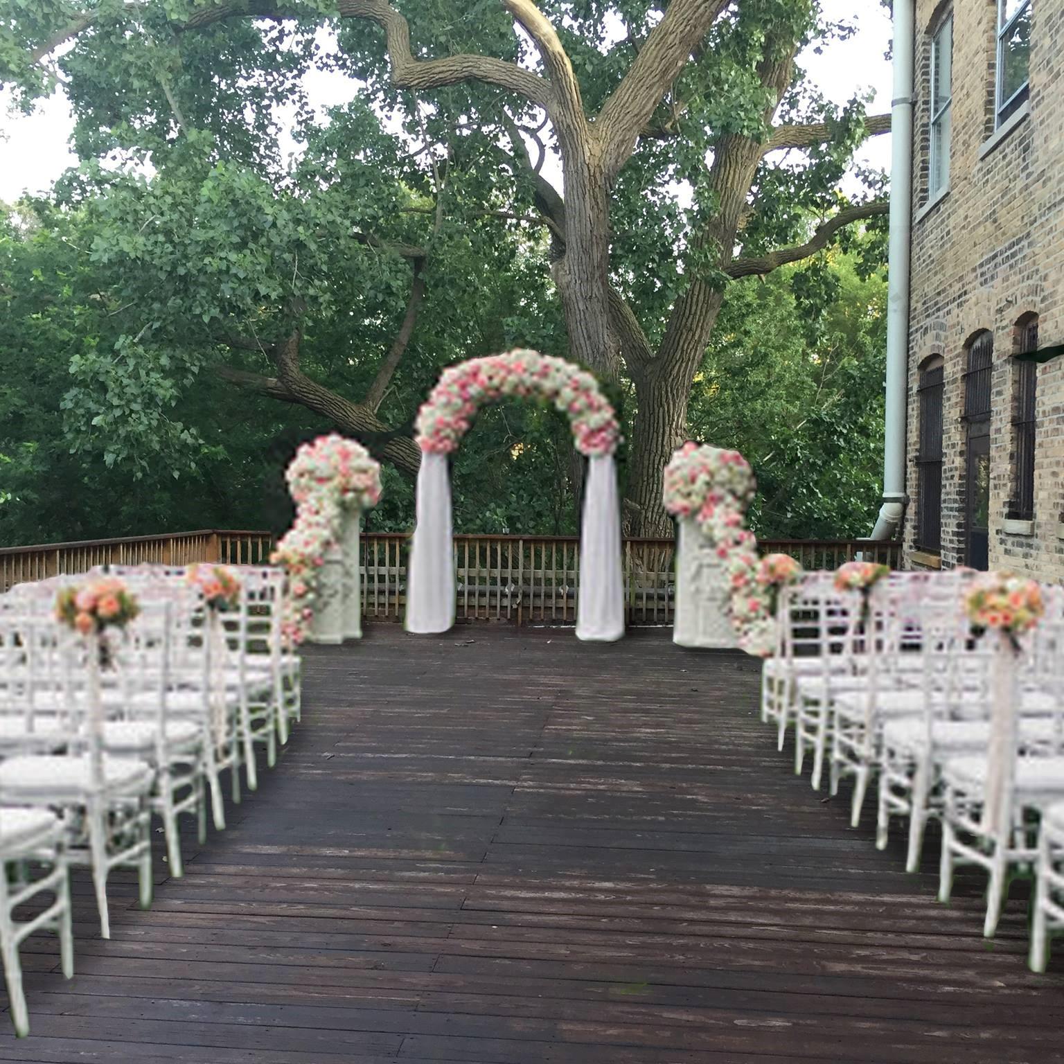 The gallery is 2500 sq feet of space with three movable walls. The outdoor deck overlooking the urban ravine and is a beautiful spot for a summer wedding. The deck has 600 sq feet of space. This intimate space is very versatile for day or evening events.