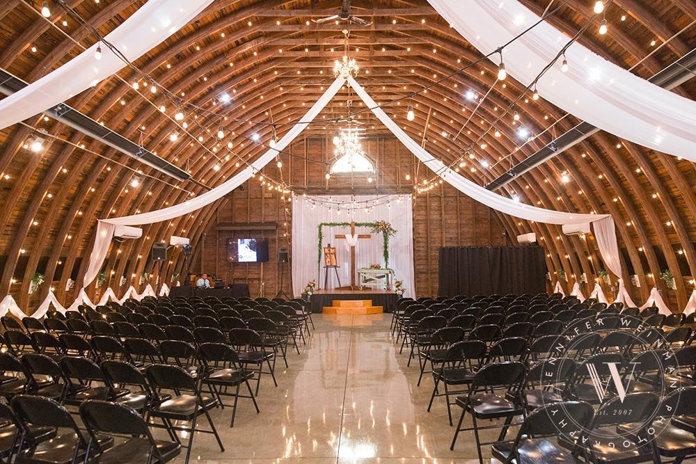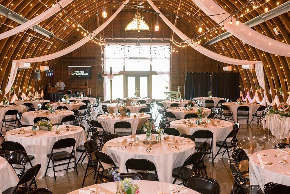 In 1972, 70-year-old Ben Vanderhook tore down old barns in Mahaska County and surrounding counties to create our beautiful barn, located a stone’s throw south of Oskaloosa, Iowa. The 3½ acre property includes a 147×46×60 Quonset hut barn, open fields as well as mature shade trees. Debbie’s Celebration Barn is one of the most extraordinary and romantic settings for a Midwest wedding or special event. The event space in the barn is spacious with many options for originality to fit your occasion. Both east and west ends of The Barn feature large double French doors which add to the charm as well as aid in cross ventilation on warmer summer evenings.