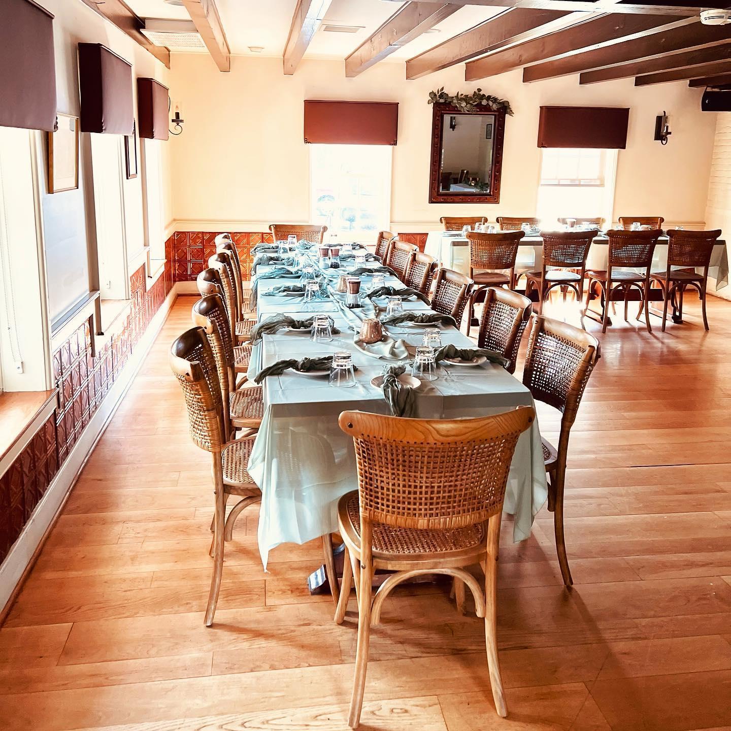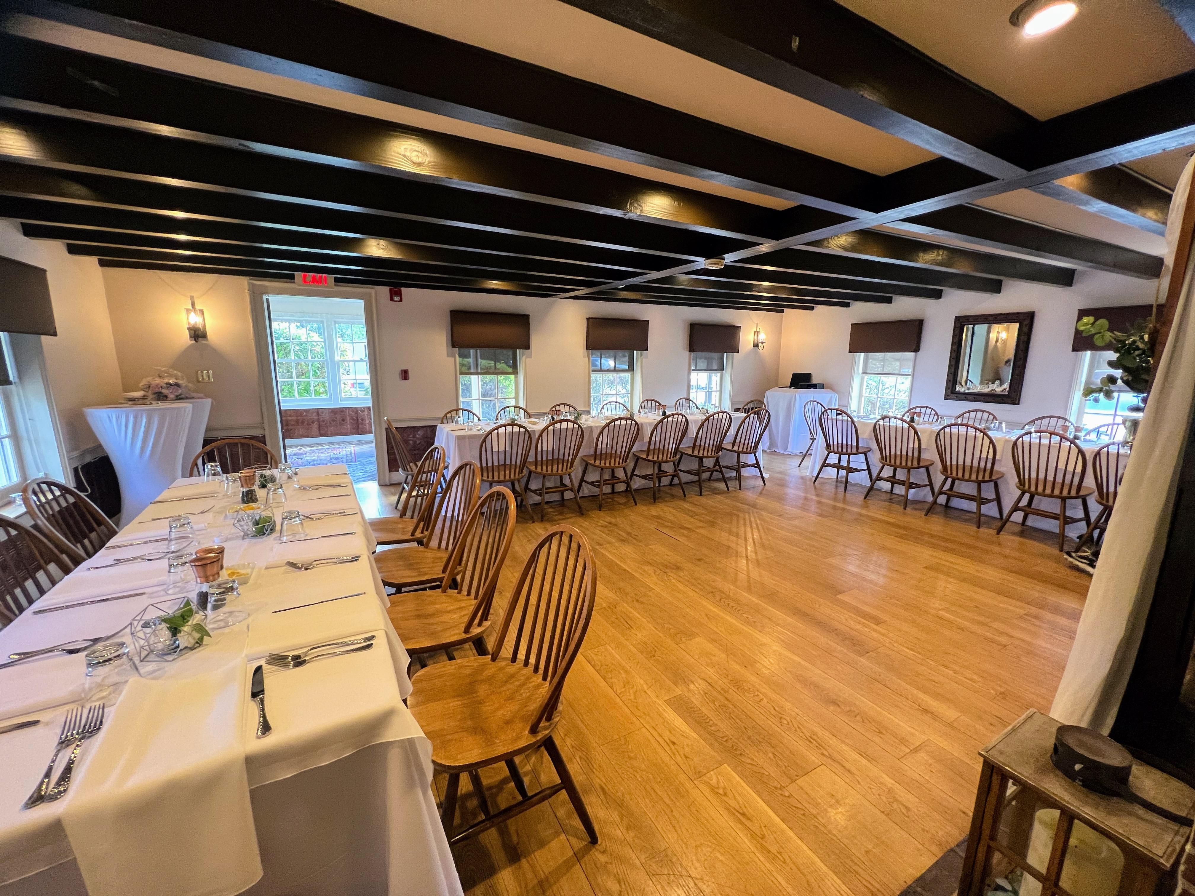 The tavern features beautiful original wood beamed ceilings, a double-sided fireplace, private bar and private entrance. The tavern can accommodate 40 guests.