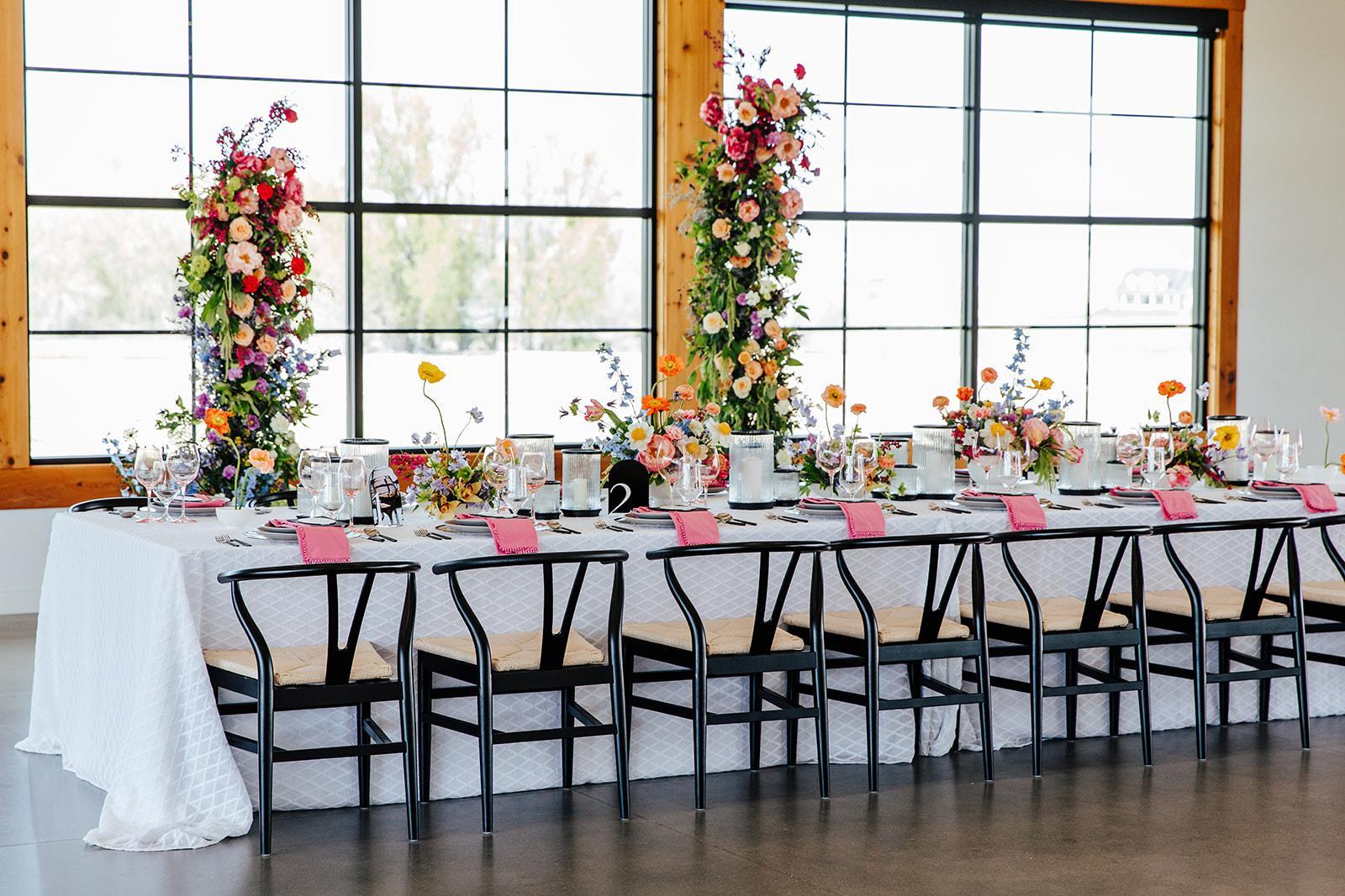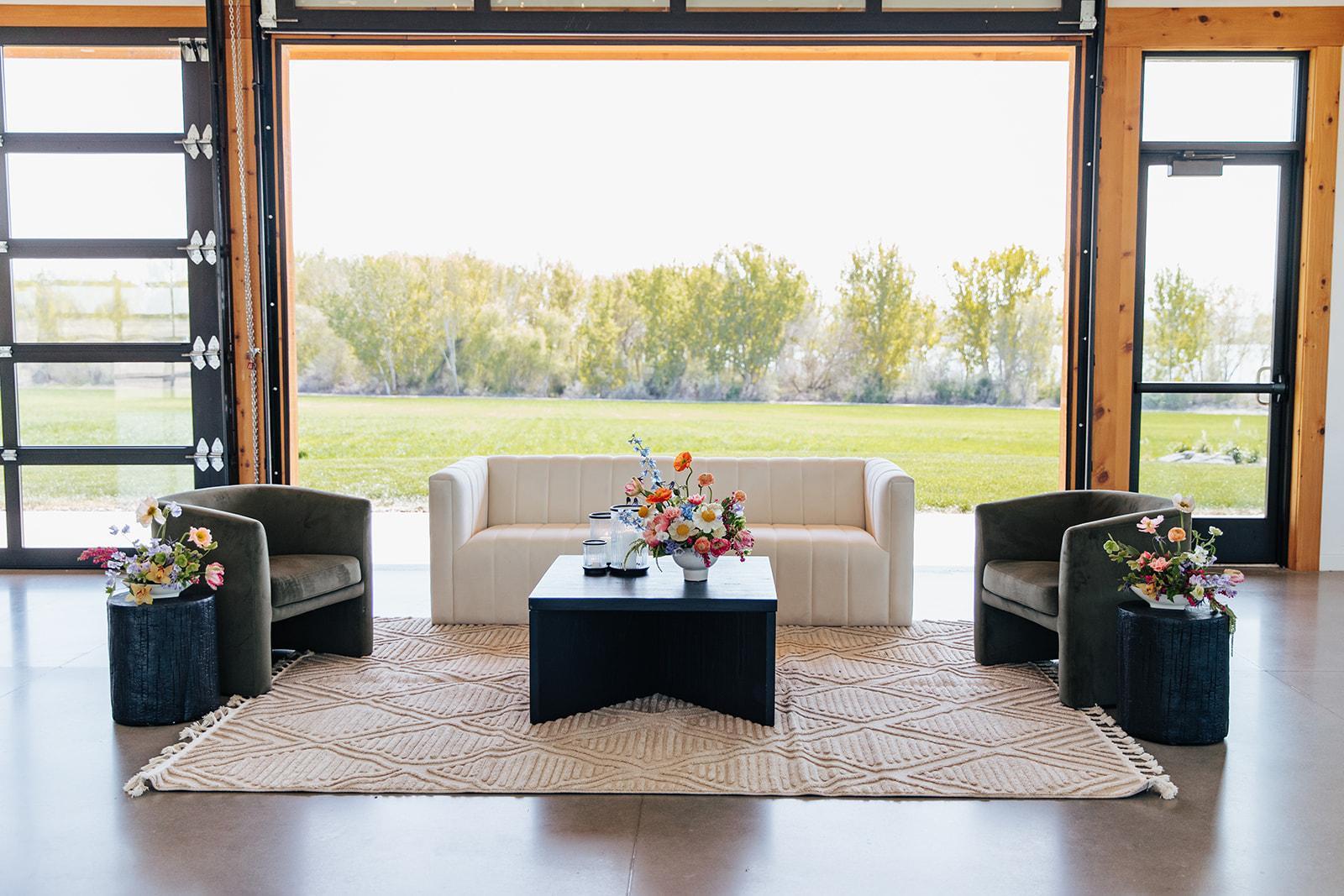 Nestled just outside Nampa, Idaho, Deer Flat Ranch is a serene, lakeside event venue that beautifully blends nature with refined design. Deer Flat Ranch is family-owned and operated, and aims to provide a personalized and intentional event experience. Its 2021-built event center includes a modern, light-filled interior that opens up to the outdoors via large garage-style doors, making the indoor-outdoor transition seamless and elegant. Deer Flat Ranch is known for its aesthetic versatility: its neutral palette, abundant natural light, and thoughtful architecture create a “blank canvas” that couples and event planners can customize to reflect any design vision. As a venue that caters to gatherings from weddings to conferences and craft markets, Deer Flat Ranch has become known for offering both elegance and tranquility in the Treasure Valley event scene.