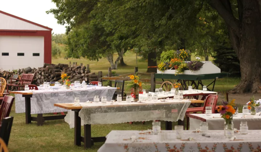 Our tables and chairs (seating for about 200) 40x60 white party tent (2 25ft poles in the middle) Wagon rides for your guests and wedding party to and from the wedding site (assuming the ceremony is on our grounds!) The classic barn makes the perfect backdrop to your event Max size for an event is 275