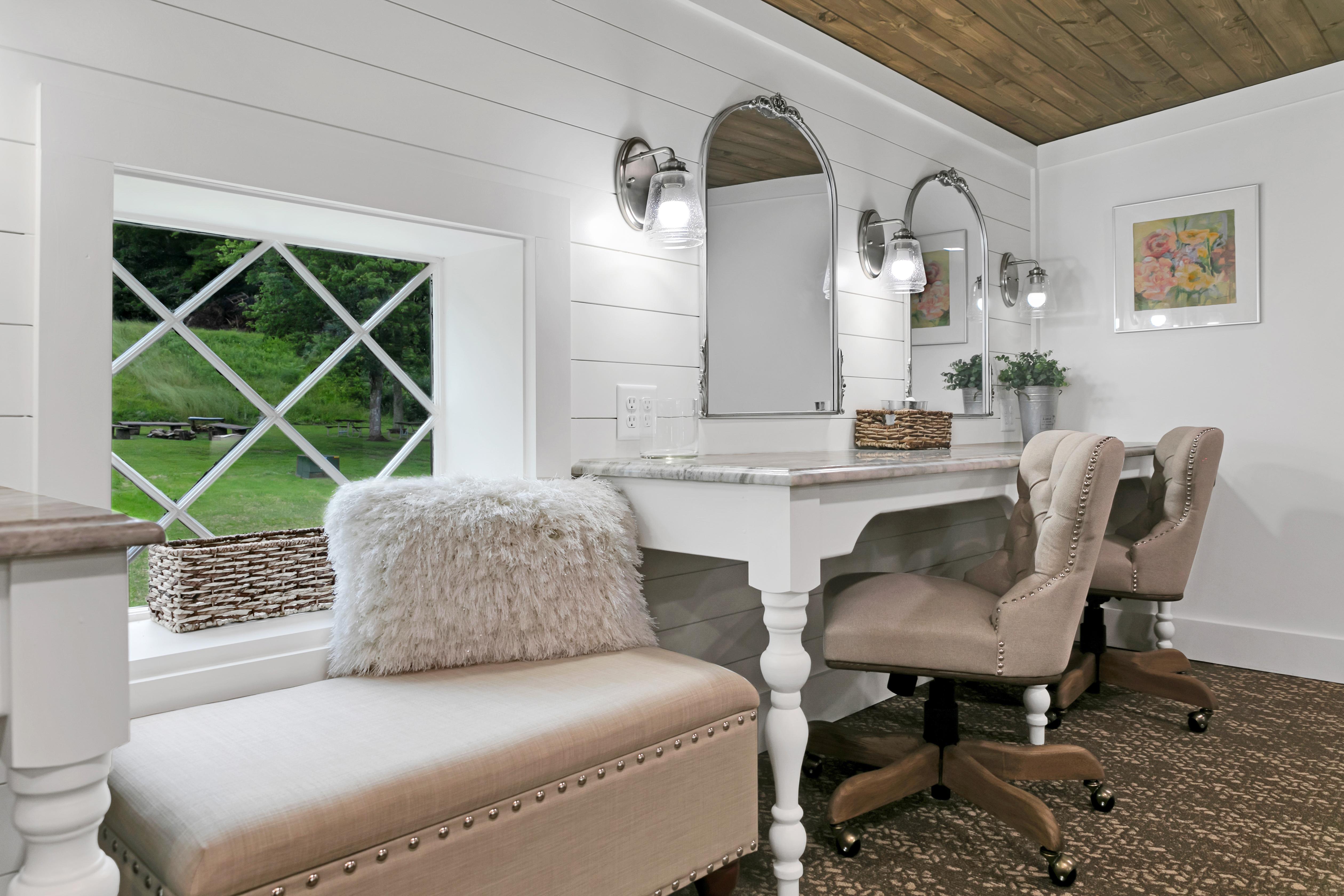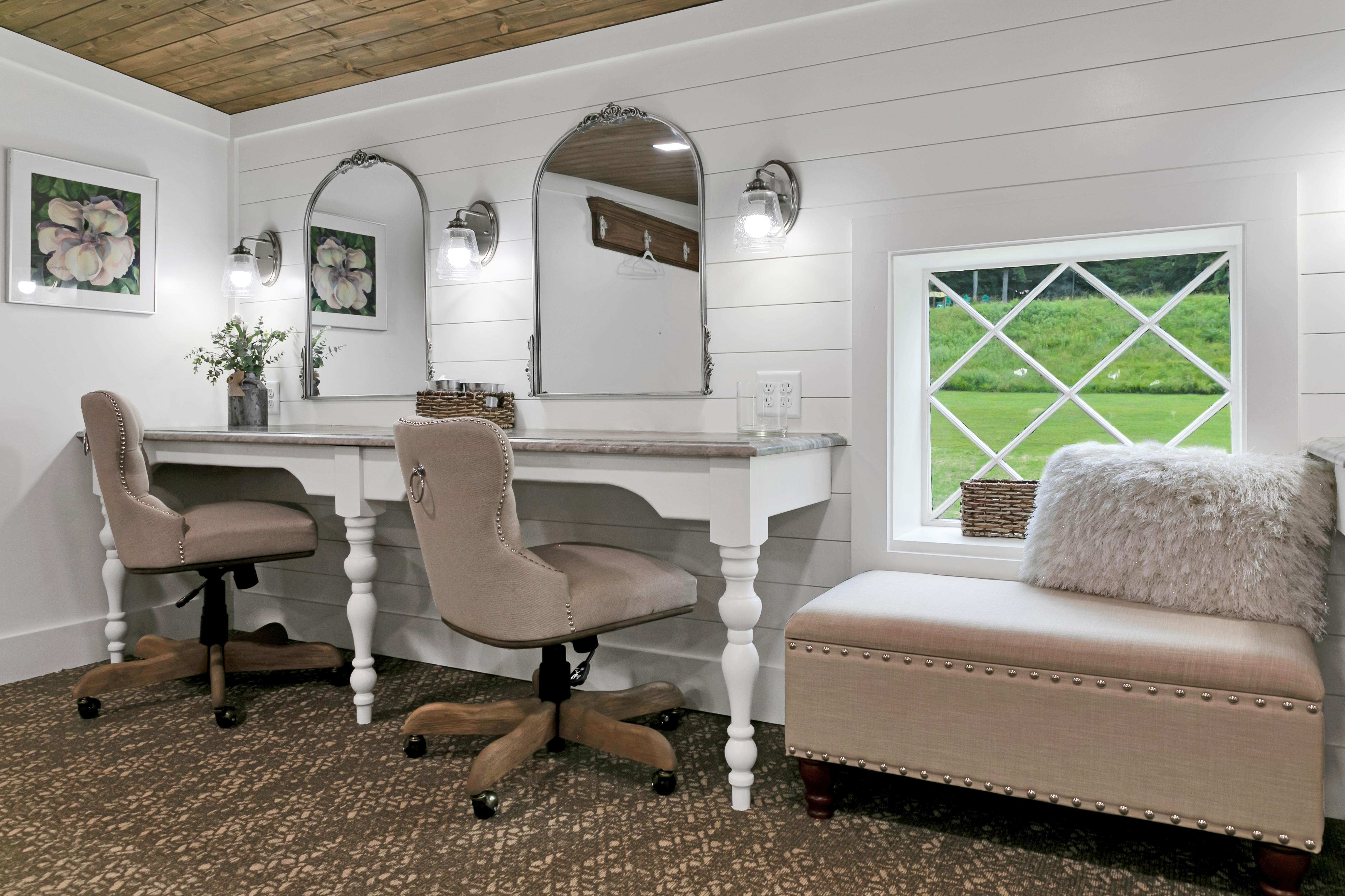 Air conditioning and heat, ceiling fans, multiple lighting options all on dimmers, removable stage, tables & chairs, wooden portable bar tops and buffet table. The kitchen is complete with refrigerator and freezer storage, warming ovens, ice machine and plenty of room for prep. Outdoor plugs for food trucks available.
