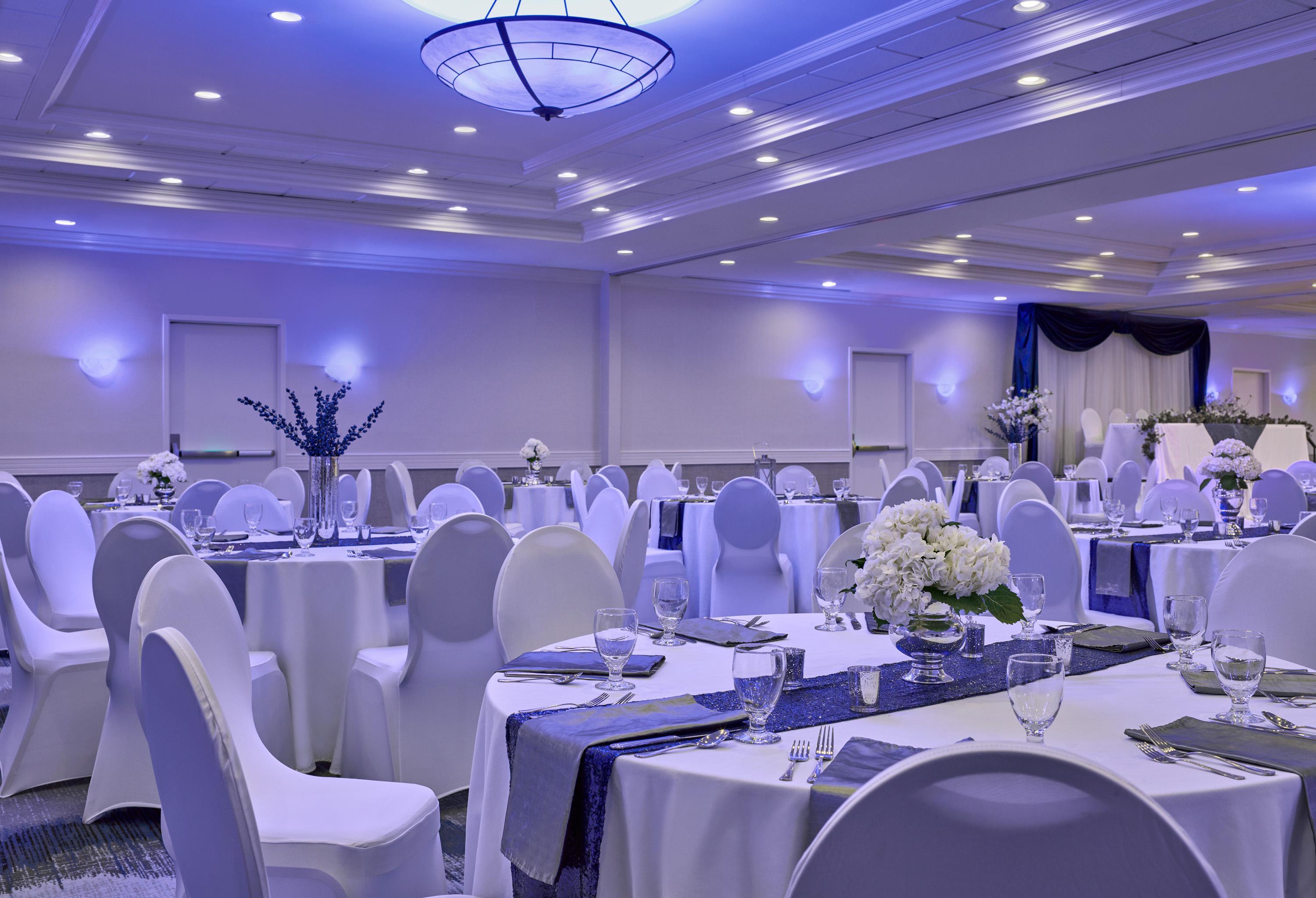Transform your special occasion into a premier event at our Ballroom, hosting up to 1300 guests. Choose from all-inclusive packages or menus crafted by award-winning chefs. Located downtown, guests can explore nearby restaurants and entertainment. Enjoy complimentary amenities like Wi-Fi, fitness center, indoor pool, and a second-floor sundeck. Benefit from free parking and onsite Starbucks. Customize your meeting space with various floor plans and seating arrangements.