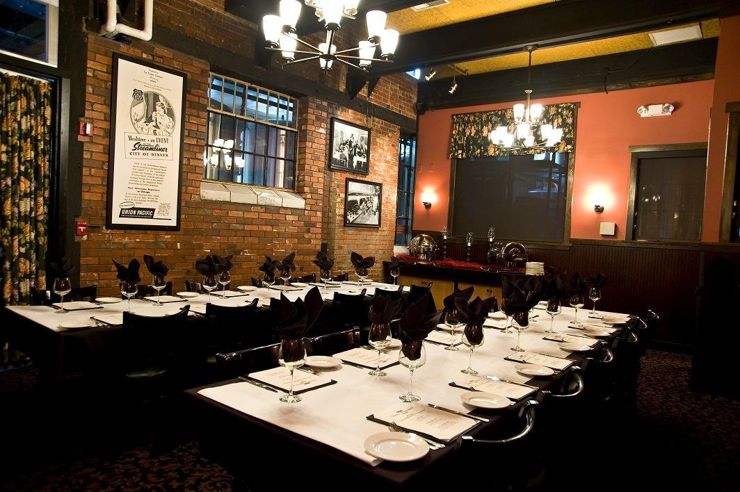 Our largest banquet room is located in the back of the restaurant. Appropriately named the Caboose it has it's own private bar. It has a tremendous view of Coors Field and overlooking McGregor's Square. The Caboose is available for morning meetings, lunches and dinner events. The Caboose can accommodate groups of 120 for seating and up to 200 for cocktail receptions.