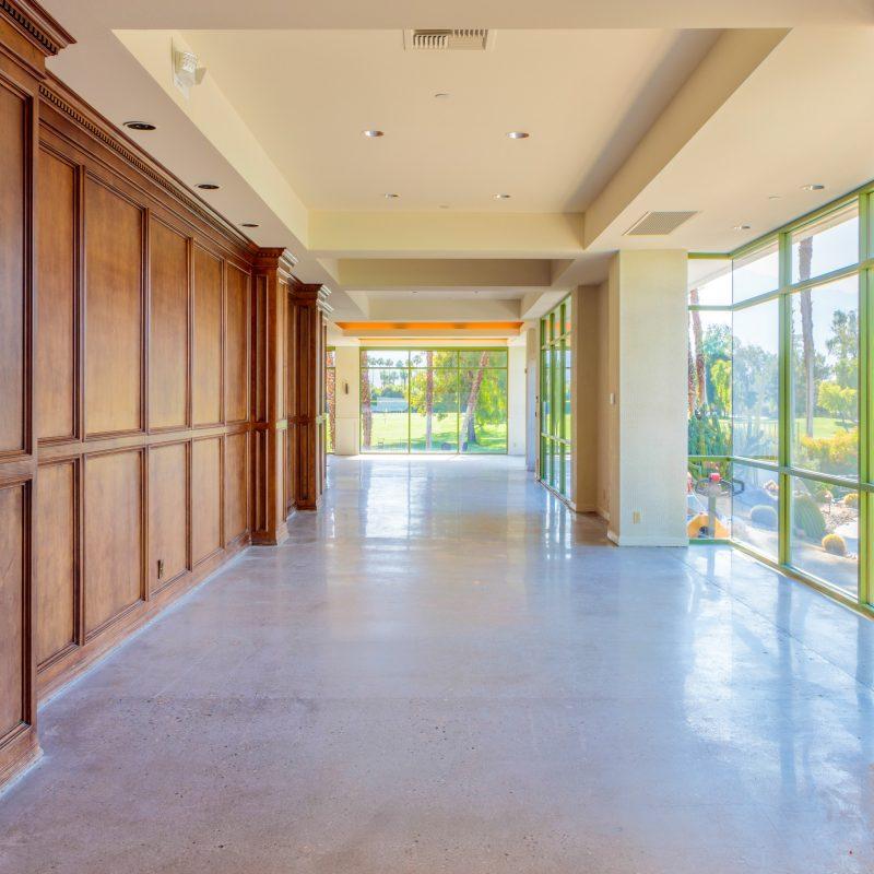 This space offers floor-to-ceiling views of the course, the lake, and mountains!