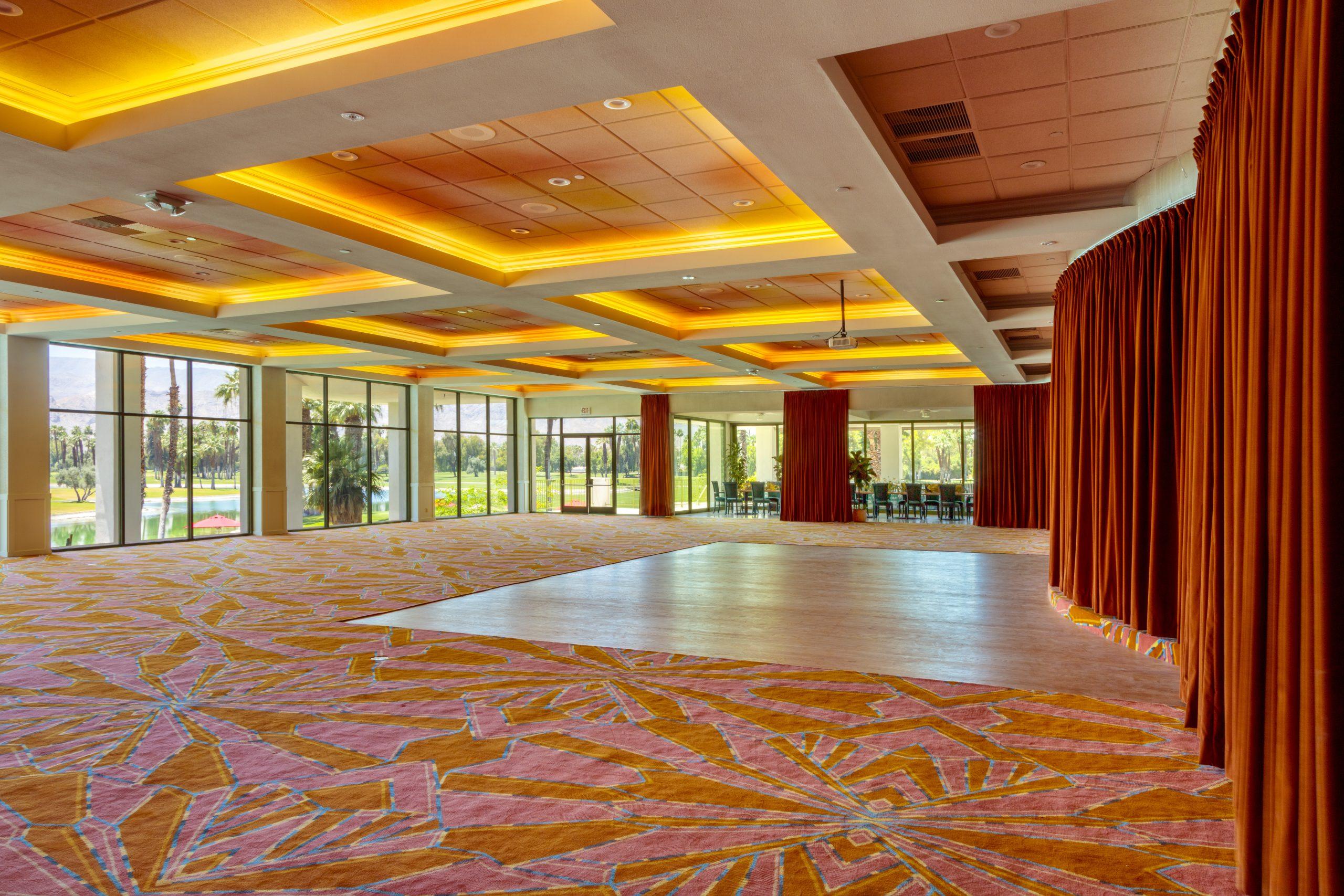 Set on 100 manicured acres in a serpentine meander around a shimmering 25-acre lake, Desert Island was kept under wraps for the last 50 years and is now open to the public and available for celebrations. Nestled in the top floor of the clubhouse and offering floor-to-ceiling views of the course, the lake, and mountains beyond, Desert Islandβs Ballroom, is set-ready for entertainment, performances and receptions with a music stage, dance floor, and lighting to meet any mood. Locations for wedding ceremonies include: the West Range, Fairway Seven, Fairway Nine, Palm Grove and the Northern Gallery. Need more space? The Penney, Founders Room, 9 1/2, The Southern Verandah, and Parlour are all available for additional buyout fees.