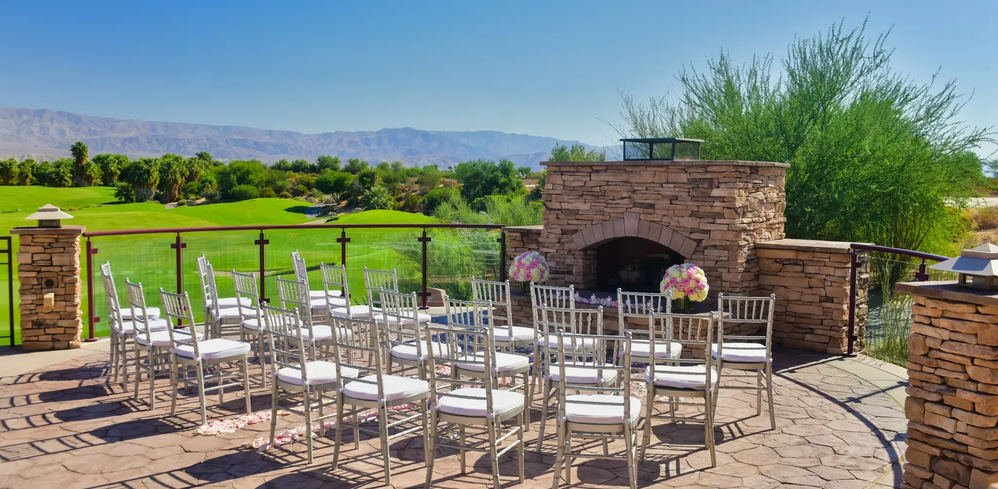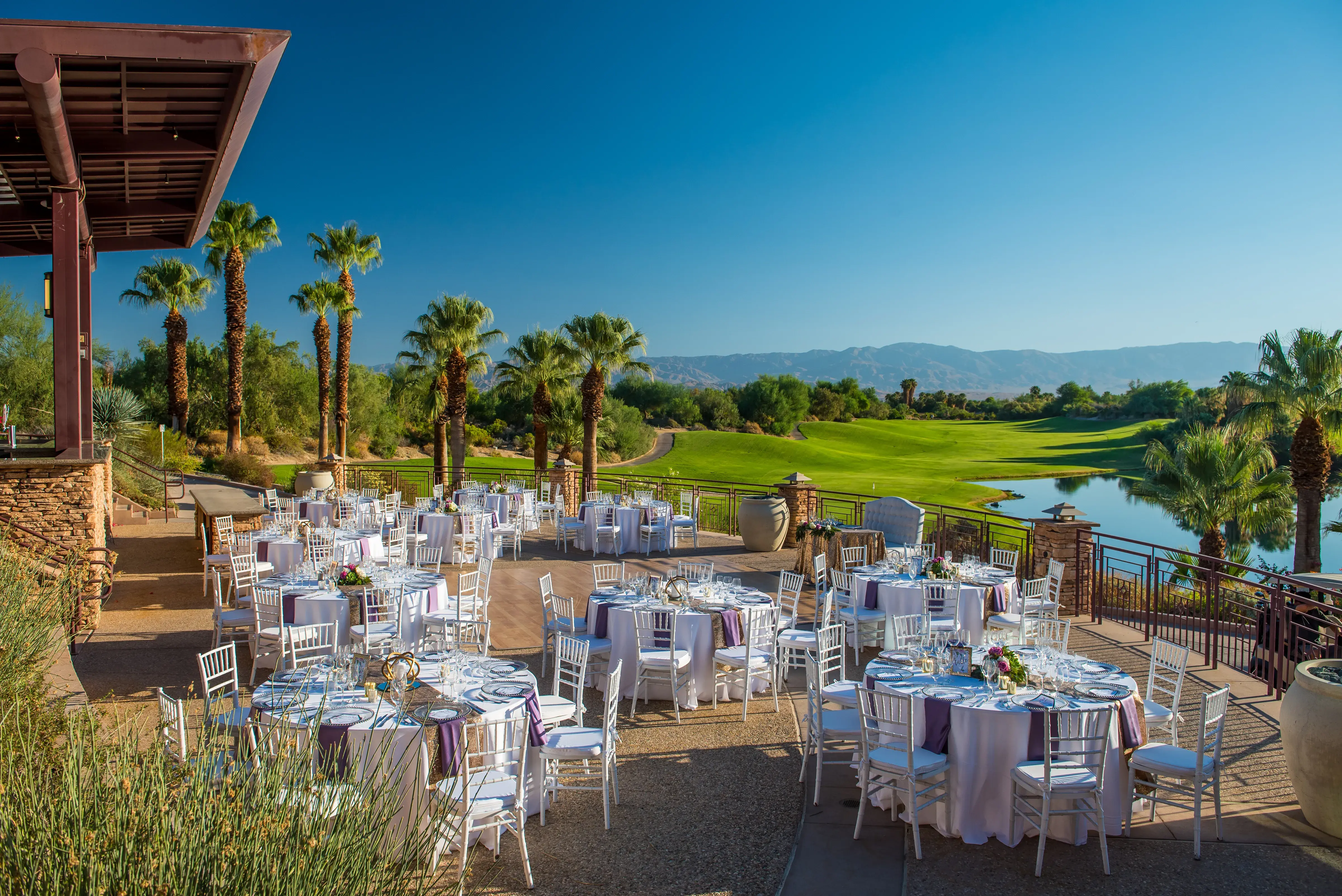 Say “I do” with breathtaking views of the surrounding desert and lush fairways. The Palm Desert Terrace offers a serene lakeside ceremony space that blends natural beauty with desert sophistication.