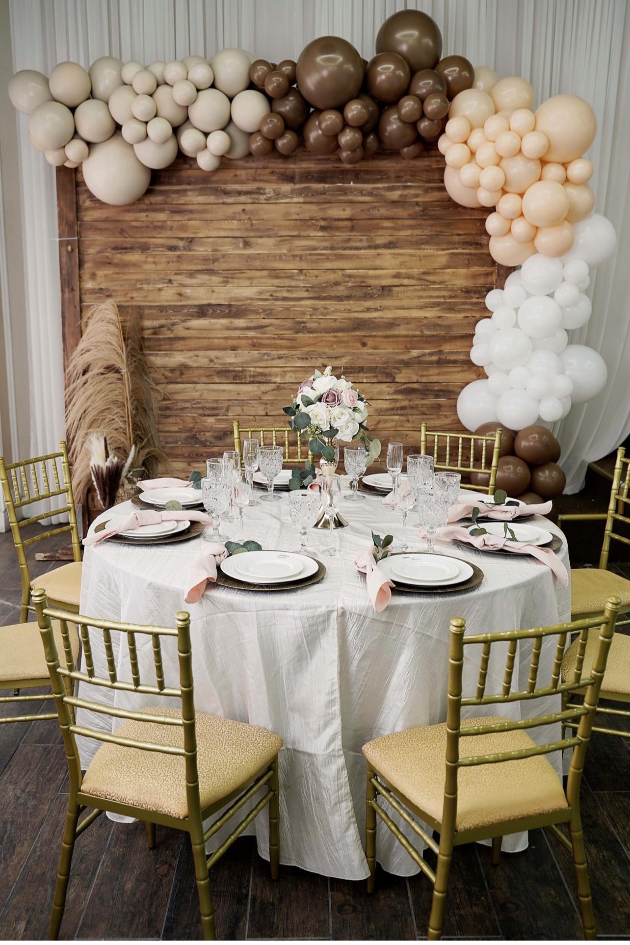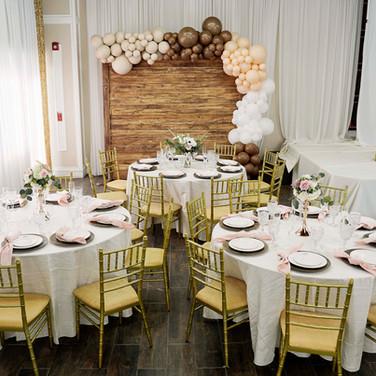 • Security • On-site Facility Manager • Standard round tables • Chiavari Gold chairs • Your choice of color polyester tablecloths • Table and chair set up • Ample on-site guest parking and central AC/Heater . Backdrop of choice and Main Table Set up • Permanent restrooms for guests (suitable for up to 250) • 1-2 bartenders • Destiny’s day of event staff to assist your event vendors • LED dancefloor • Buffet tables for dinner service . Patio Area with 2 Cocktail Tables . Cleaning after event