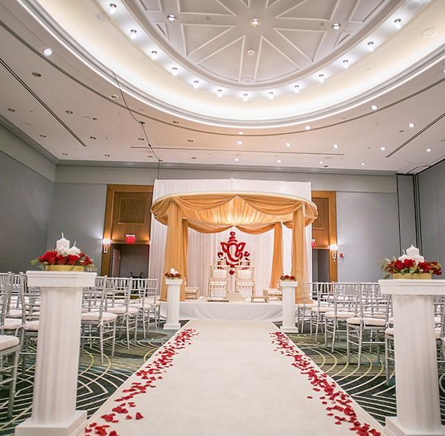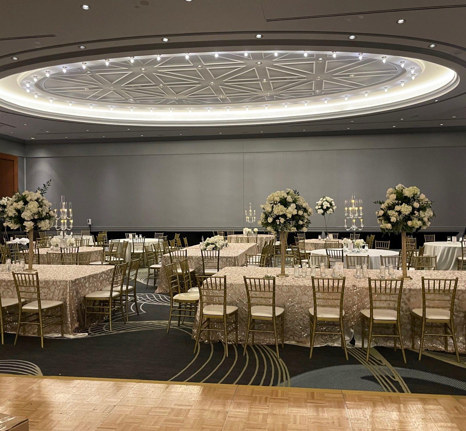 The Renaissance Ballroom at the Detroit Marriott Hotel offers a stunning backdrop for weddings, combining timeless elegance with contemporary flair.