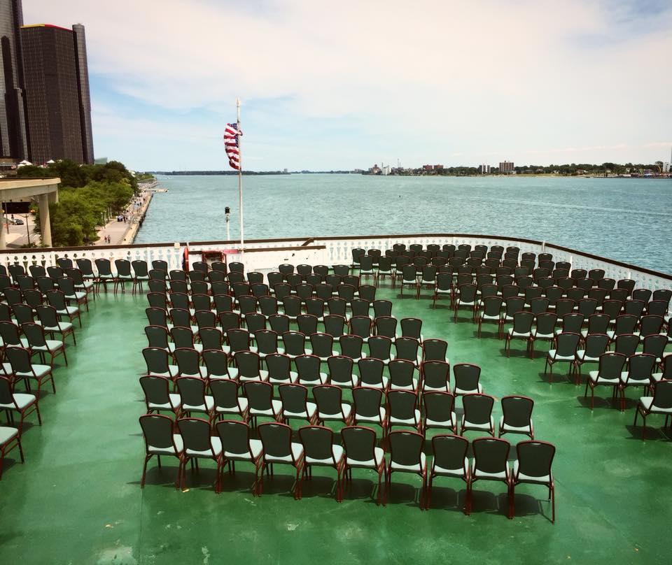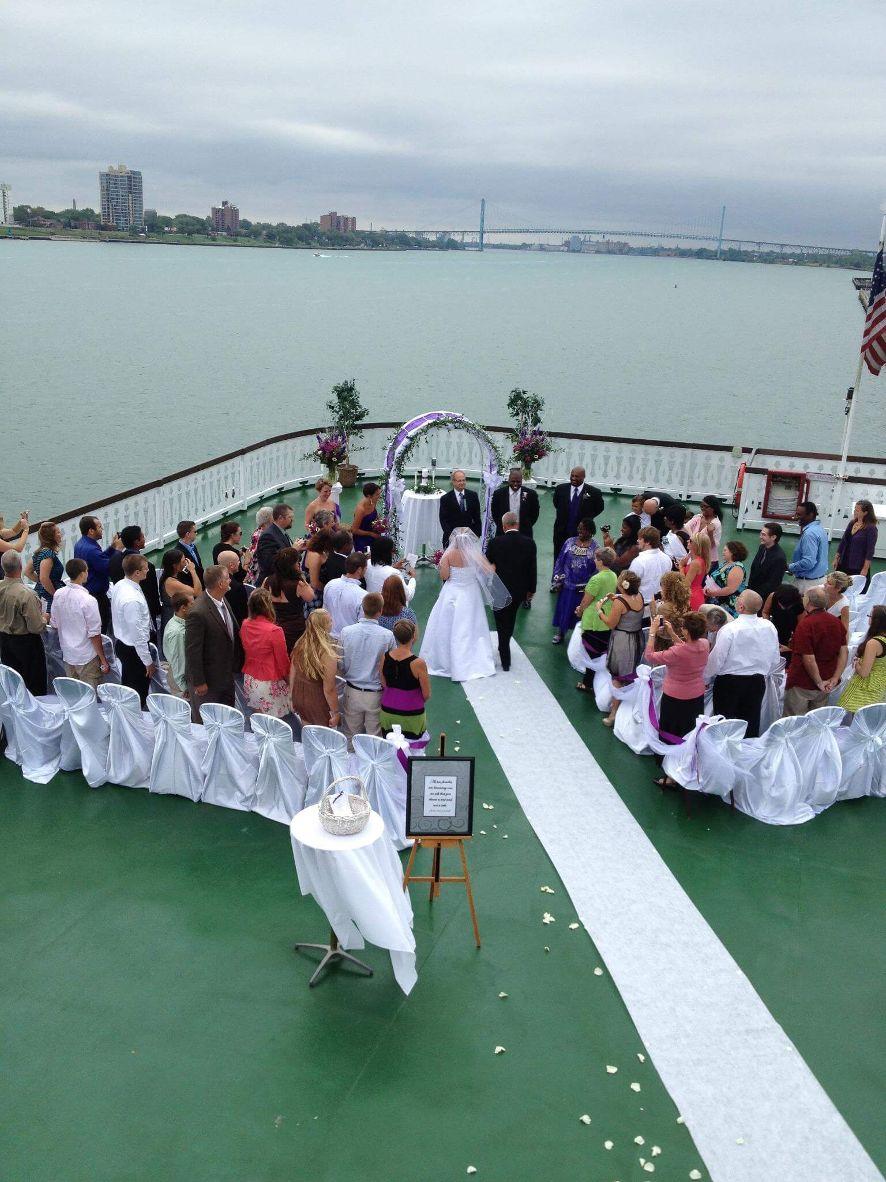 We would be honored to be a part of your special day! A wedding aboard the Detroit Princess is sure to be an event everyone will remember forever. We host many weddings each year and welcome all couples to tour our event space and get ideas on how to decorate it to be the wedding of your dreams. Weather permitting, the outdoor 4th deck is typically available and an amazing setting for your vows.