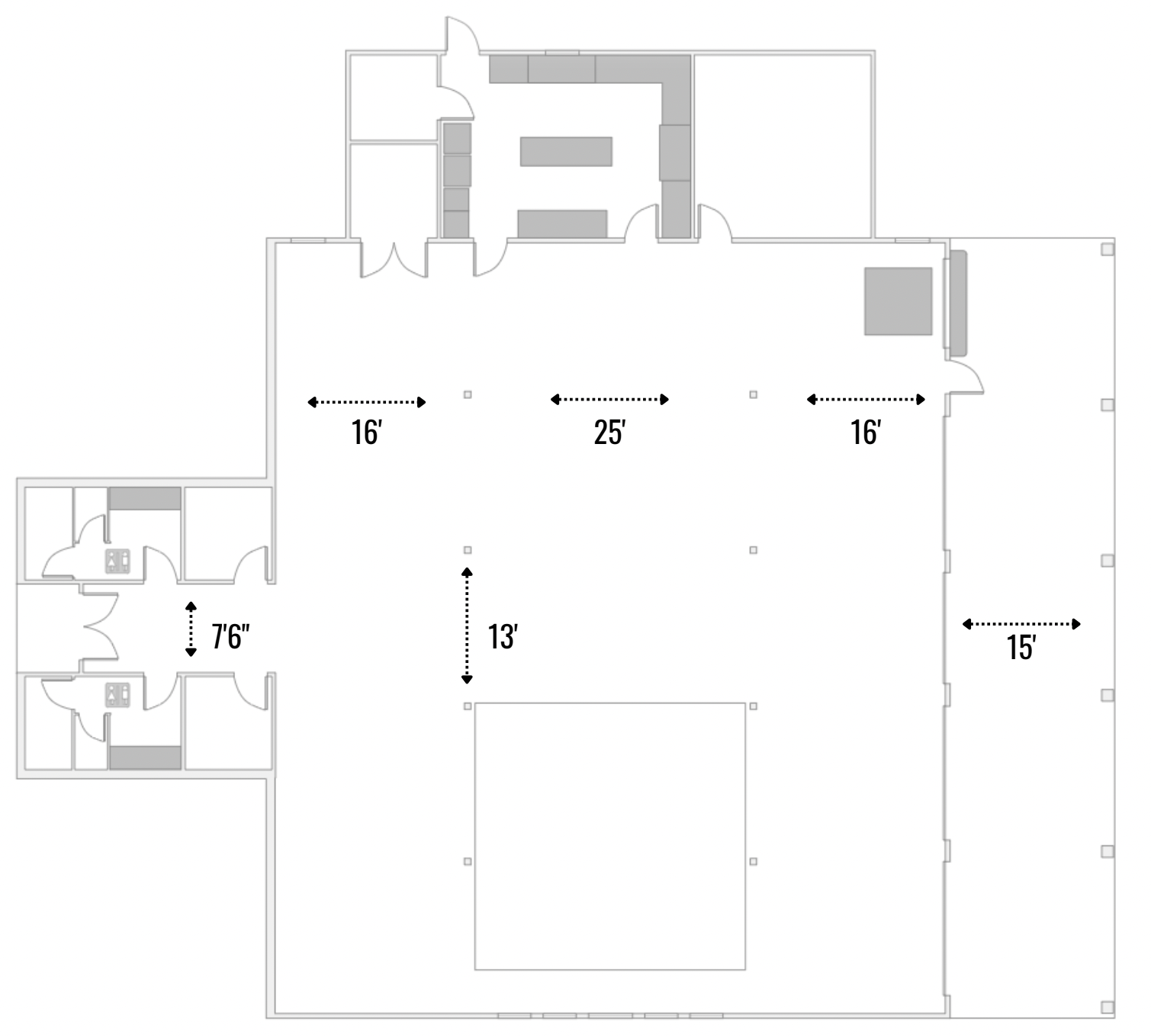 This space features a 5250 sq ft building including a covered patio for cocktail hour.