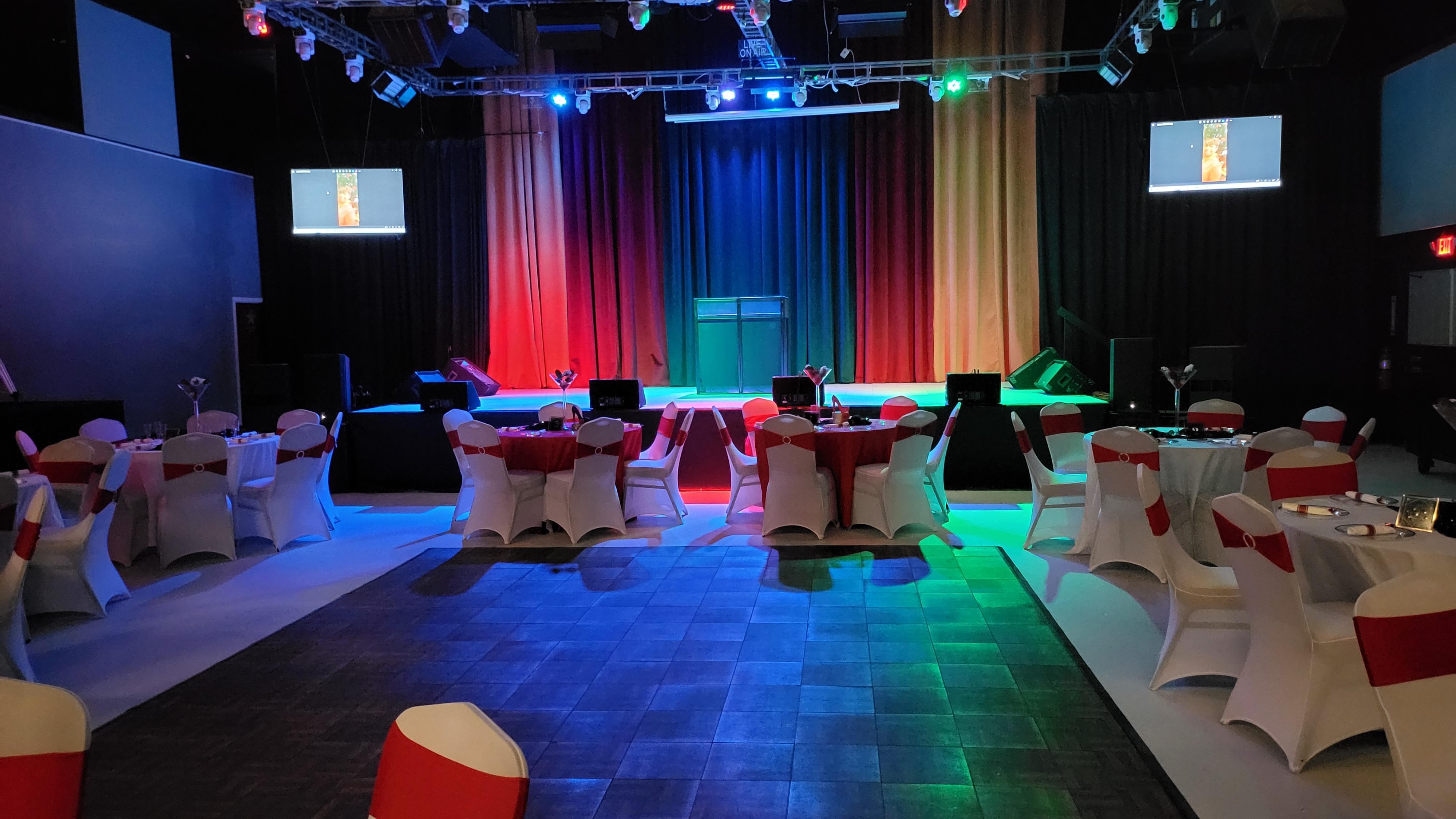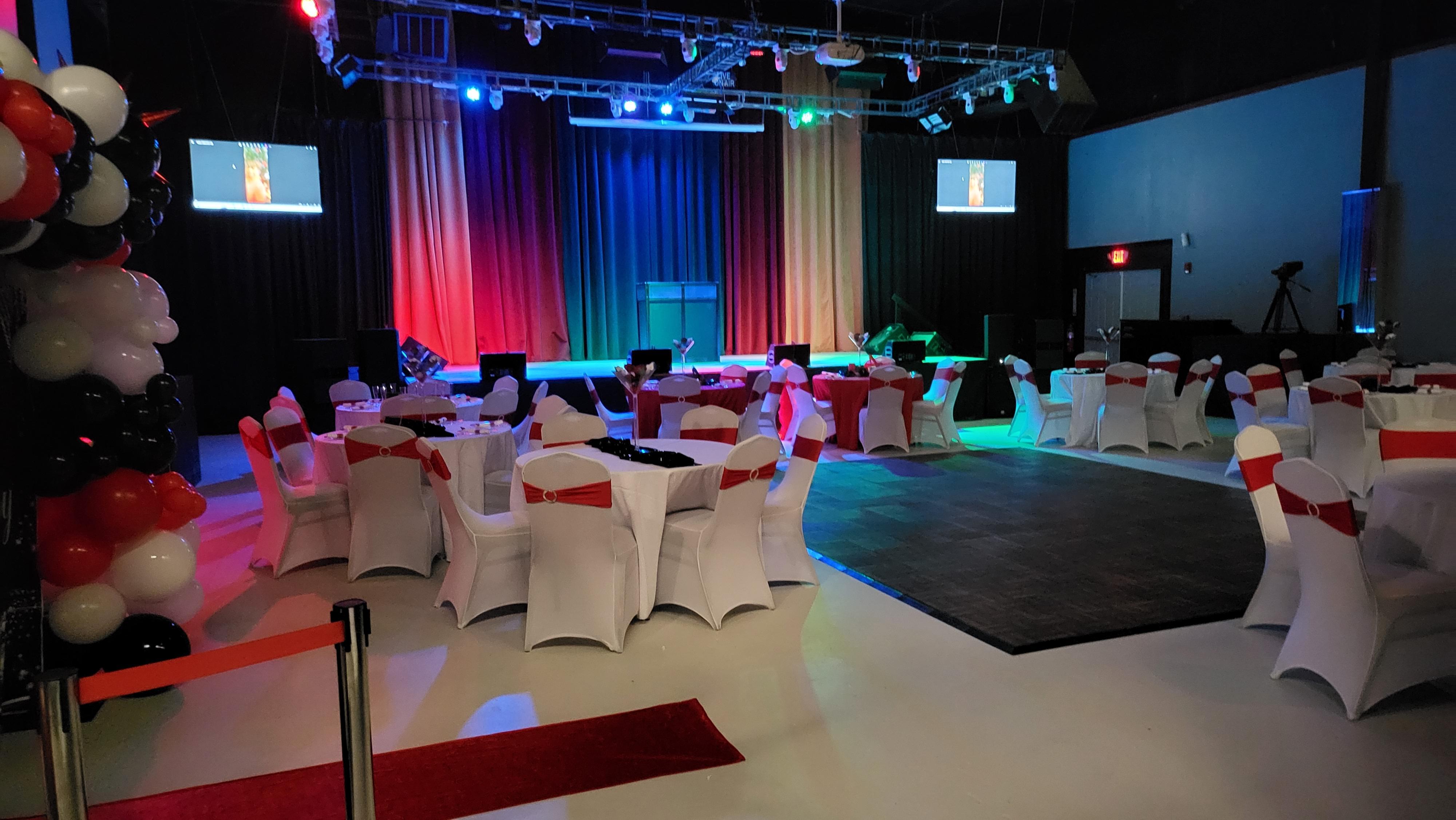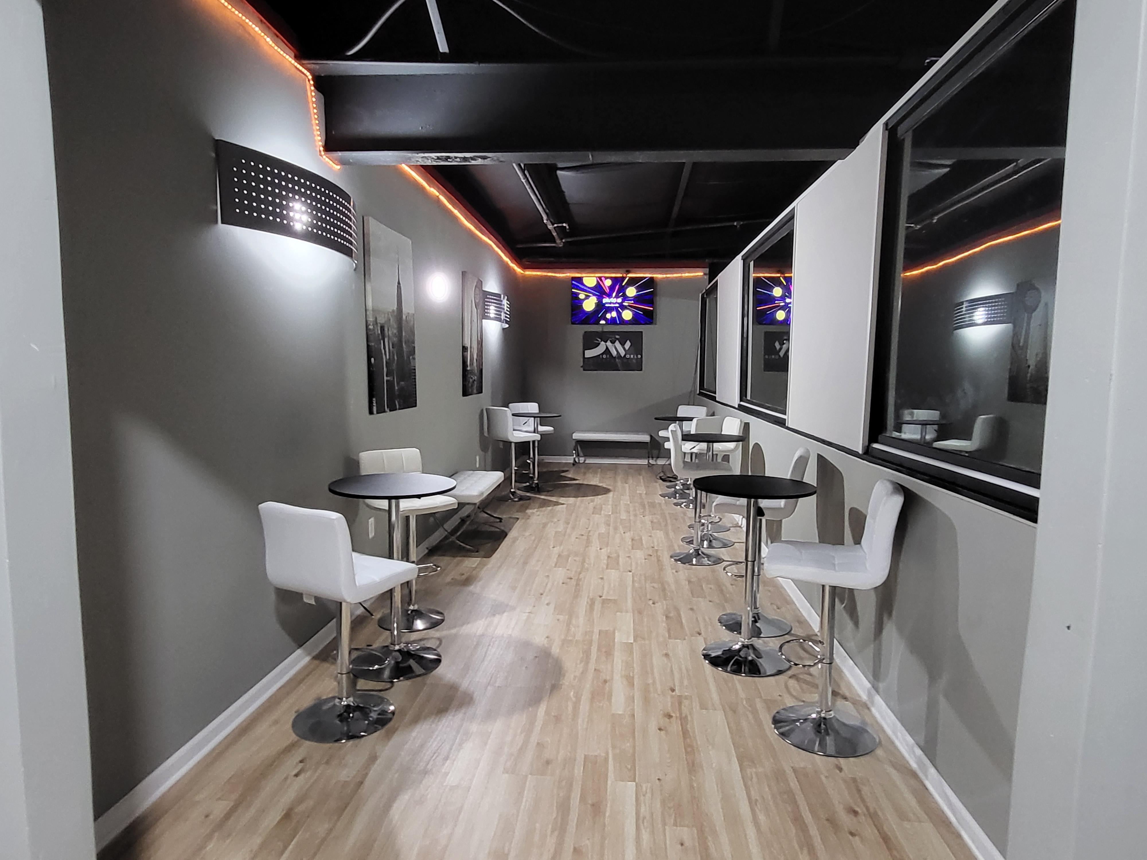 2000 square feet of event space, 300 square foot Private VIP room Usage for Ballroom, Conference/Meeting, Theater/Auditorium, Banquet/Event Hall. ADA/ACA Accessible. Max 120 people with table and chairs and 200 standing. Special Features: In house Dj's, Decorators, Caterers, Bar Tender, Videographer, Photographer and Streaming during your event