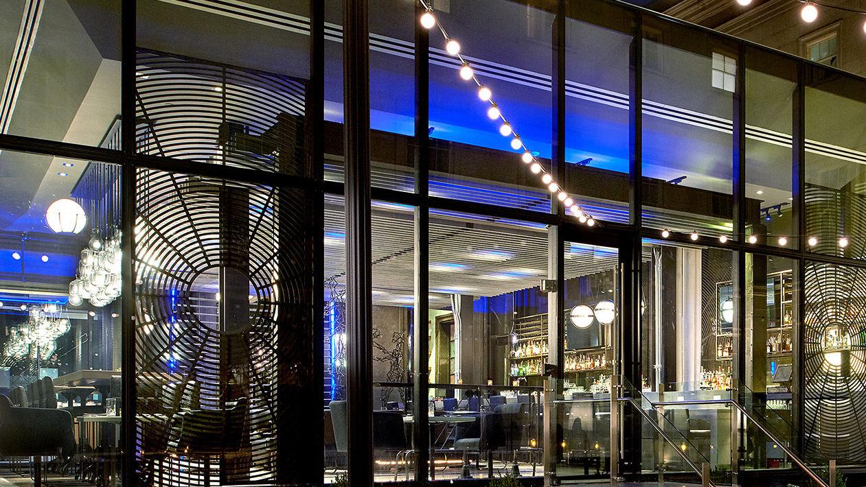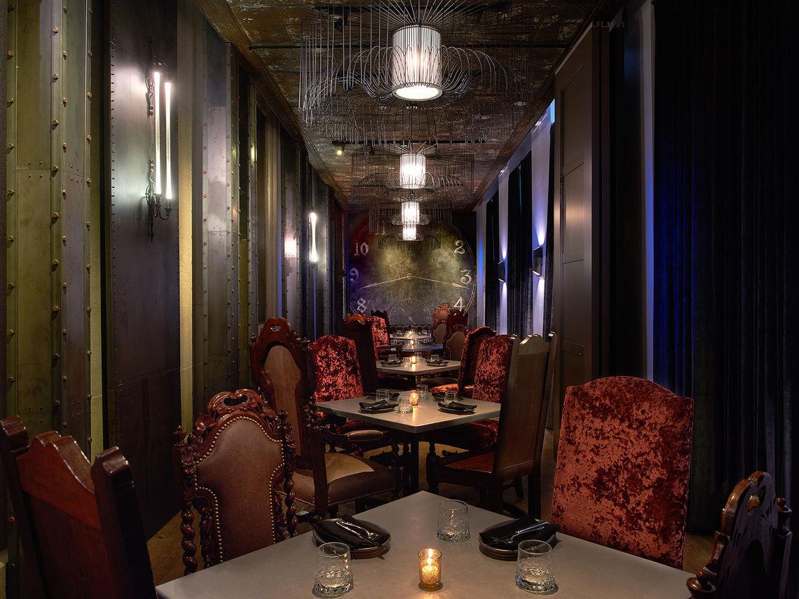 Our secluded courtyard is nestled within the exterior walls of the historic Kimpton Monaco Hotel. Outfitted with a full service bar, sculptural ironwork, fire pits, sofa lounges, and modern fixtures while oversized lamps and bistro lights provide incandescent warmth. This space can be divided into multiple sections to create a fully immersive experience.