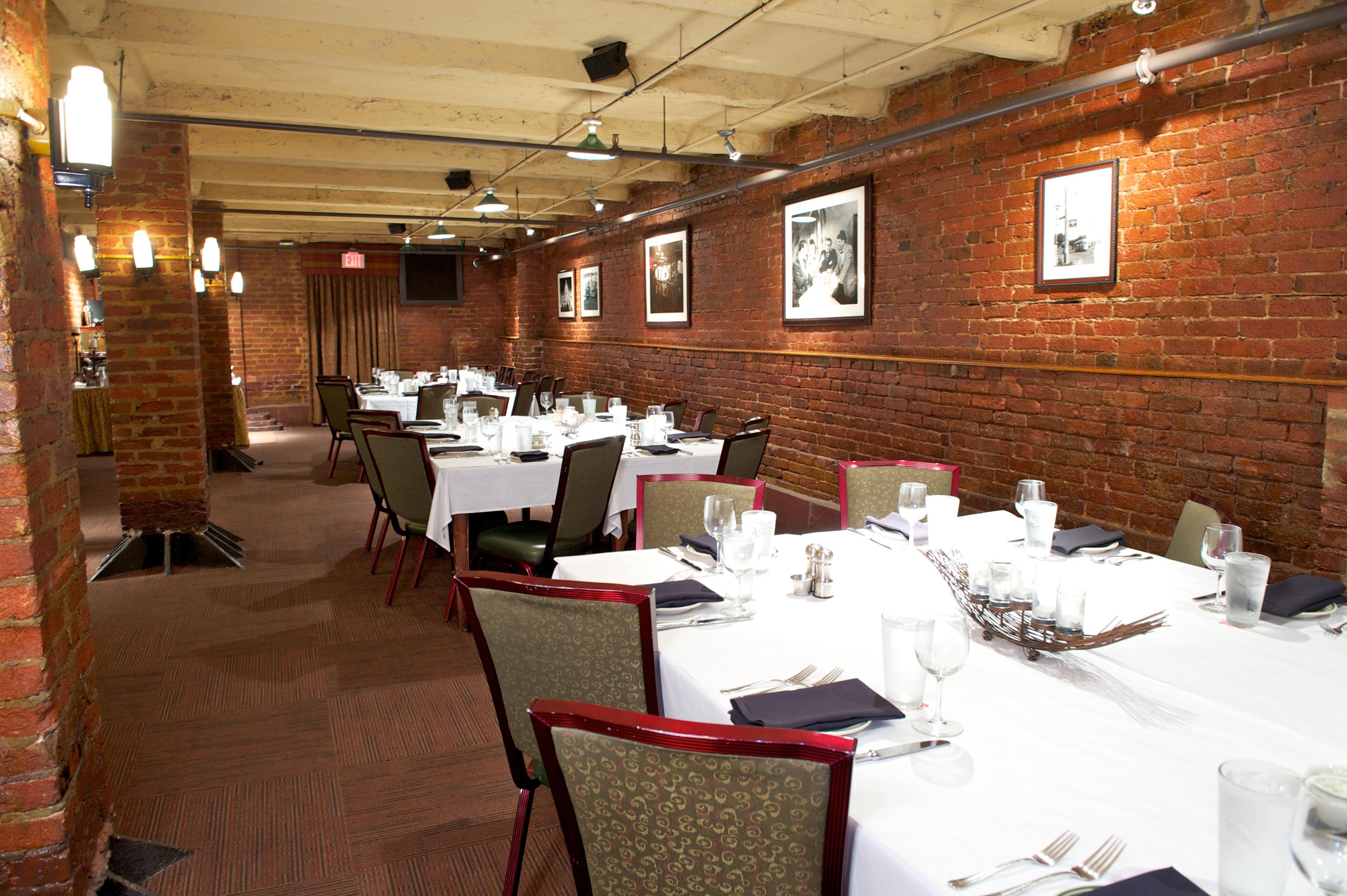 Our private banquet room is located downstairs where the original vault of the Second National Bank once stood. This inviting space is comfortable for both small and large gatherings. Accommodating 28 people board-room style, 60 people banquet style and up to 70 for a reception. This room is ideal for any occasion.