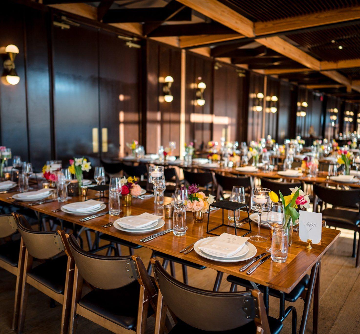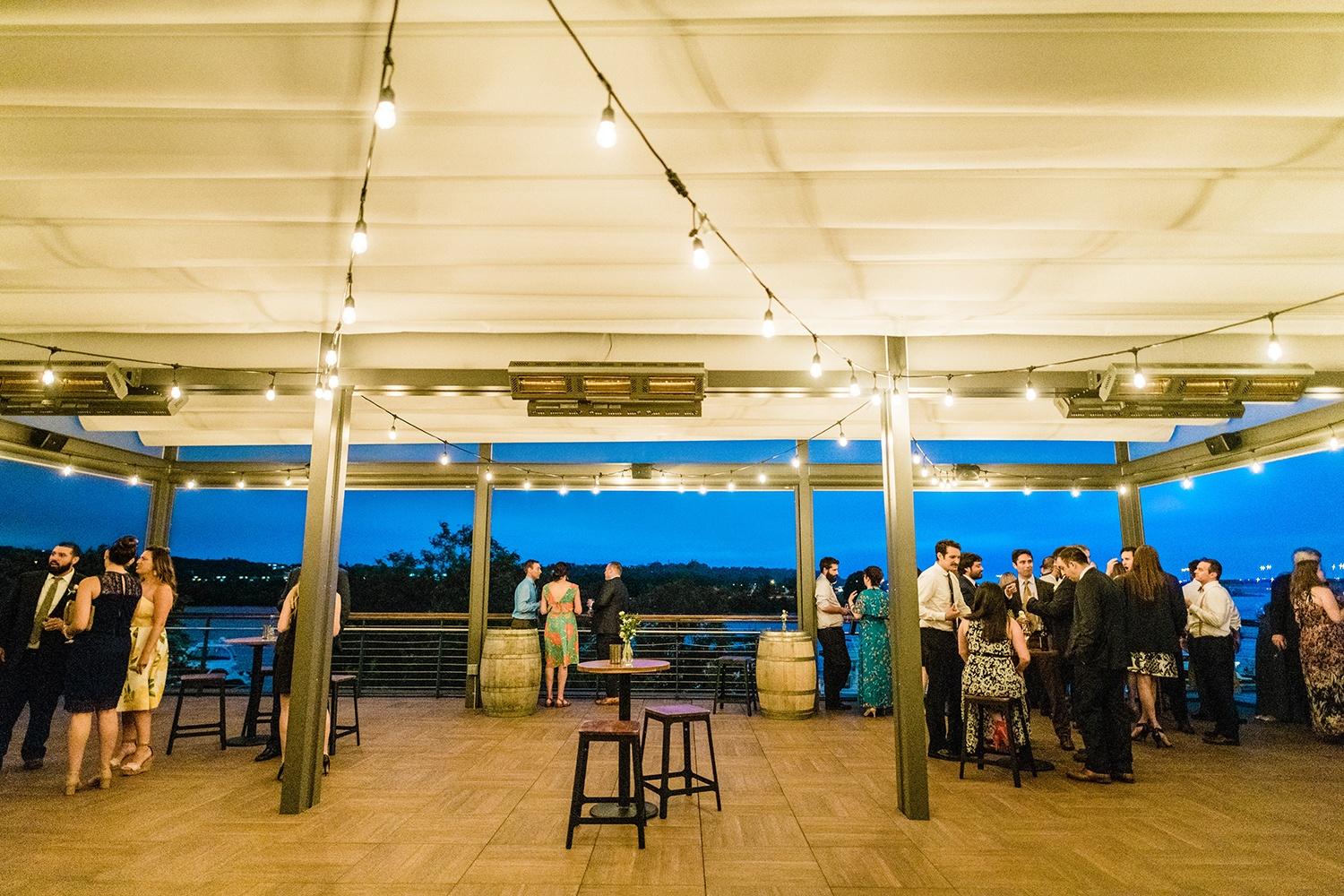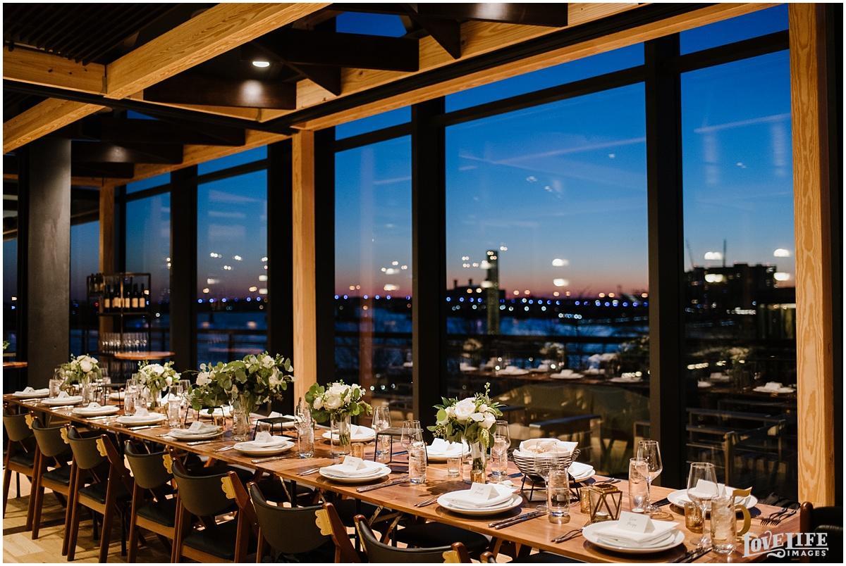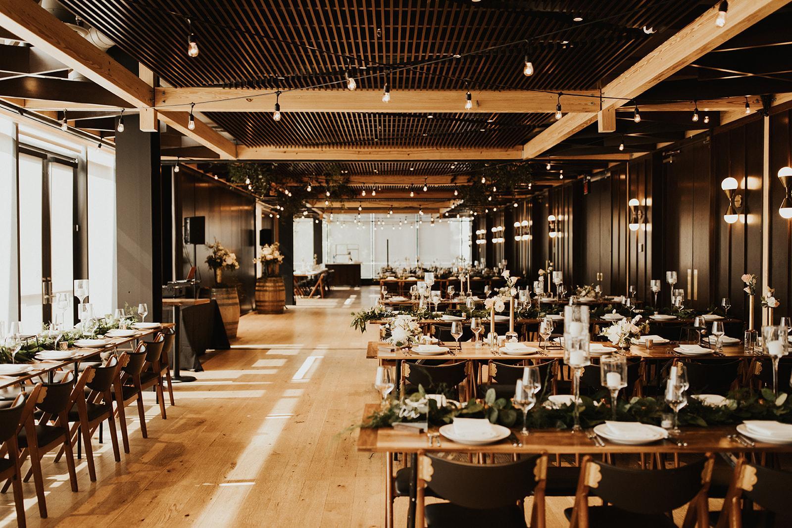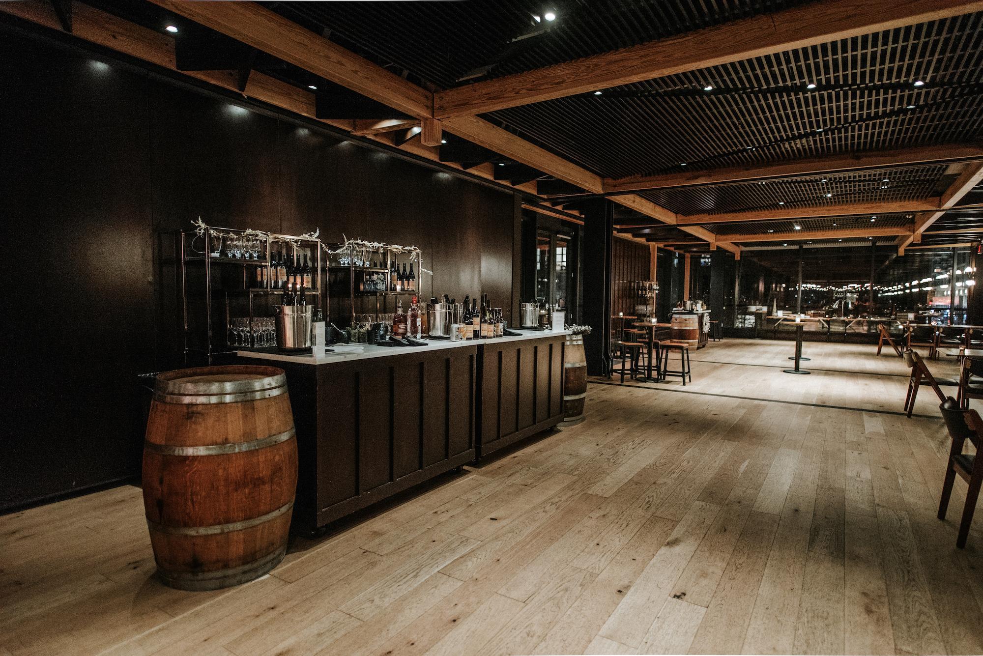 District Winery hosts full-service weddings for up to 200 guests. The first working winery in Washington, DC, District Winery is located in Navy Yard along the Anacostia River. Our modern, sophisticated, waterfront wedding venue with floor to ceiling windows, an outdoor terrace, and sweeping river views is the ideal venue for your wedding. District Winery include our highly regarded wedding cuisine and wines made onsite. Executive Chef Christian Fischhuber brings years of international culinary expertise to our venue, as he oversees every detail of your menu. Couples work with a District Winery event manager who will assist with all of the details, from helping curate the perfect menu to coordinating with vendors to ensure seamless execution. All District Winery weddings are turnkey and include the use of our custom walnut tables, chairs, high top tables, bar stools, marble topped bars, china, glassware, flatware, linen napkins, printed menus, table top items to enhance your decor.