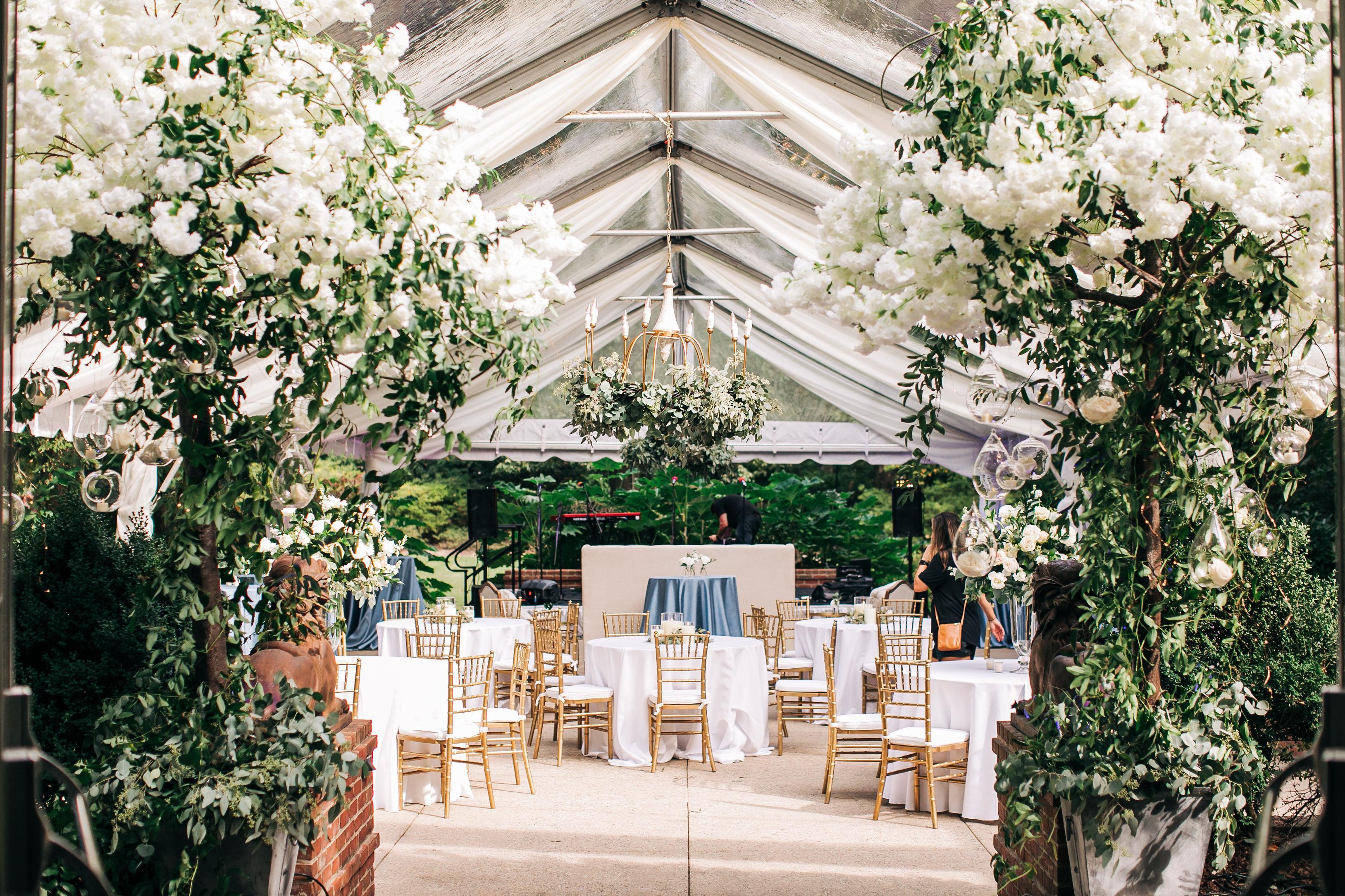 Whether you're booking a full wedding or reception-only event, cocktail hour in the Cutting Gardens offers a romantic, garden-filled welcome. Guests can sip champagne and mingle among blooming seasonal beds, ivy-covered arches, and our charming lily pad fountain, all with views of the conservatory (green house) in the background. It’s a picture-perfect way to begin your special night.