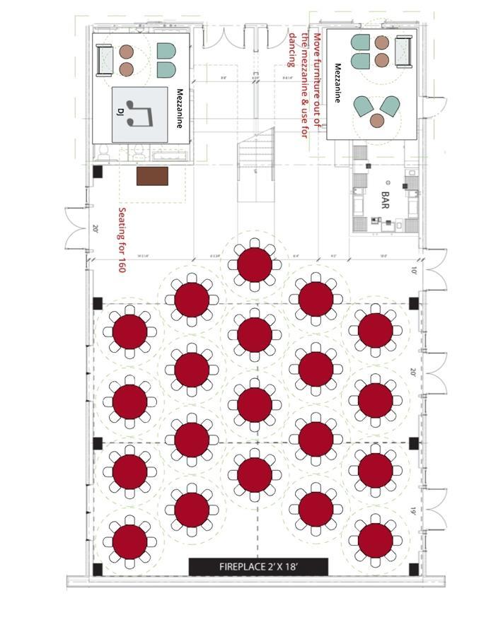 -stone fireplace -grand staircase -gold chandeliers -marble bar -air conditioning and heat -2 getting ready rooms -dance floor ready -60 round tables and dark wood chairs for 125 guests -dark wood benches for ceremonies for 125