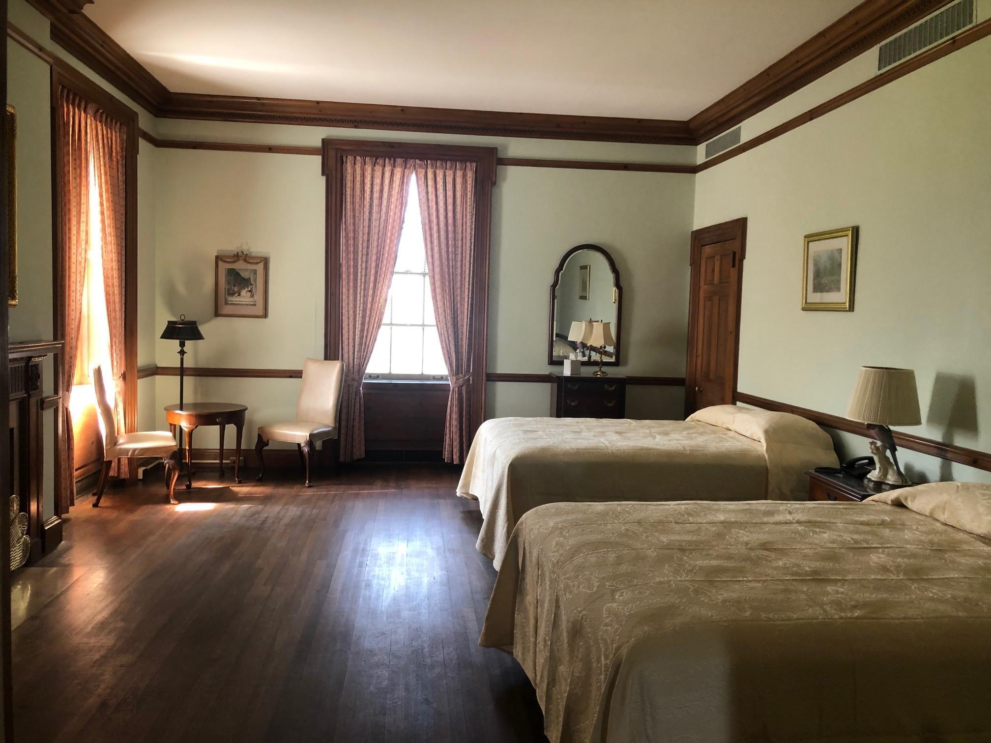 The original two story Carriage House, offers extra bedrooms for overnight guests, with a large meeting room on the second floor. Not ADA accessible