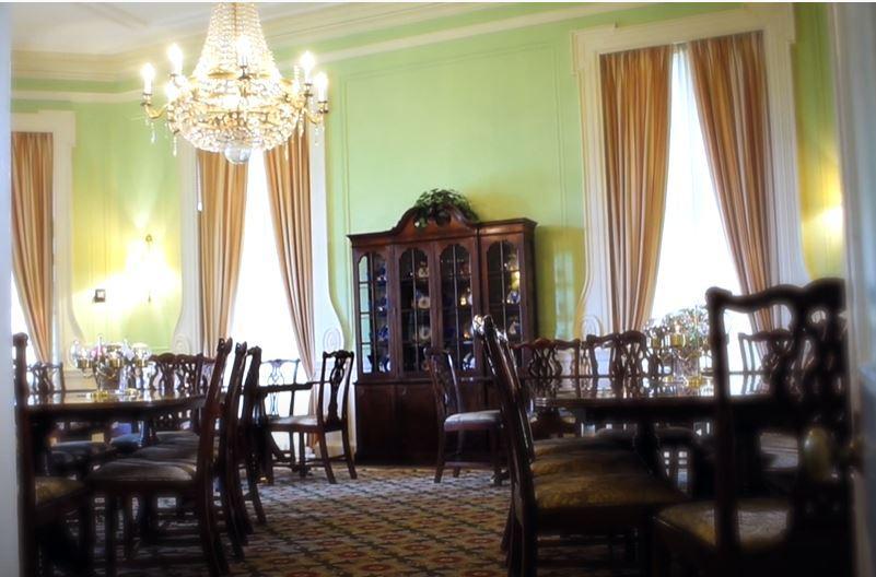With a classic look that includes the original 1939 chandelier and ceiling medallions, the dining room offers an opulent dining experience.